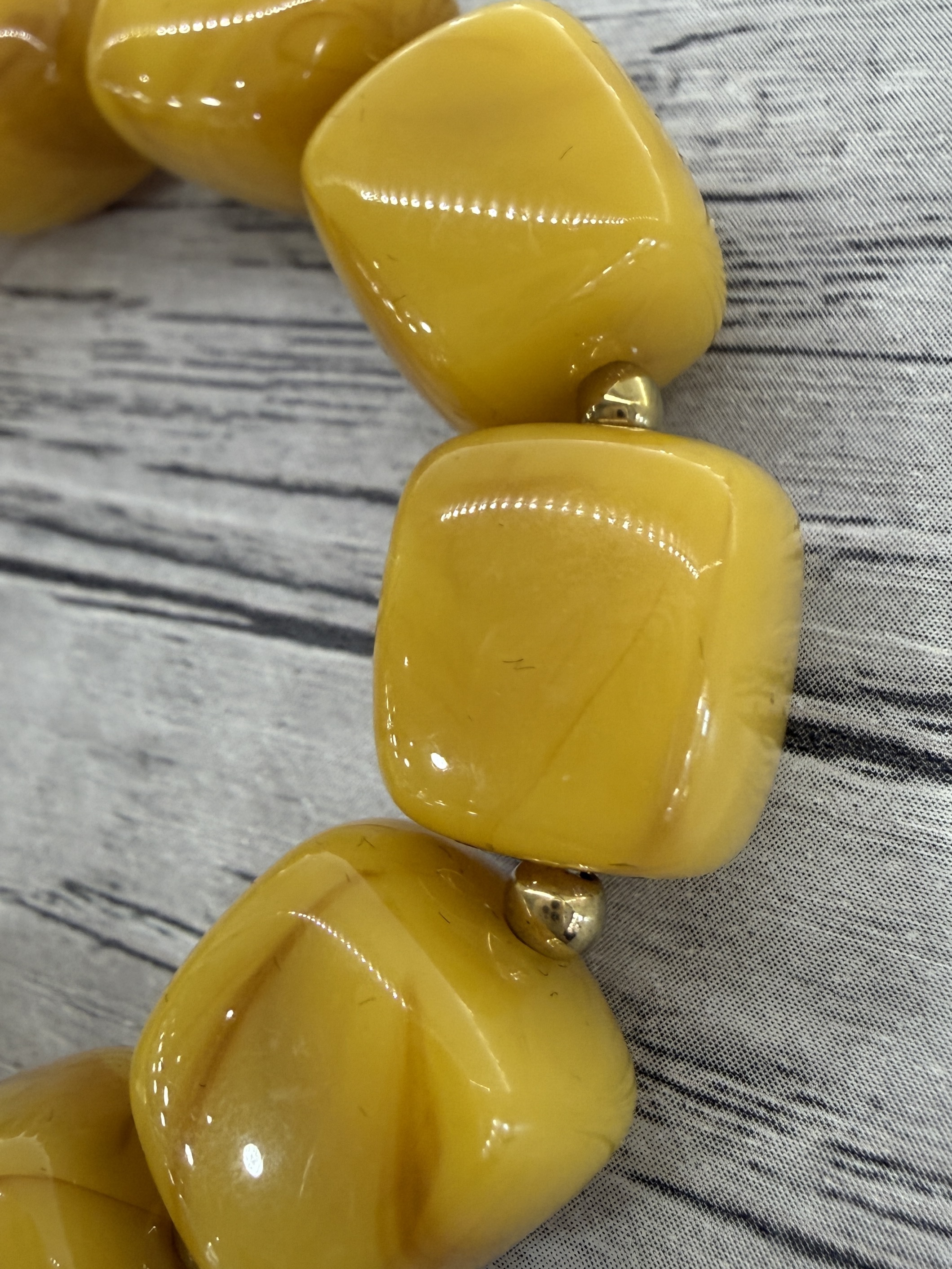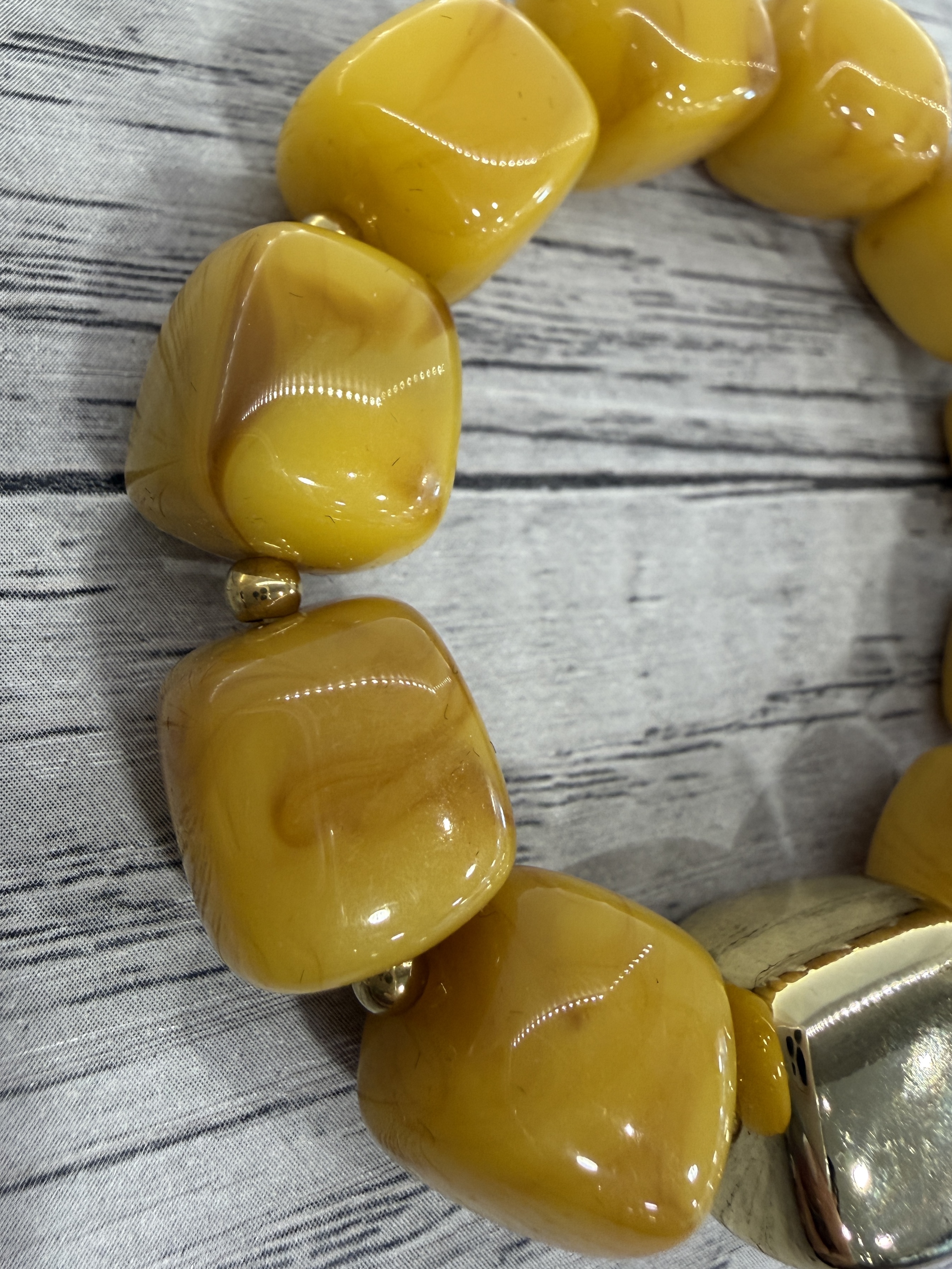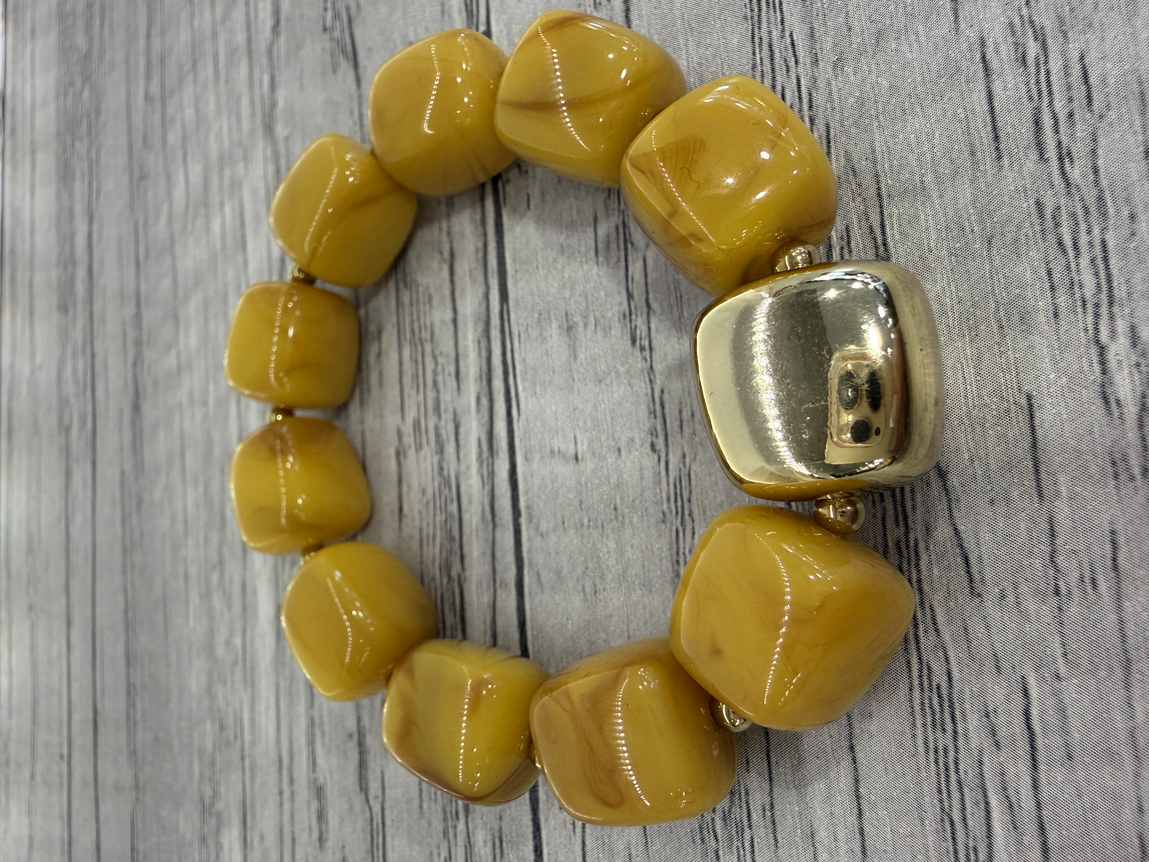 Bracelet avec perles en résine jaune moutarde marbré