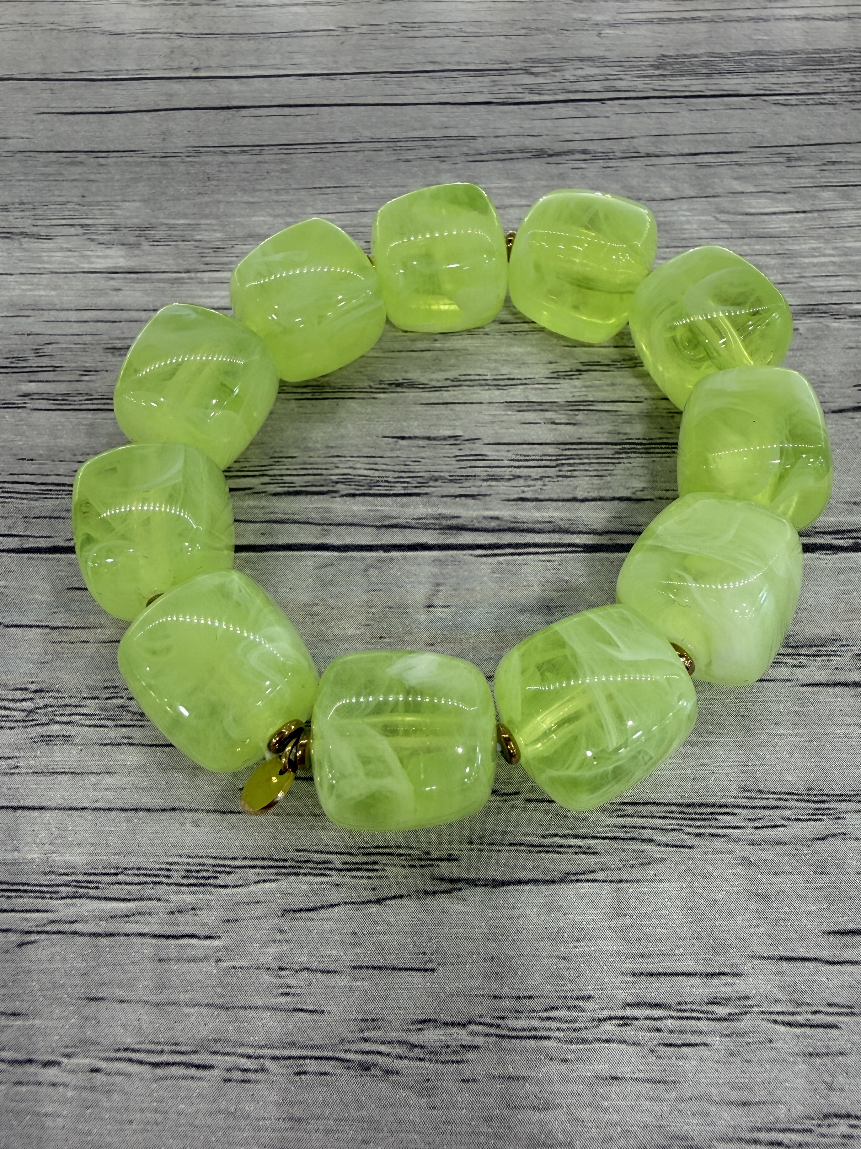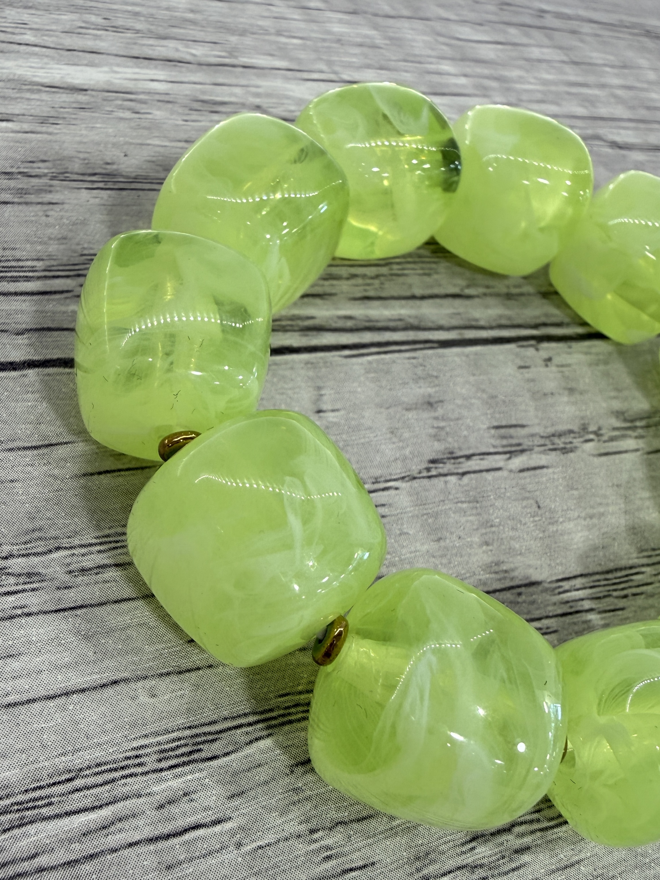 Bracelet avec perles en résine vert fluo