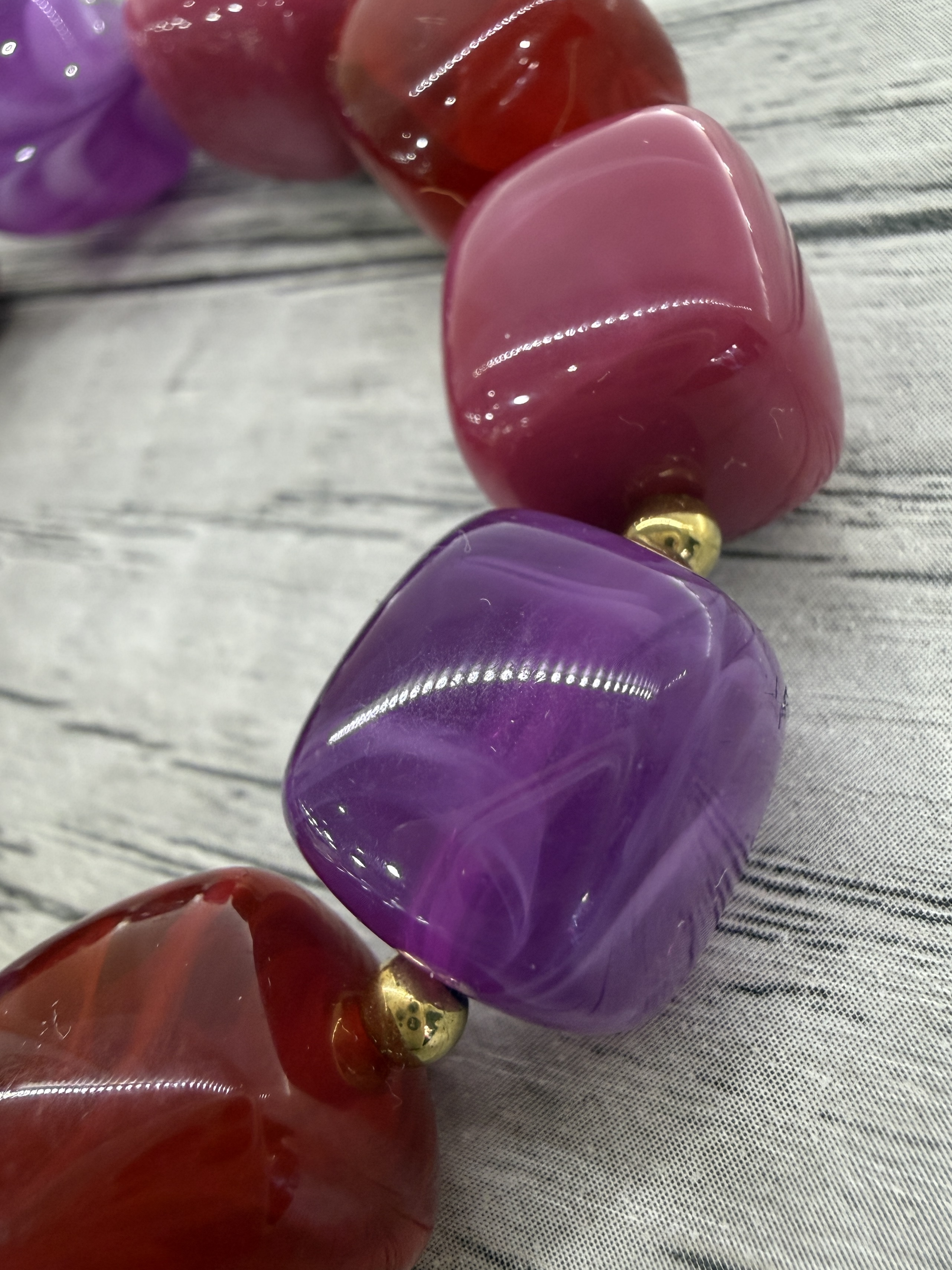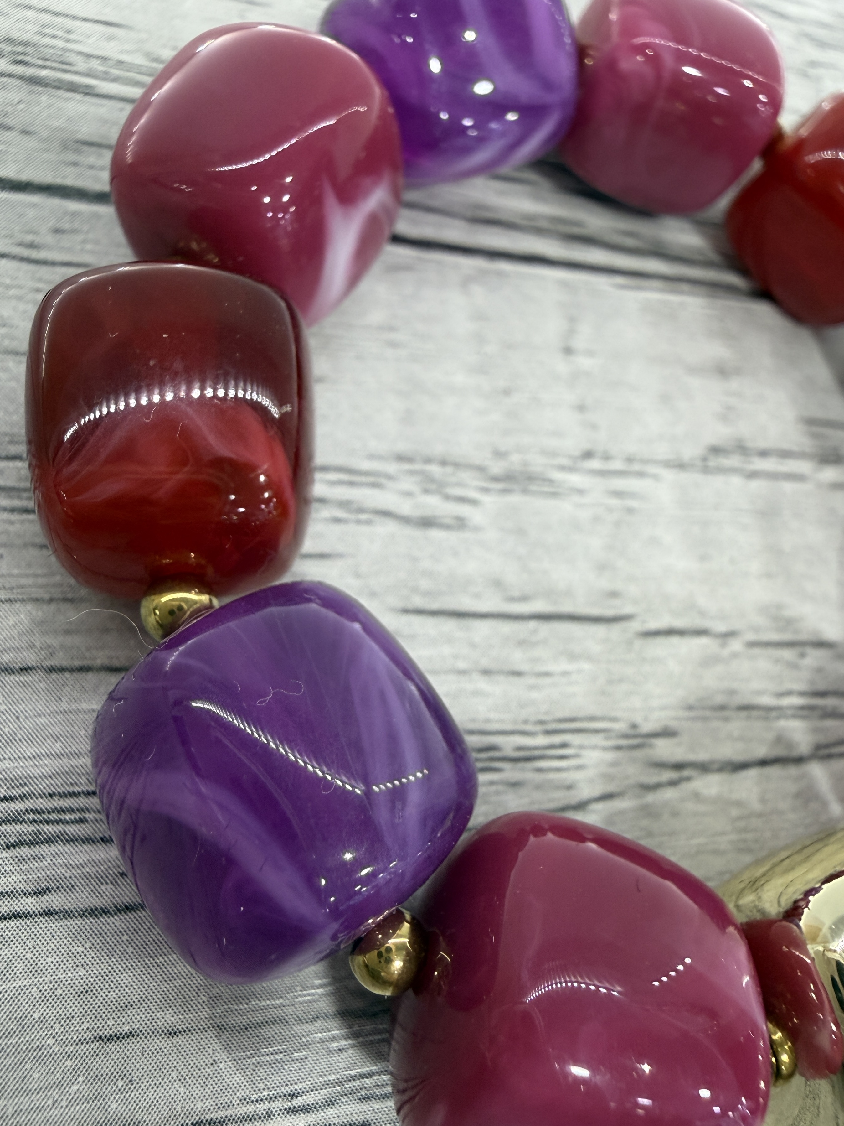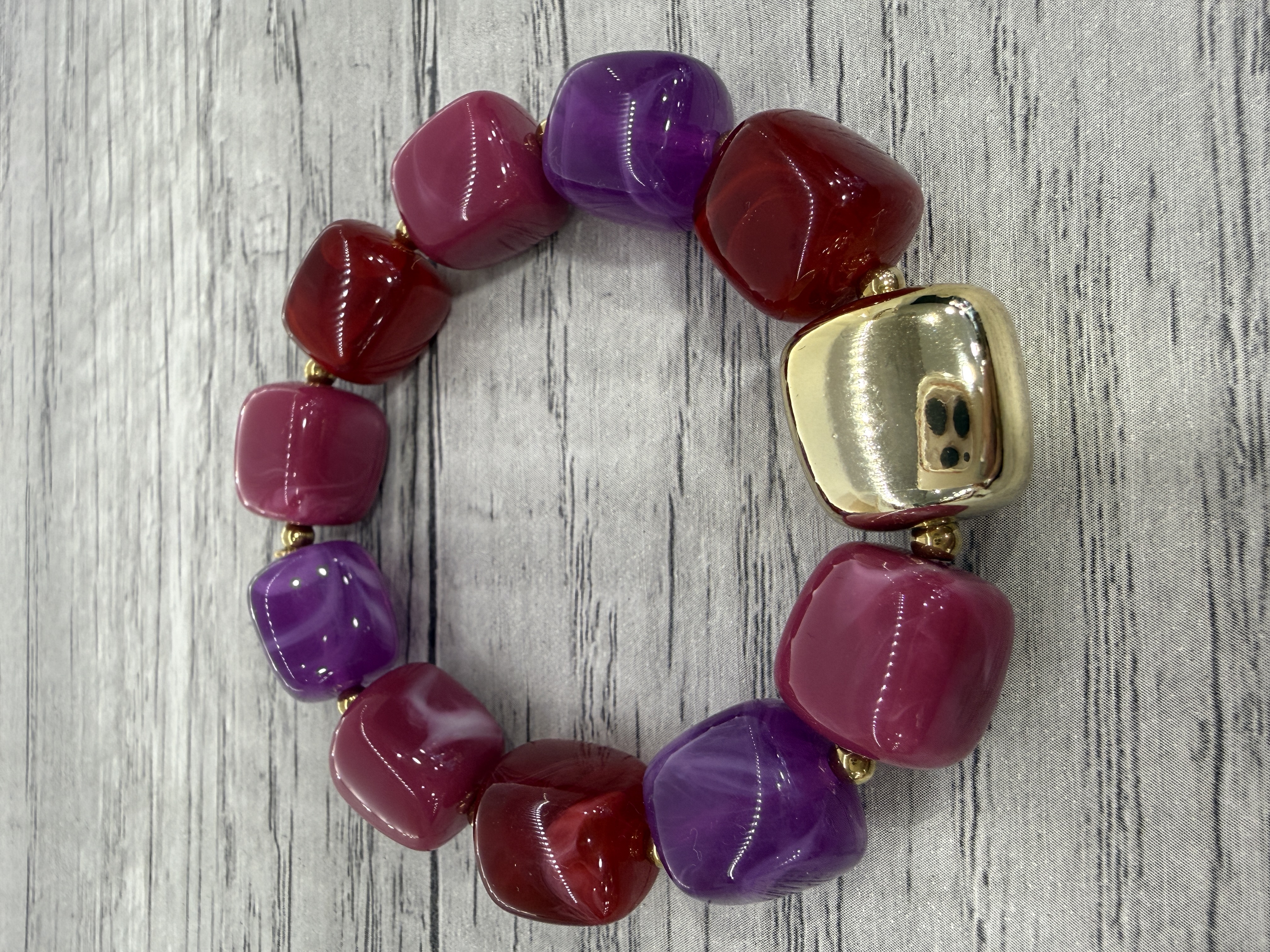 bracelet avec perles en résine violet bordeaux doré