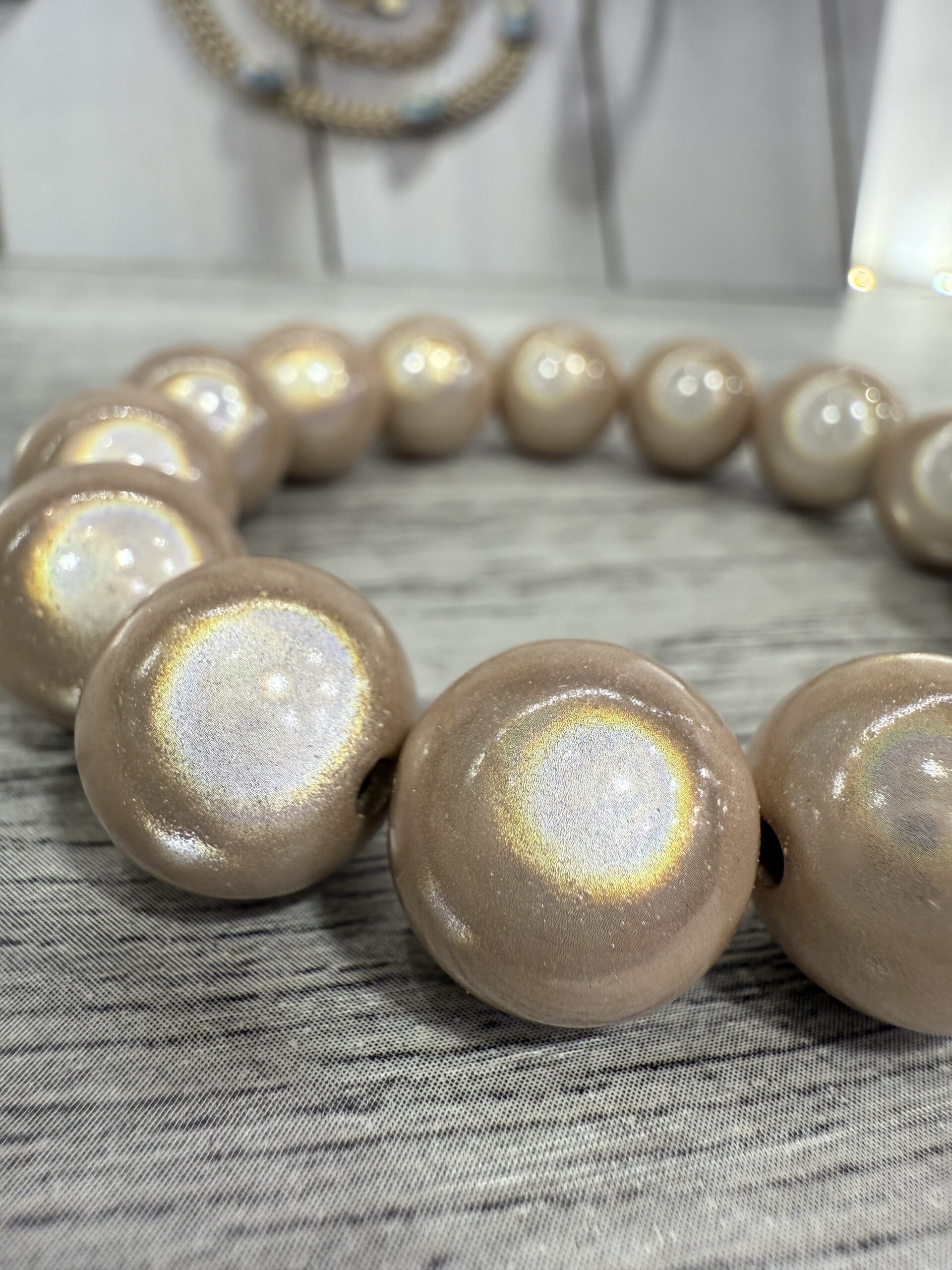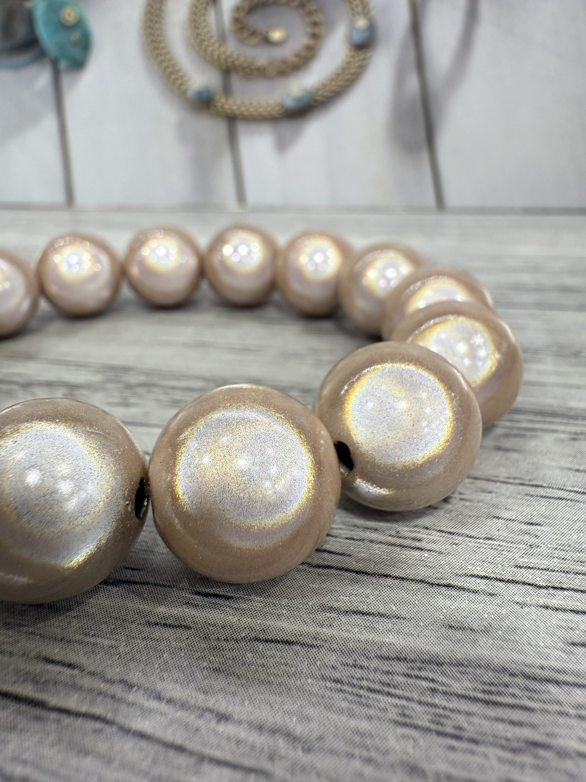 Adoptez ce joli bracelet perles avec un effet 3D en résine beige ! Selon l’exposition à la lumière les couleurs des perles changent, c’est ce qui le rend UNIQUE !