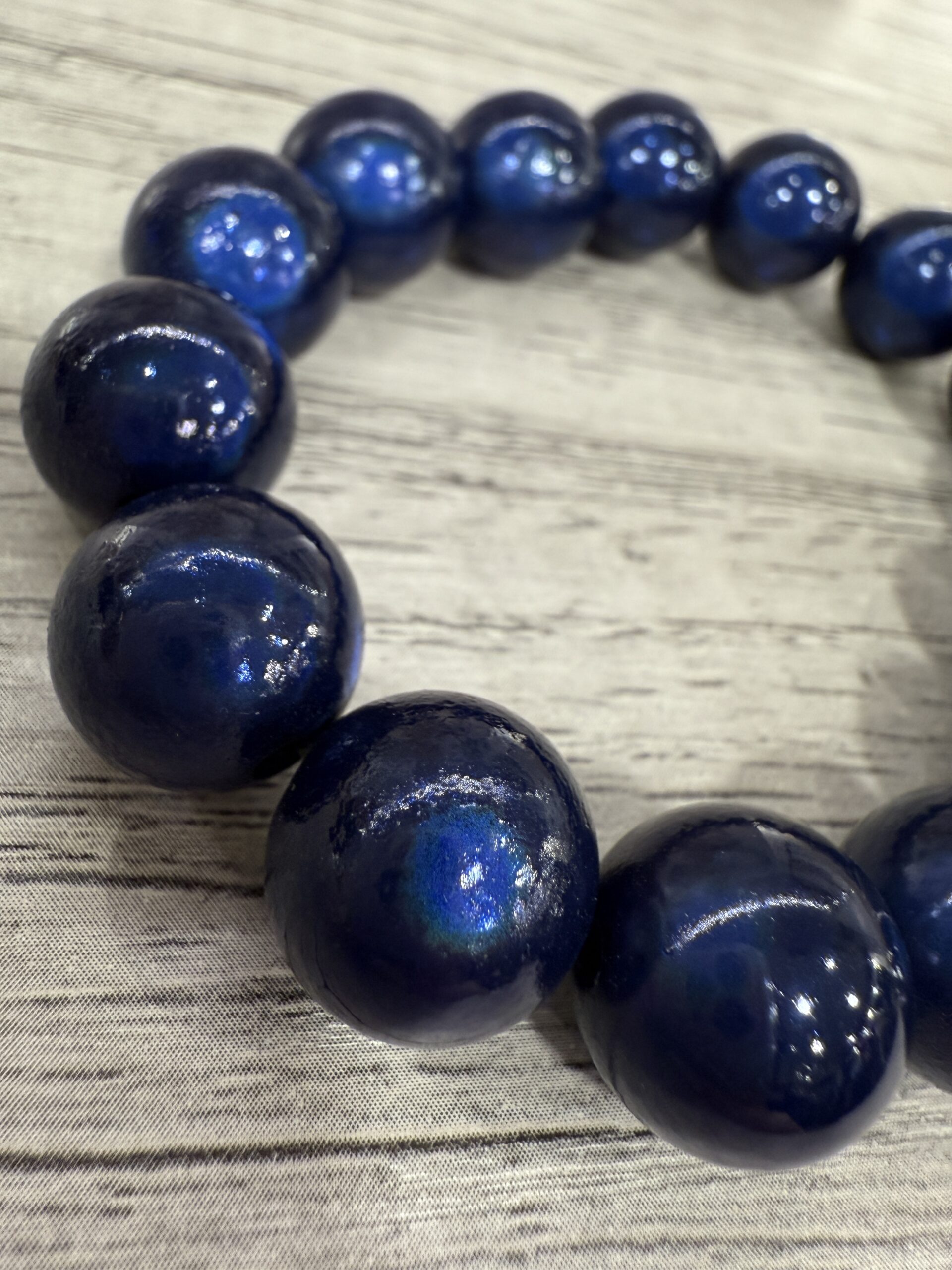 Adoptez ce joli bracelet perles avec un effet 3D en résine bleu ! Selon l’exposition à la lumière les couleurs des perles changent, c’est ce qui le rend UNIQUE !