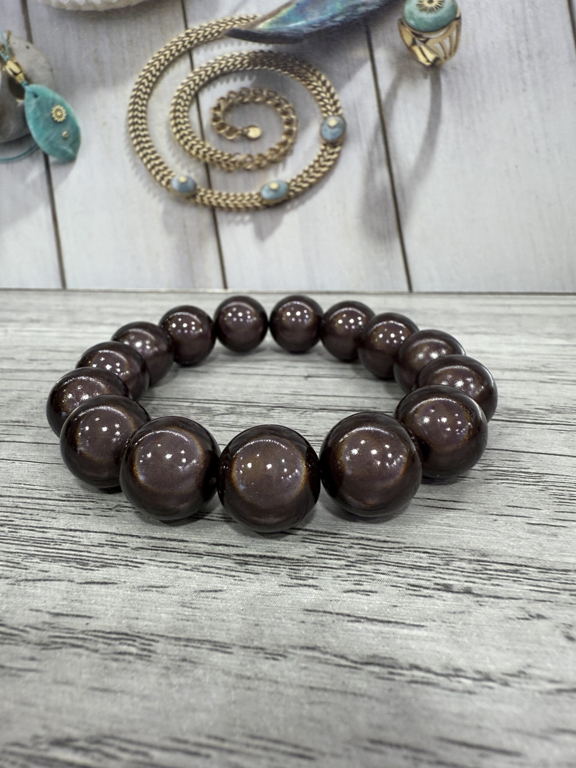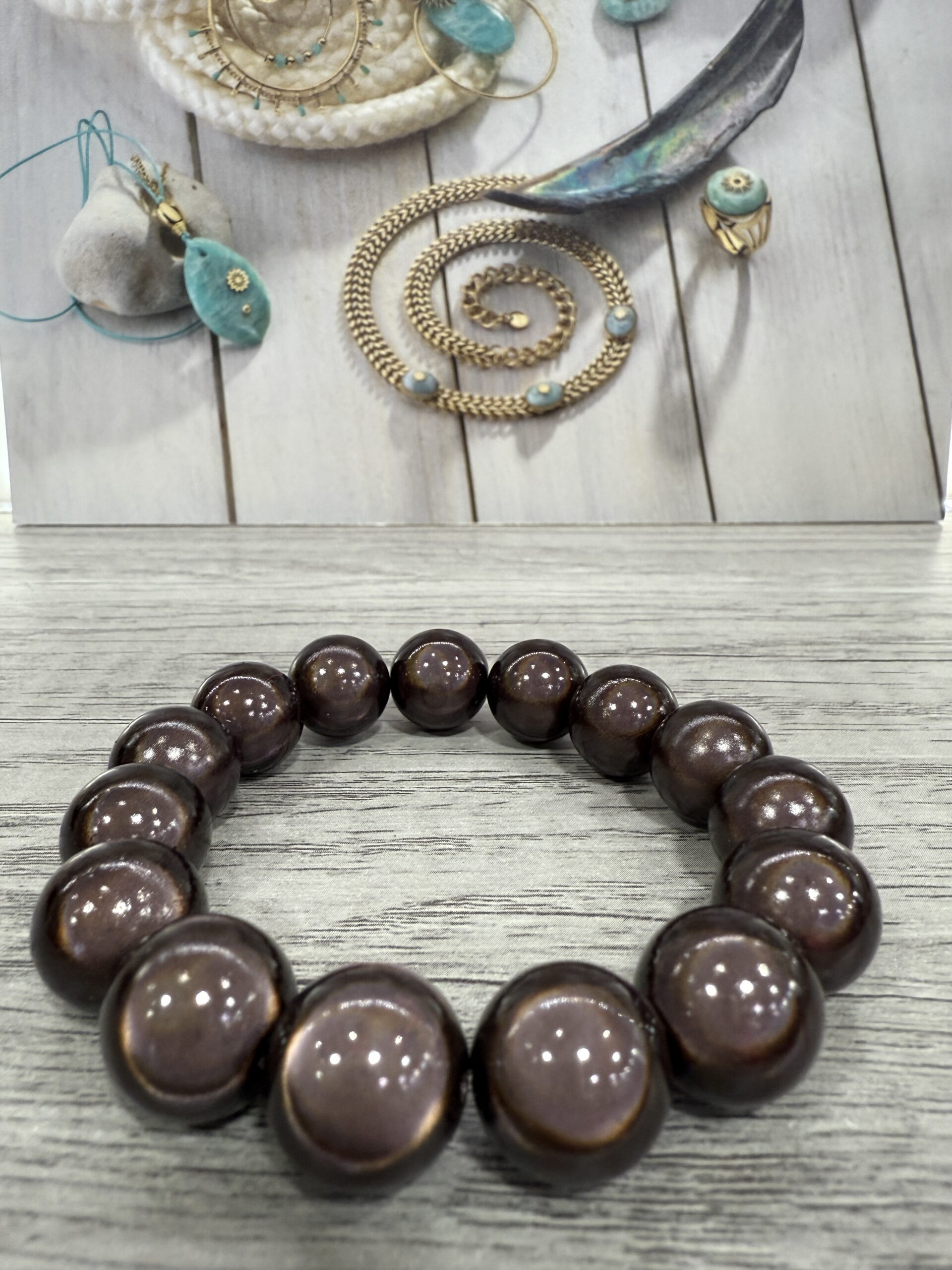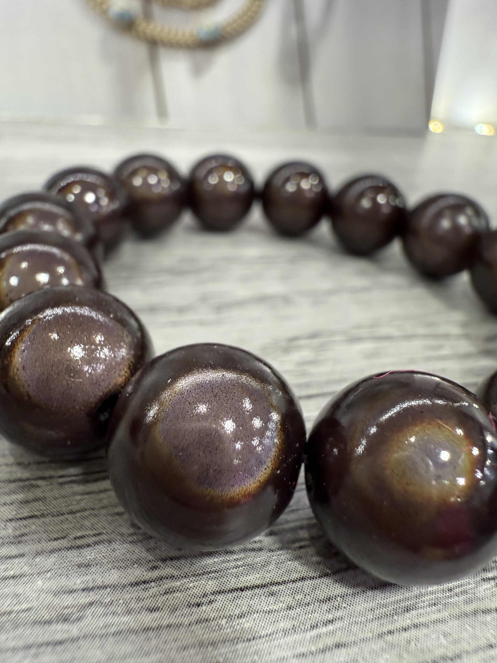 Adoptez ce joli bracelet perles avec un effet 3D en résine chocolat ! Selon l’exposition à la lumière les couleurs des perles changent, c’est ce qui le rend UNIQUE !