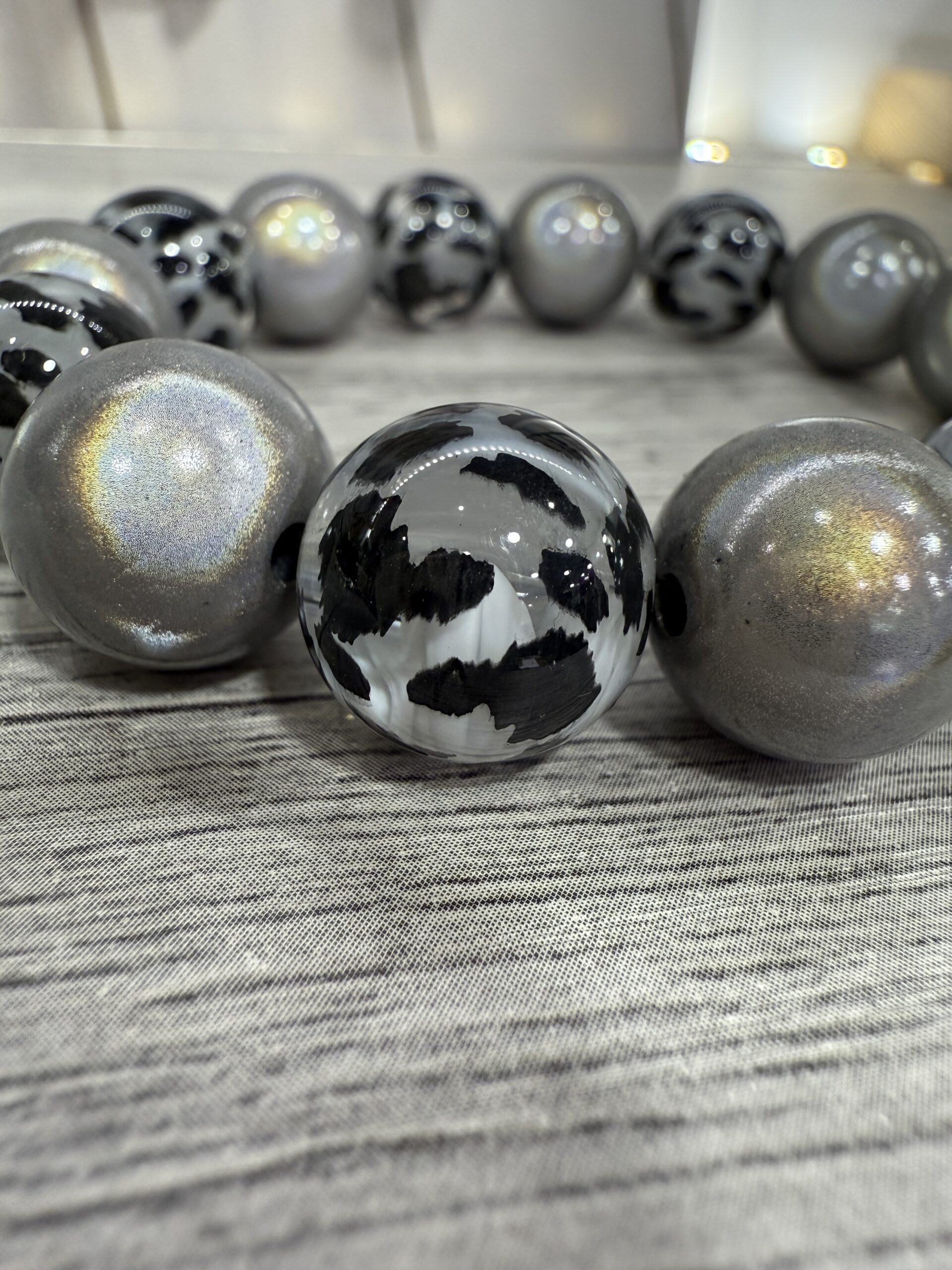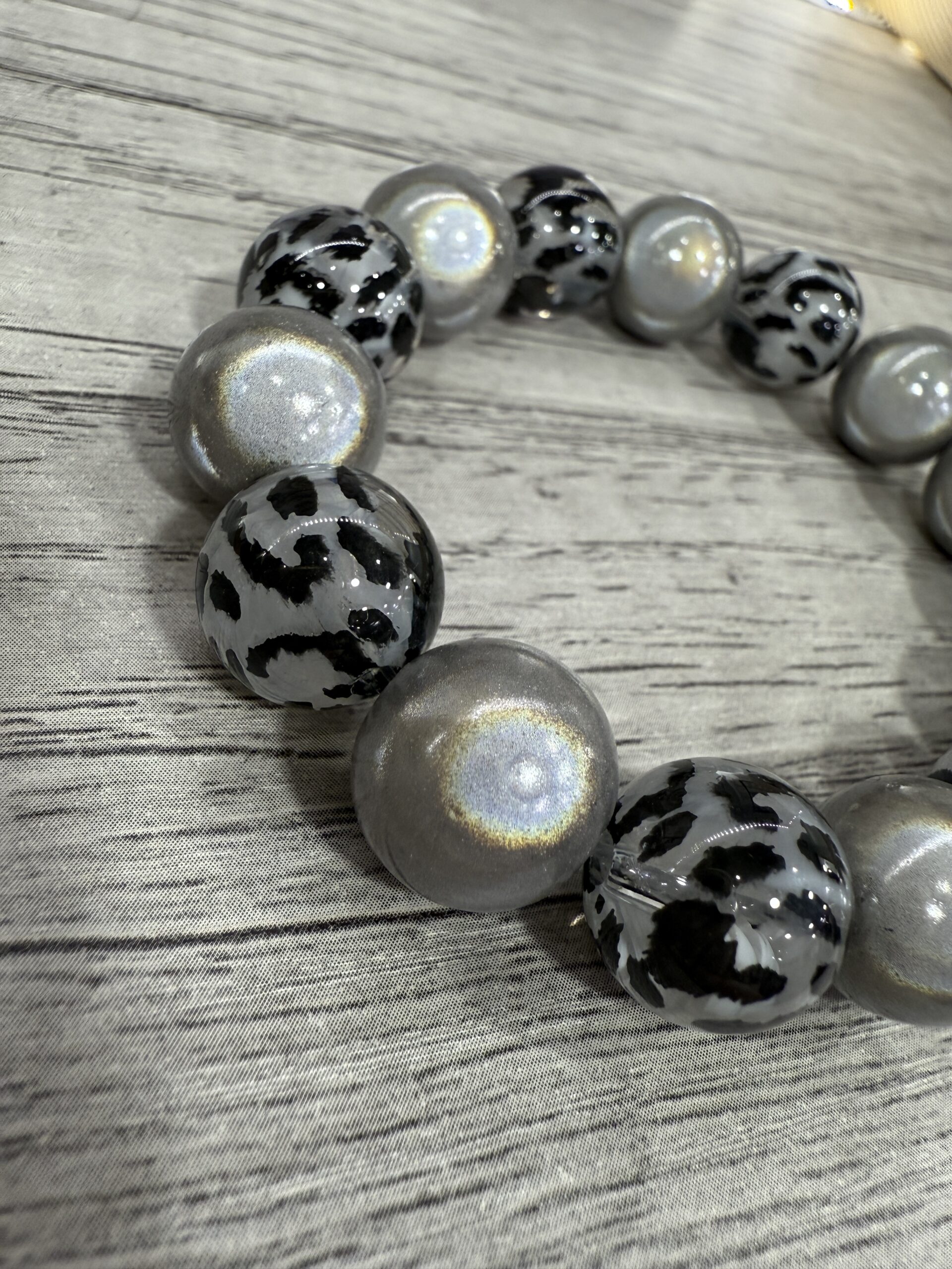 Adoptez ce joli bracelet perles avec un effet 3D en résine gris zèbre ! Selon l’exposition à la lumière les couleurs des perles changent, c’est ce qui le rend UNIQUE !