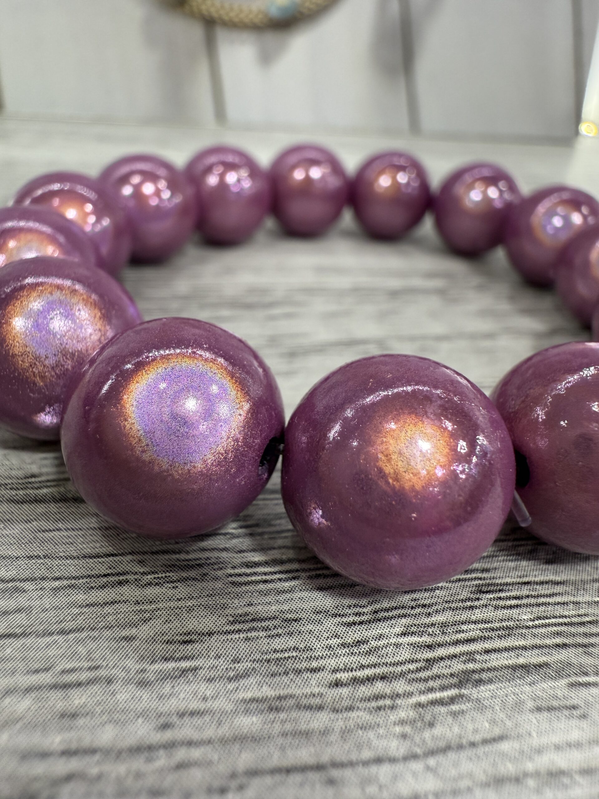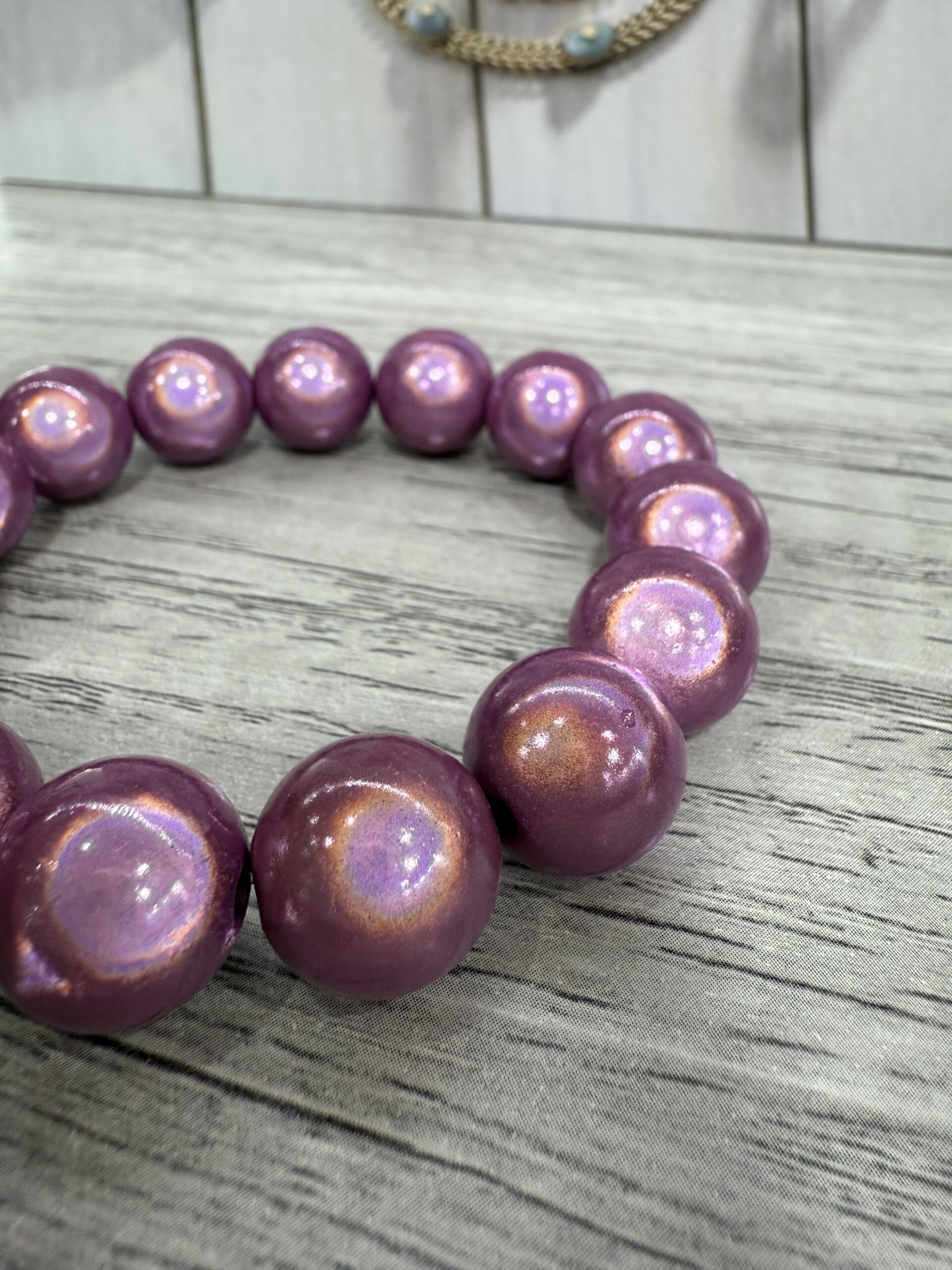 Adoptez ce joli bracelet perles avec un effet 3D en résine parme ! Selon l’exposition à la lumière les couleurs des perles changent, c’est ce qui le rend UNIQUE !