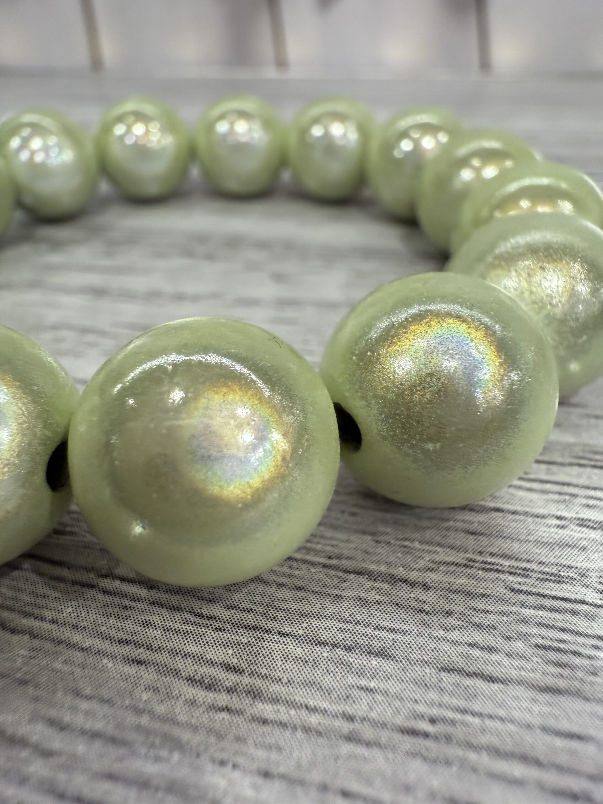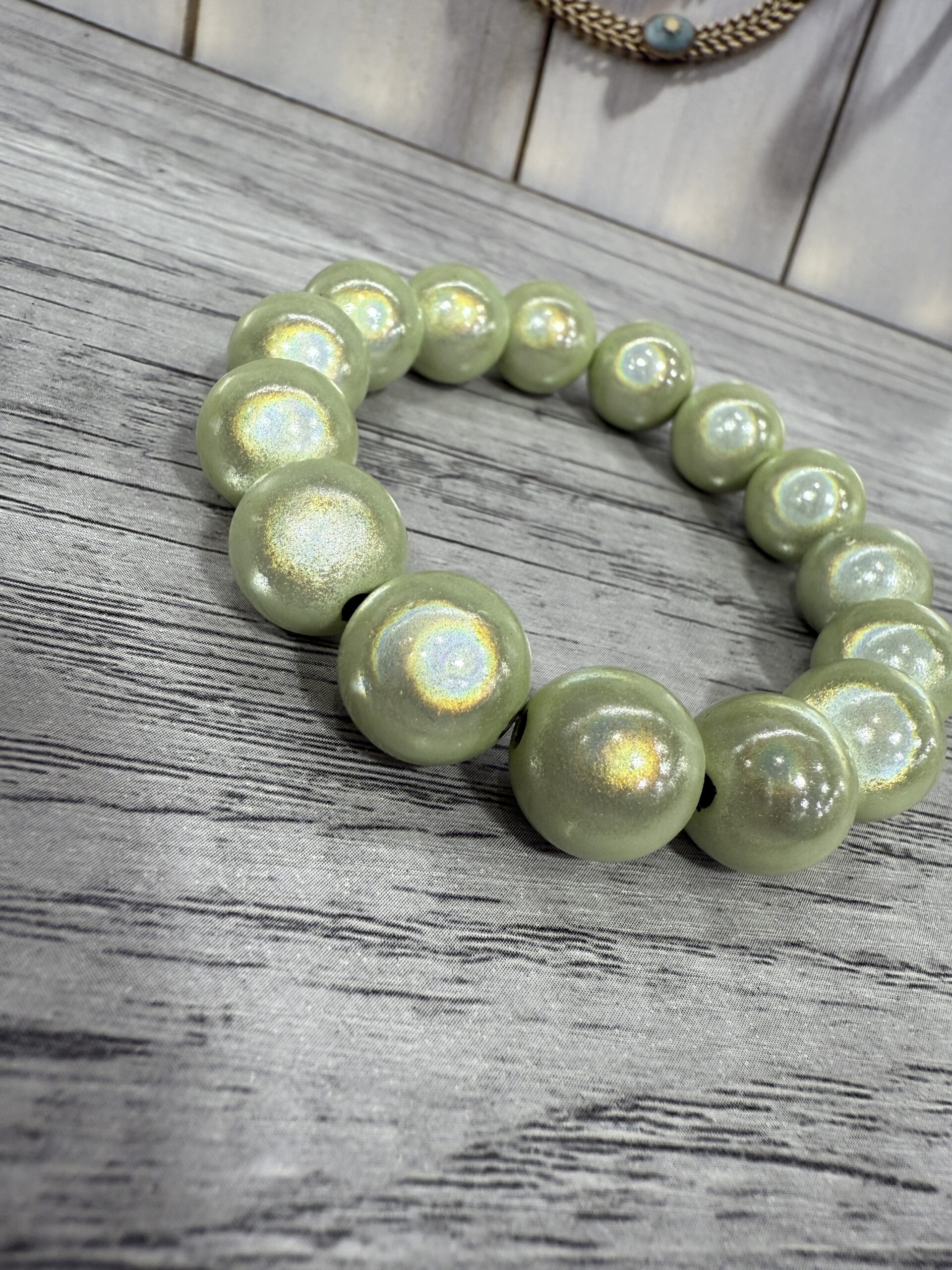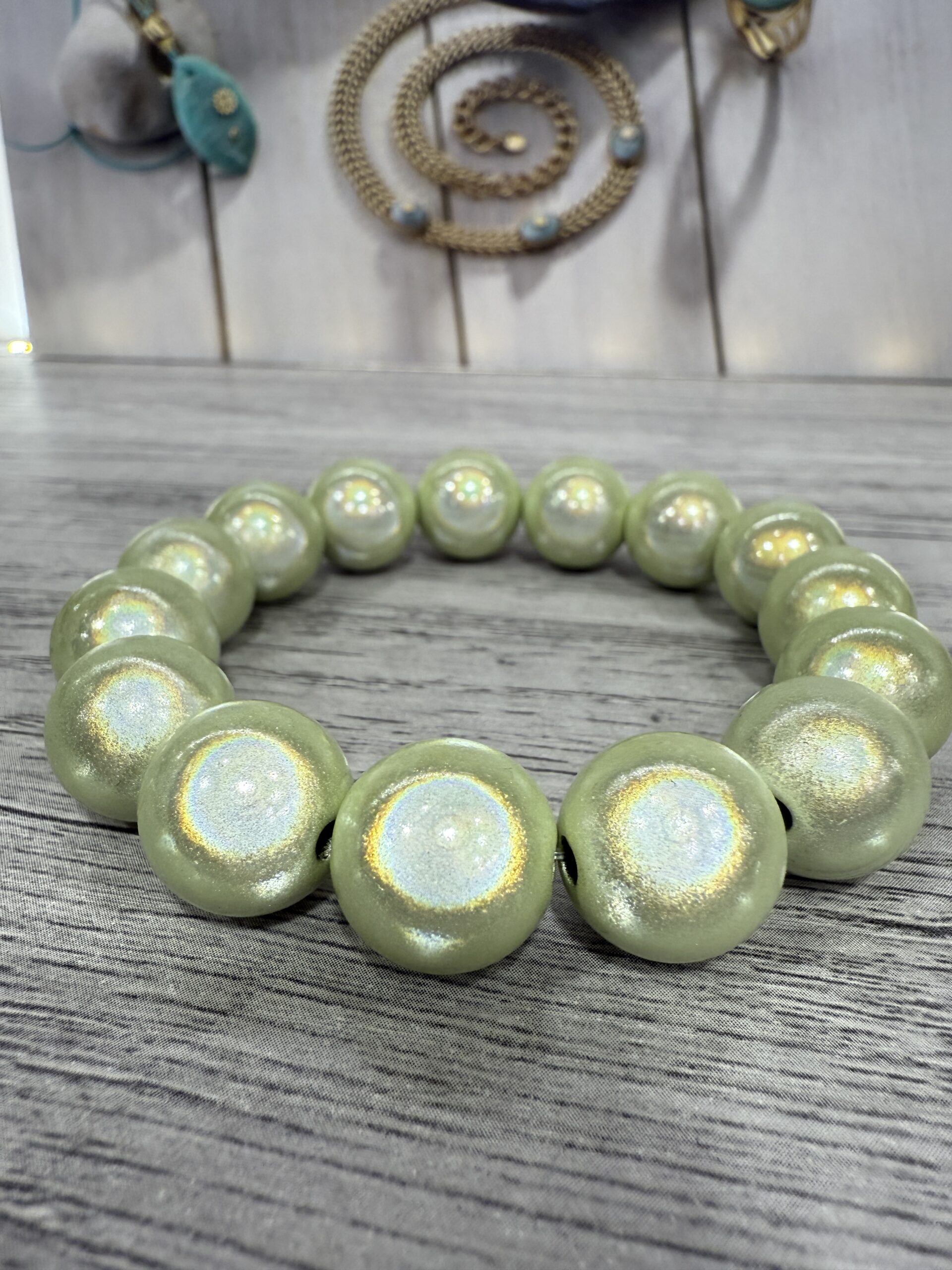 Purchase & earn 2 points!Adoptez ce joli bracelet perles avec un effet 3D en résine vert amande ! Selon l’exposition à la lumière les couleurs des perles changent, c’est ce qui le rend UNIQUE !