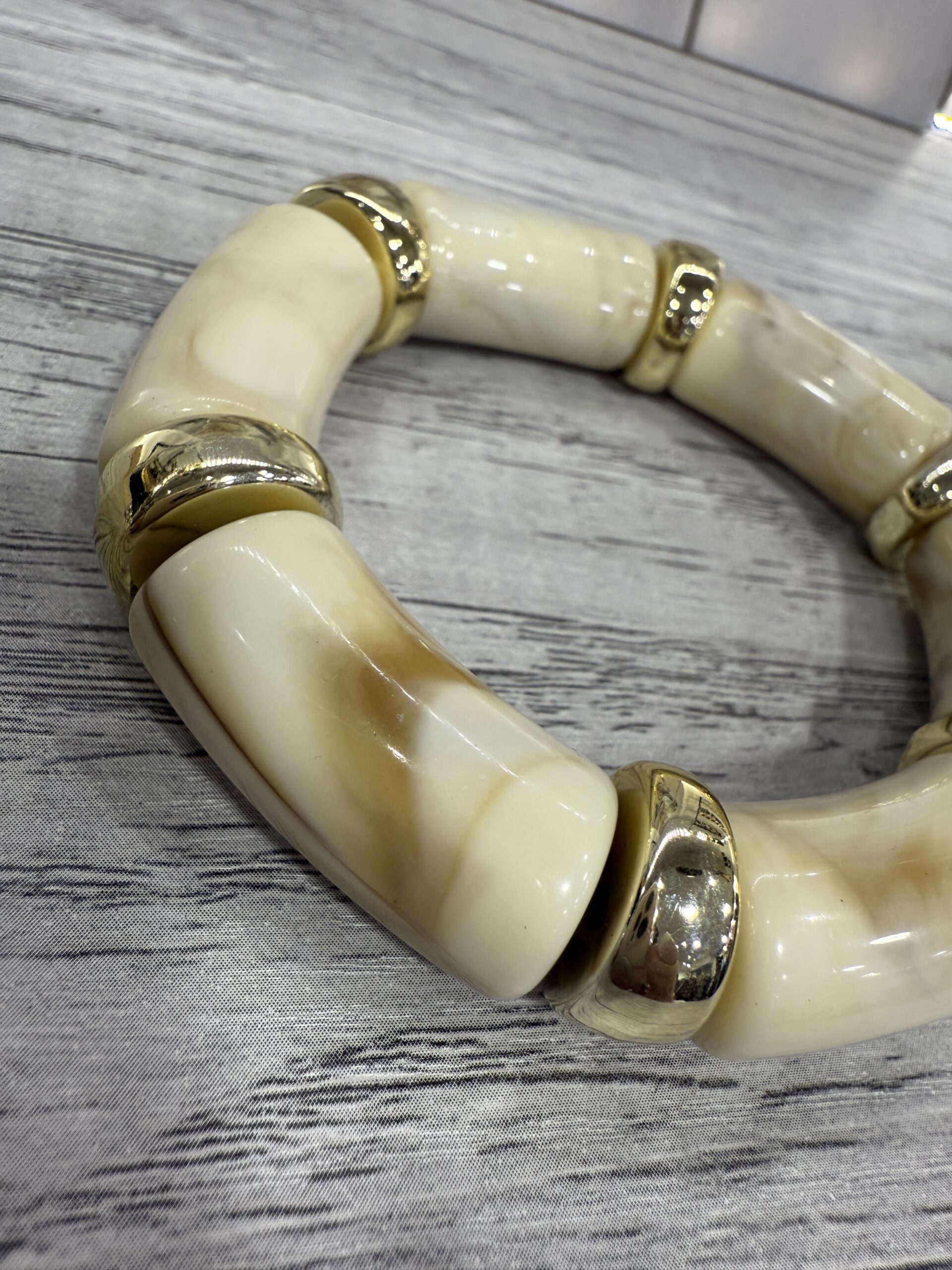 Purchase & earn 1 point!Adoptez ce joli bracelet tube acrylique beige ivoire marbré pour un look tendance et chic !