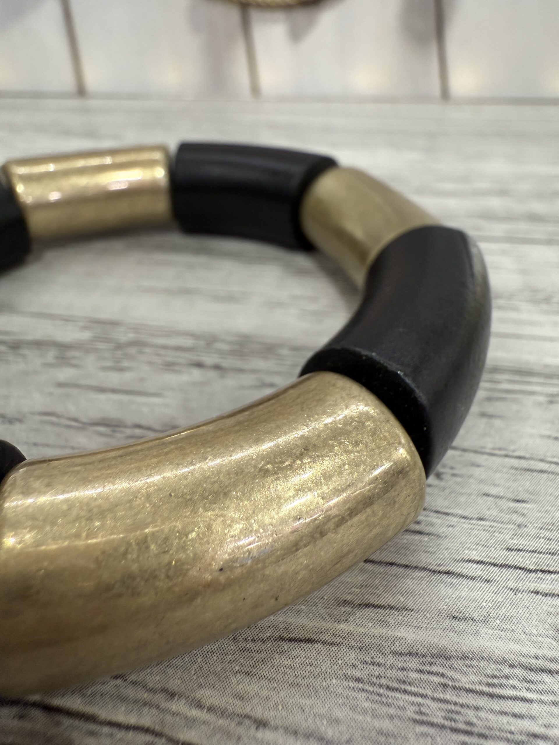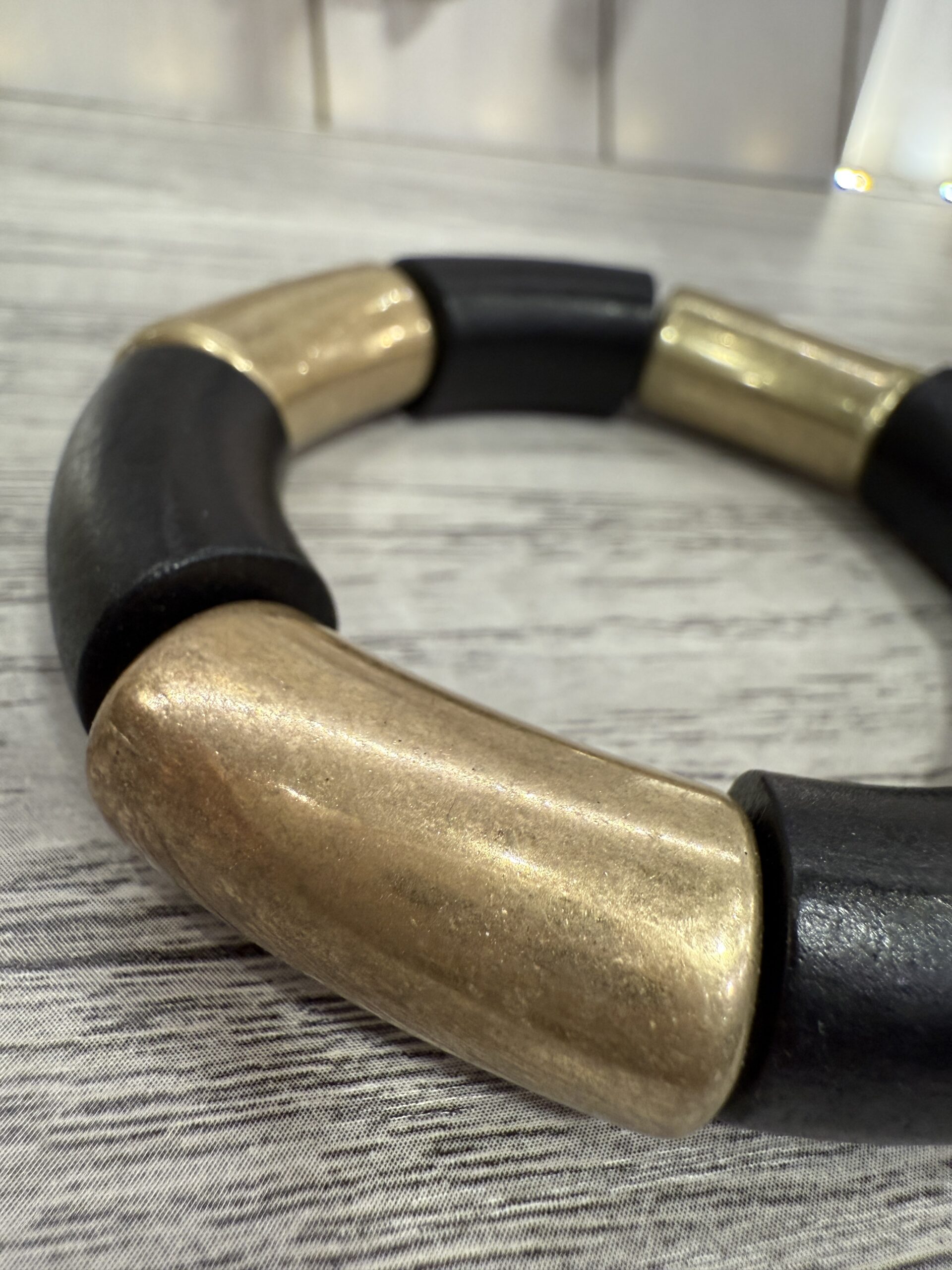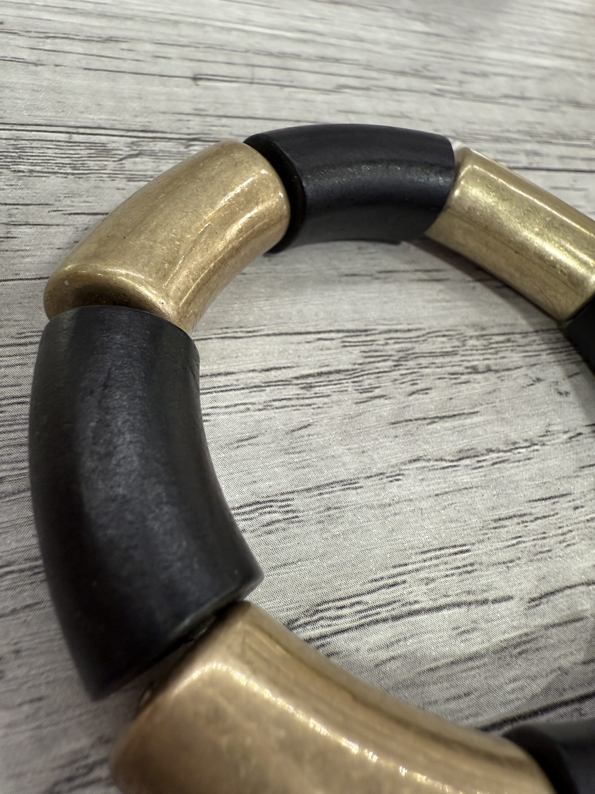 Purchase & earn 1 point!Adoptez ce joli bracelet tube acrylique bois noir et doré mat pour un look tendance et chic !
