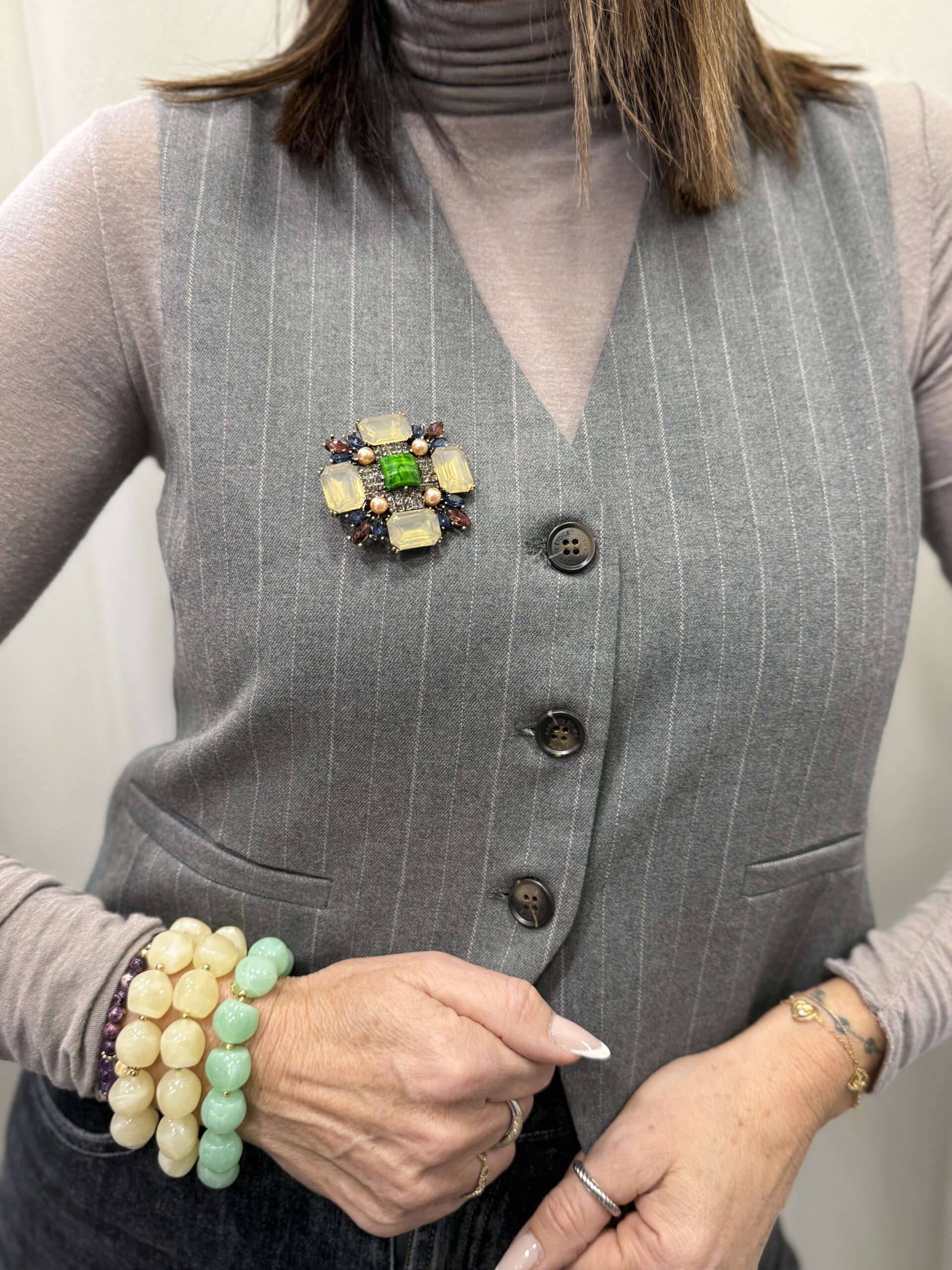 Ajoutez une touche de luxe à vos tenues avec cette broche spectaculaire au design géométrique et sophistiqué!