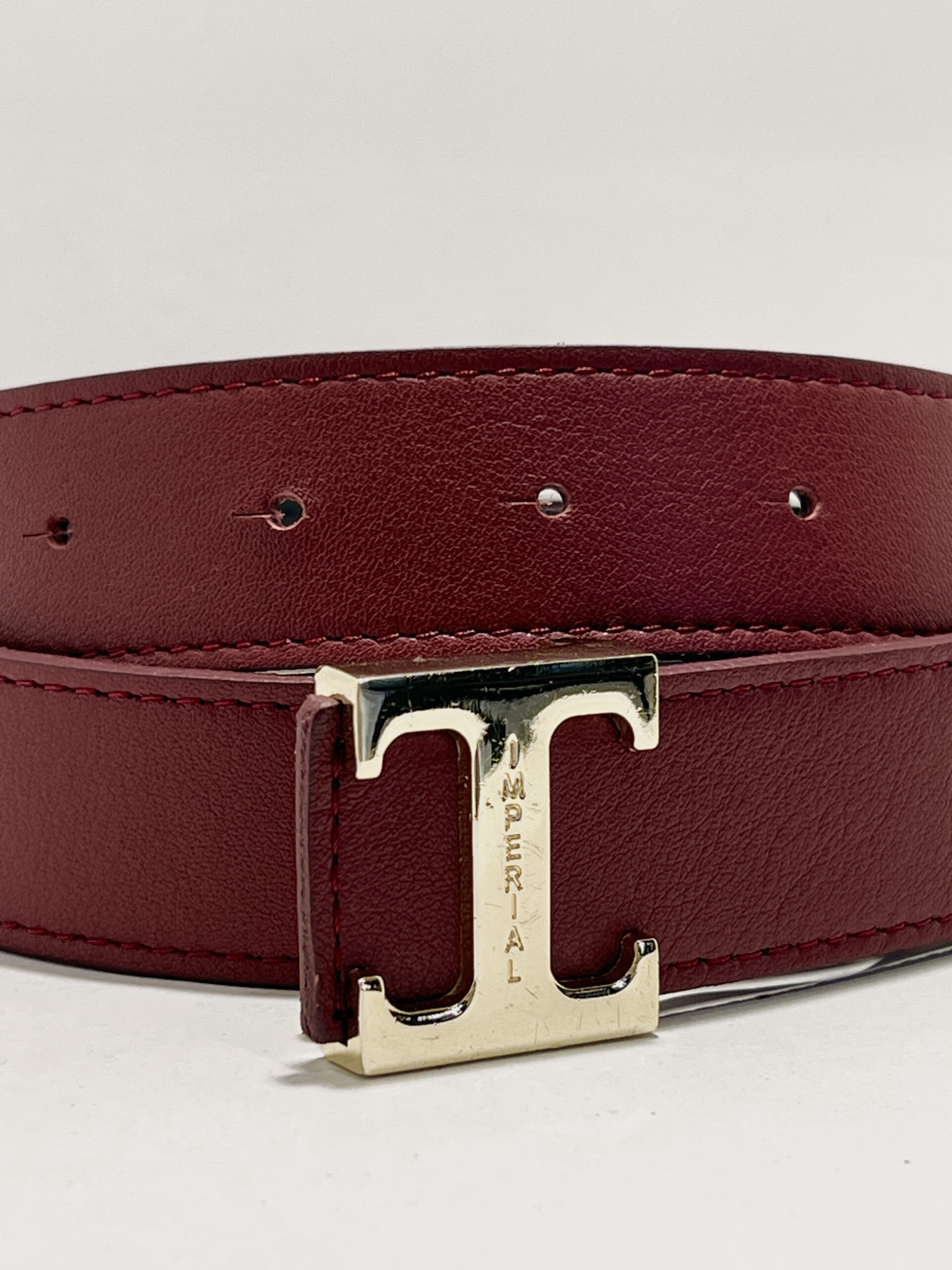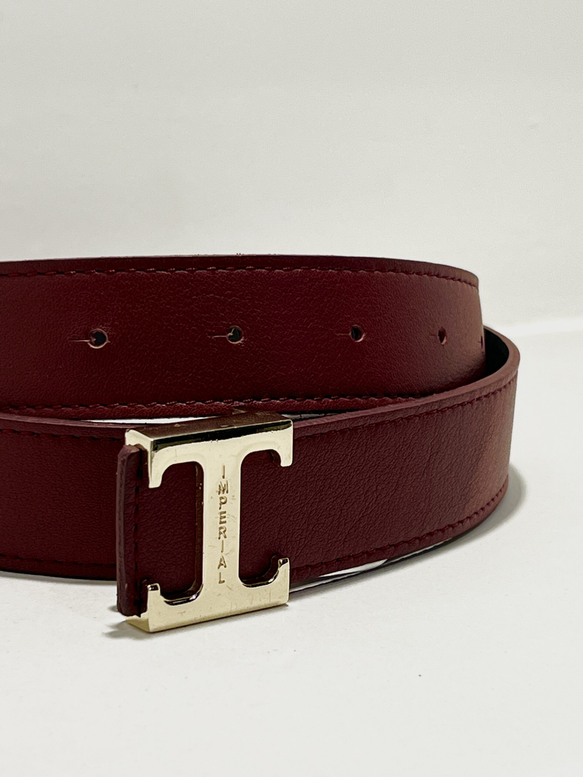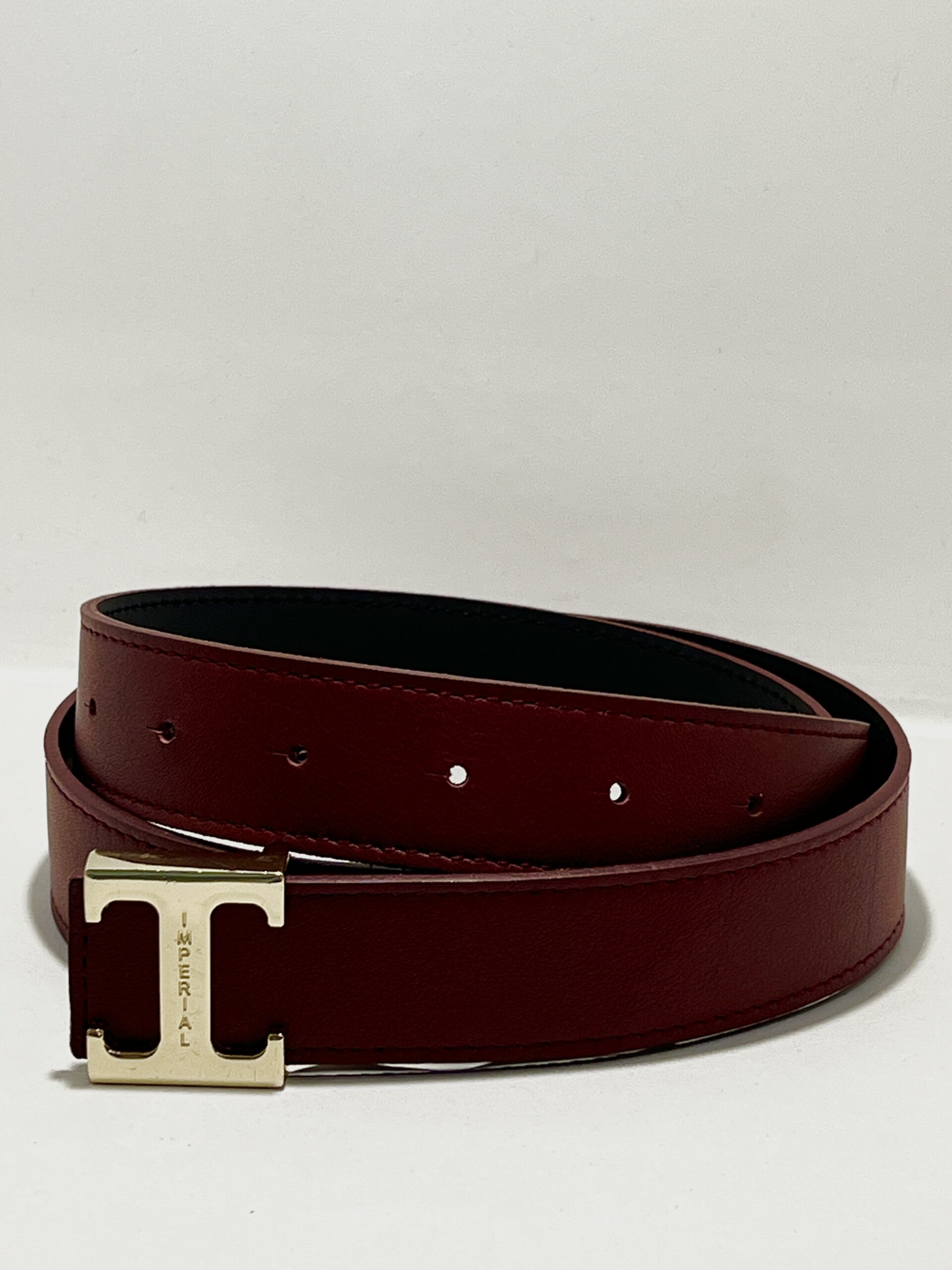 Purchase & earn 5 points!Elégante et minimaliste, cette ceinture en cuir bordeaux apporte une touche sophistiquée à toutes vos tenues. Son design épuré est sublimé par une boucle métallique dorée au style affirmé, idéale pour un look et contemporain.