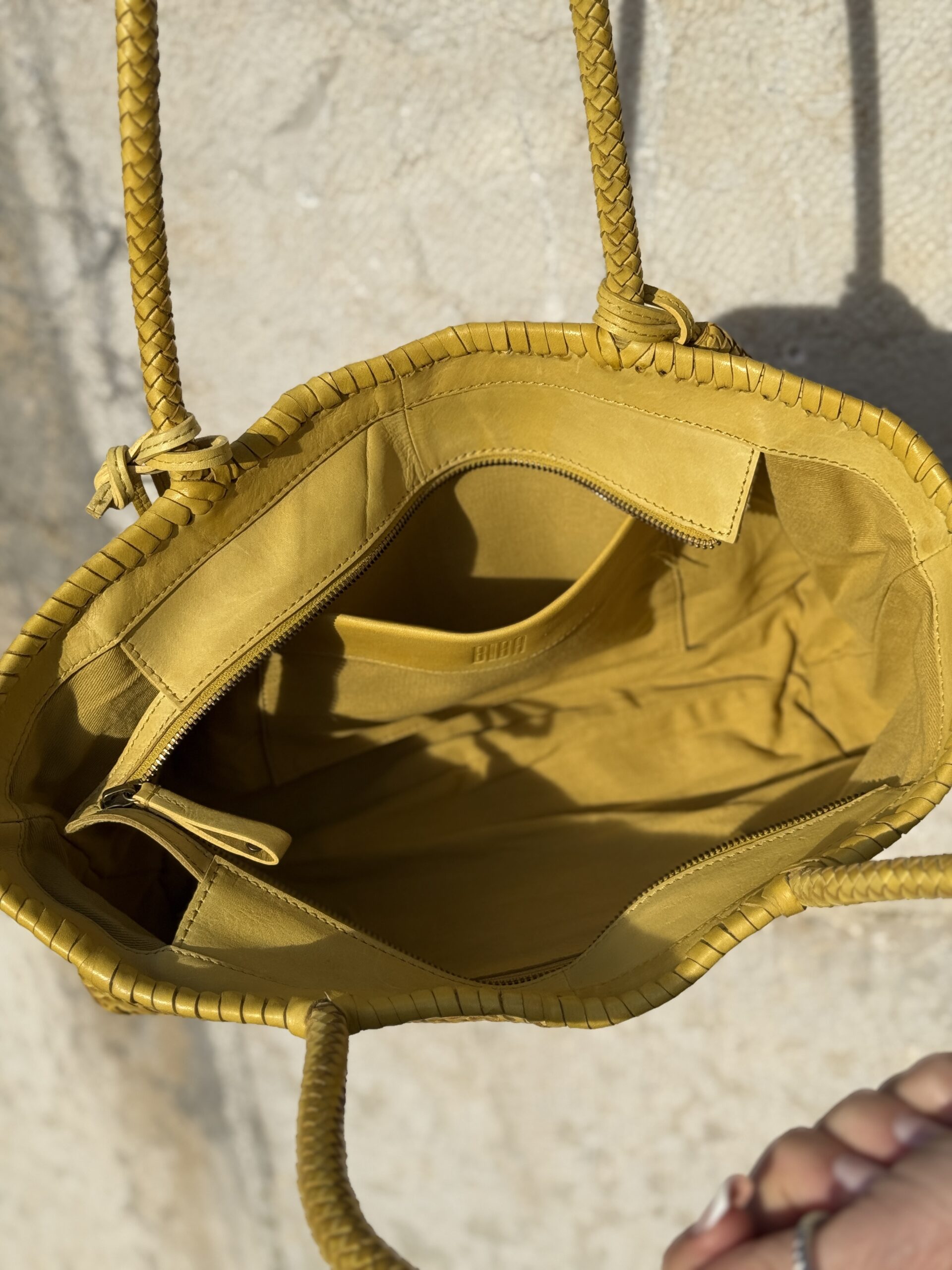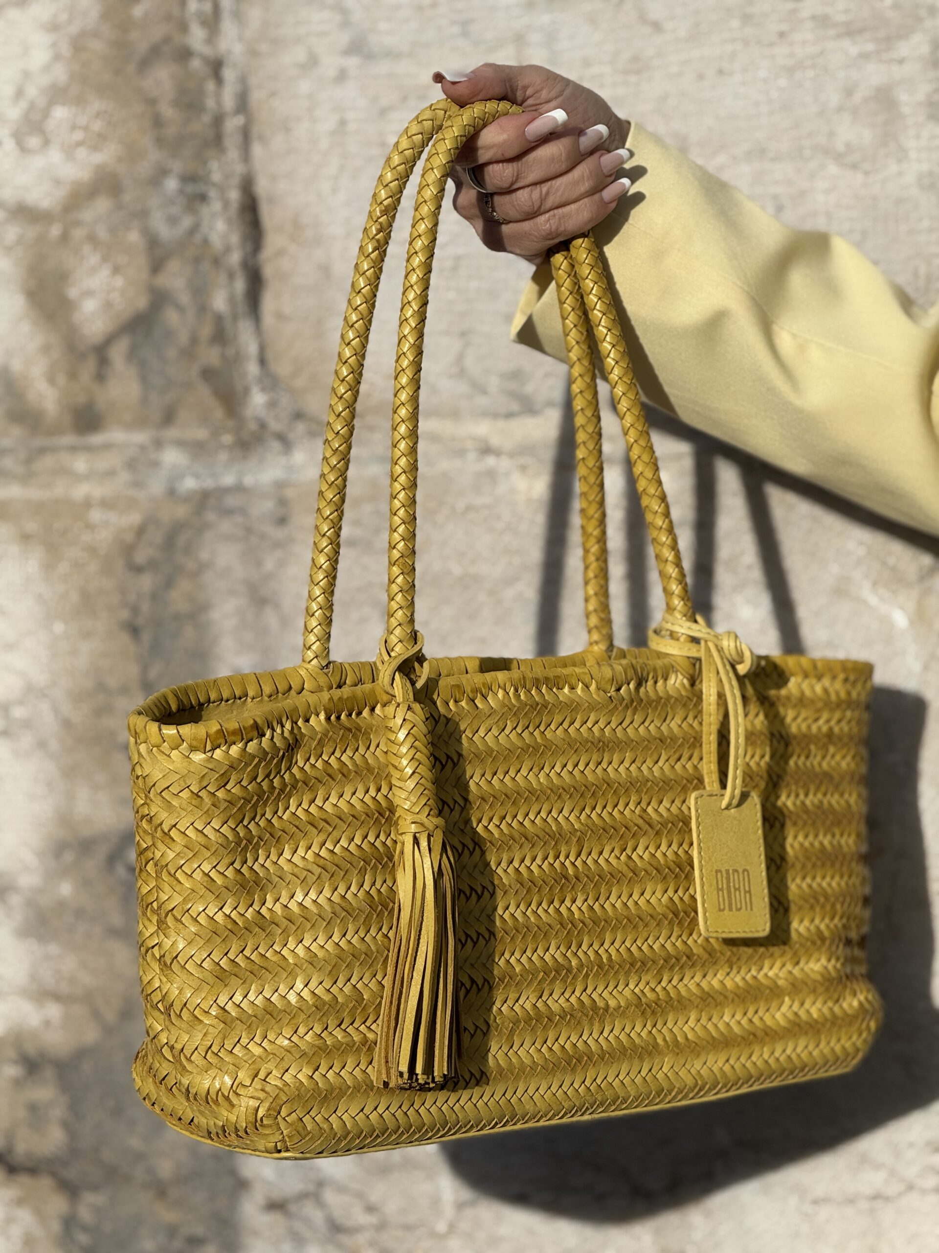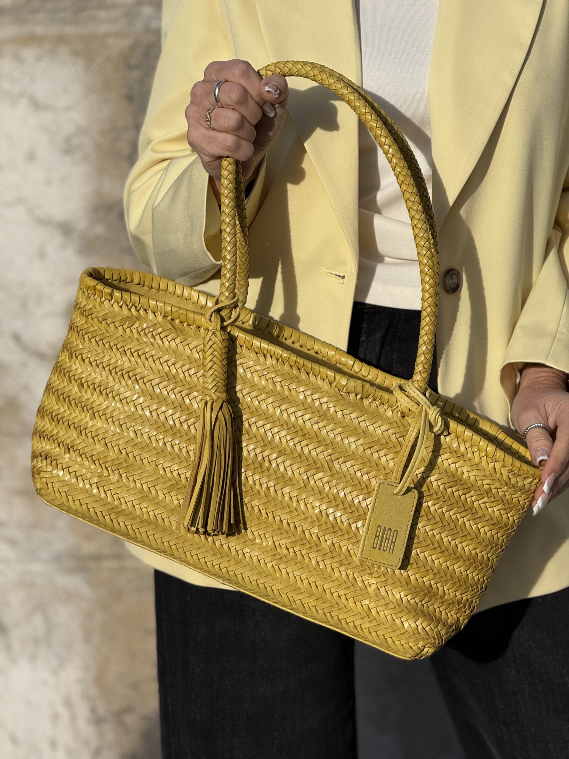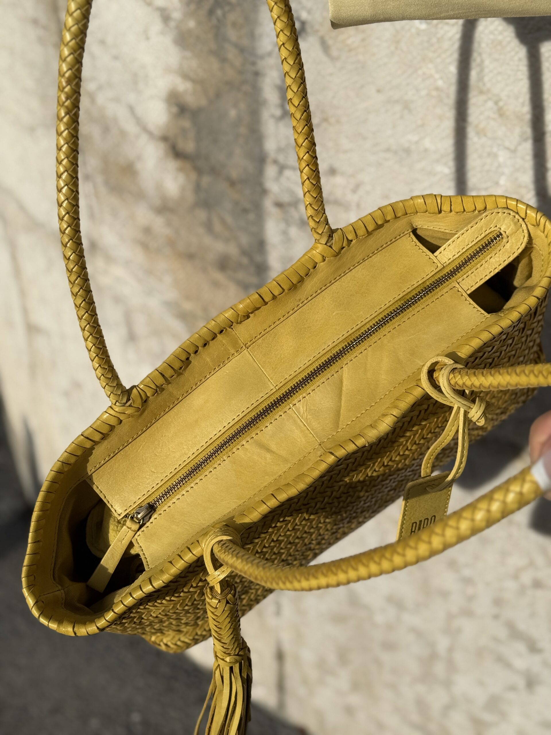 Chic et lumineux, ce sac en cuir tressé séduit par son esprit bohème raffiné et devient l’accessoire parfait pour accompagner les beaux jours avec élégance et décontraction.