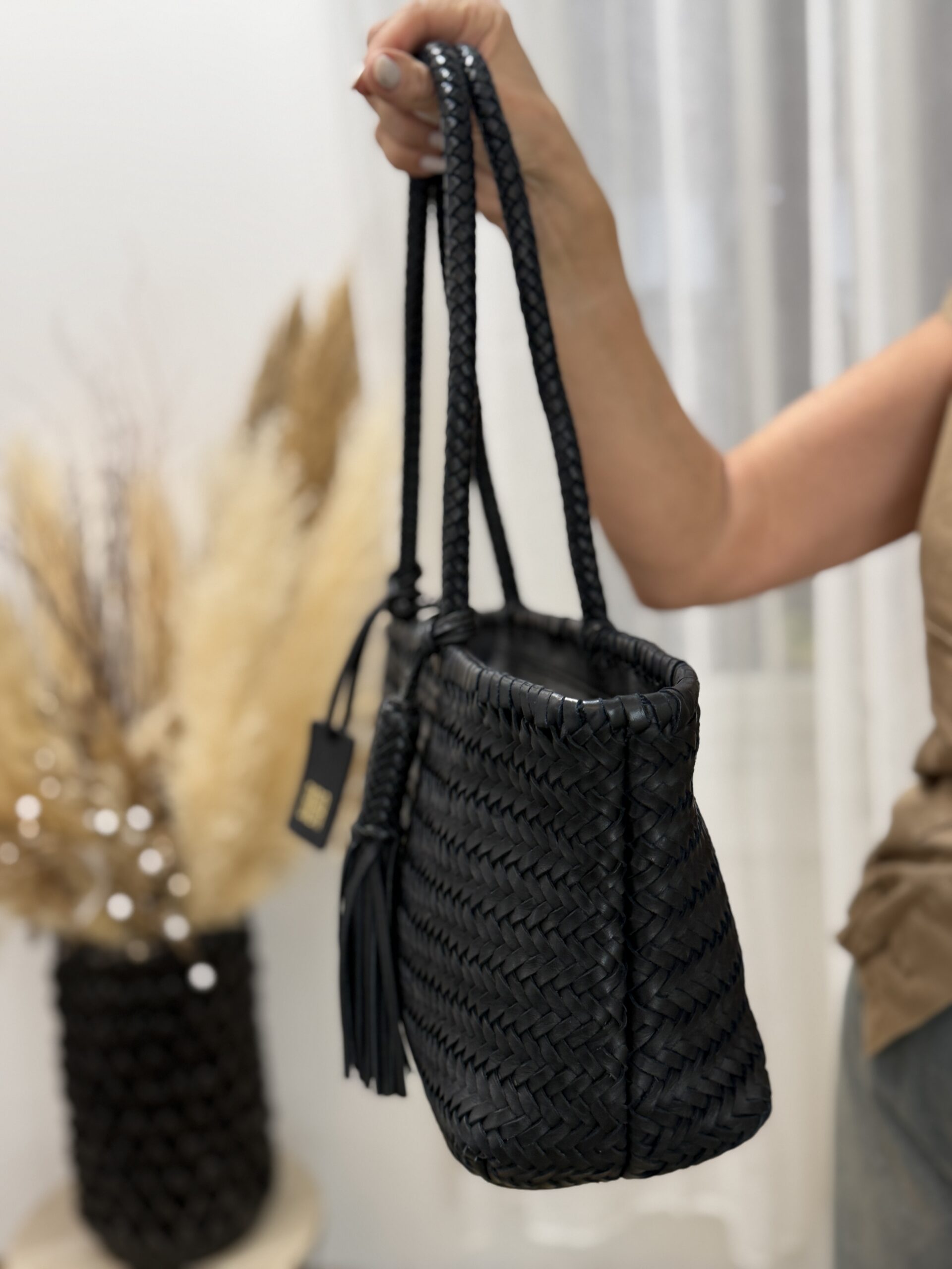 Chic et lumineux, ce sac en cuir tressé séduit par son esprit bohème raffiné et devient l’accessoire parfait pour accompagner les beaux jours avec élégance et décontraction.