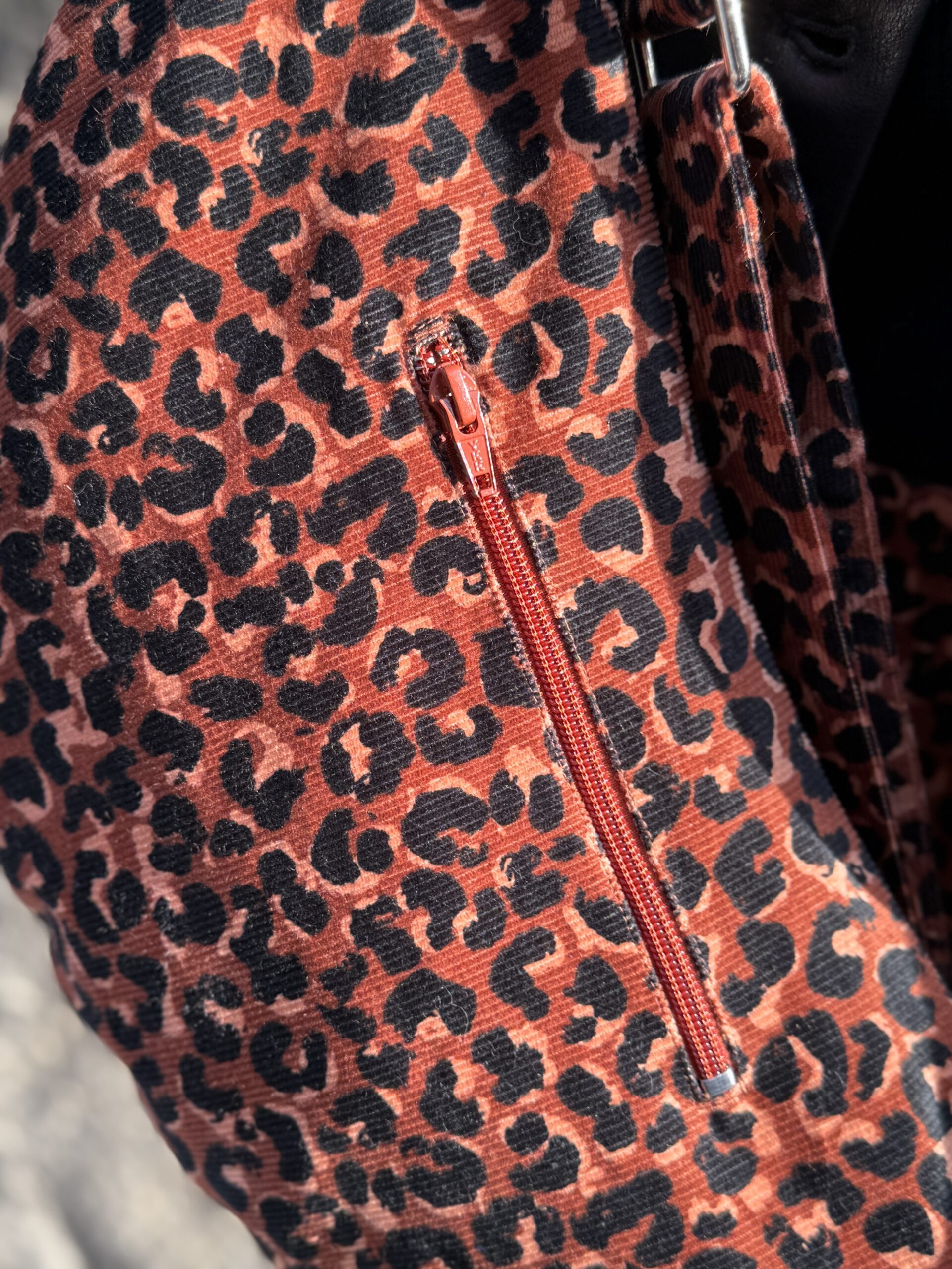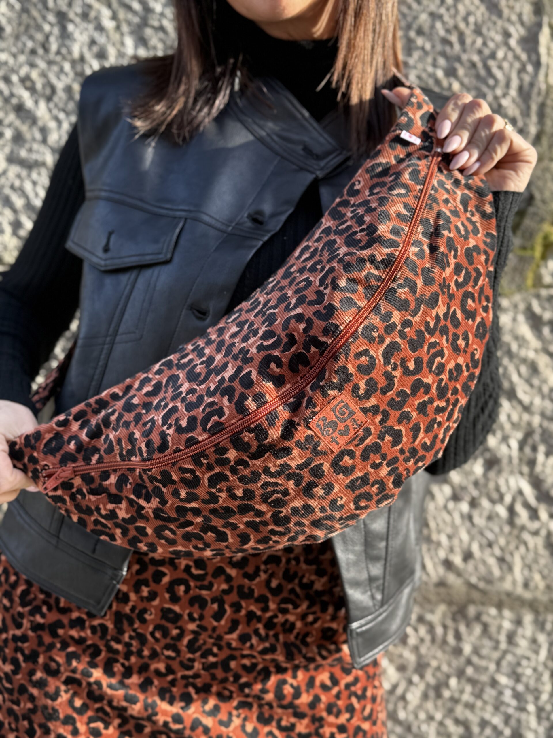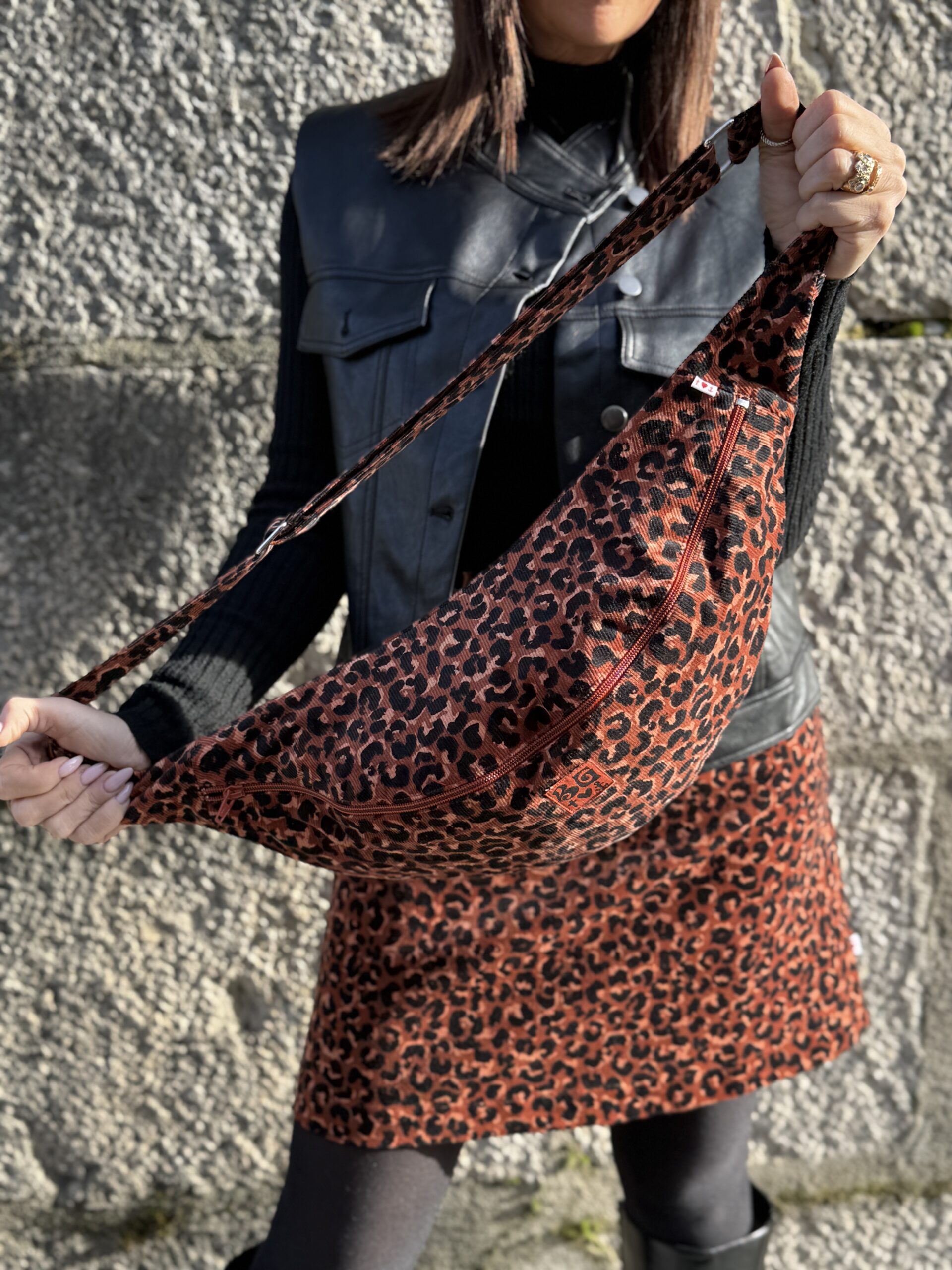 Ce sac banane en velours côtelé léopard orange et noir apporte une touche mode et audacieuse à vos tenues