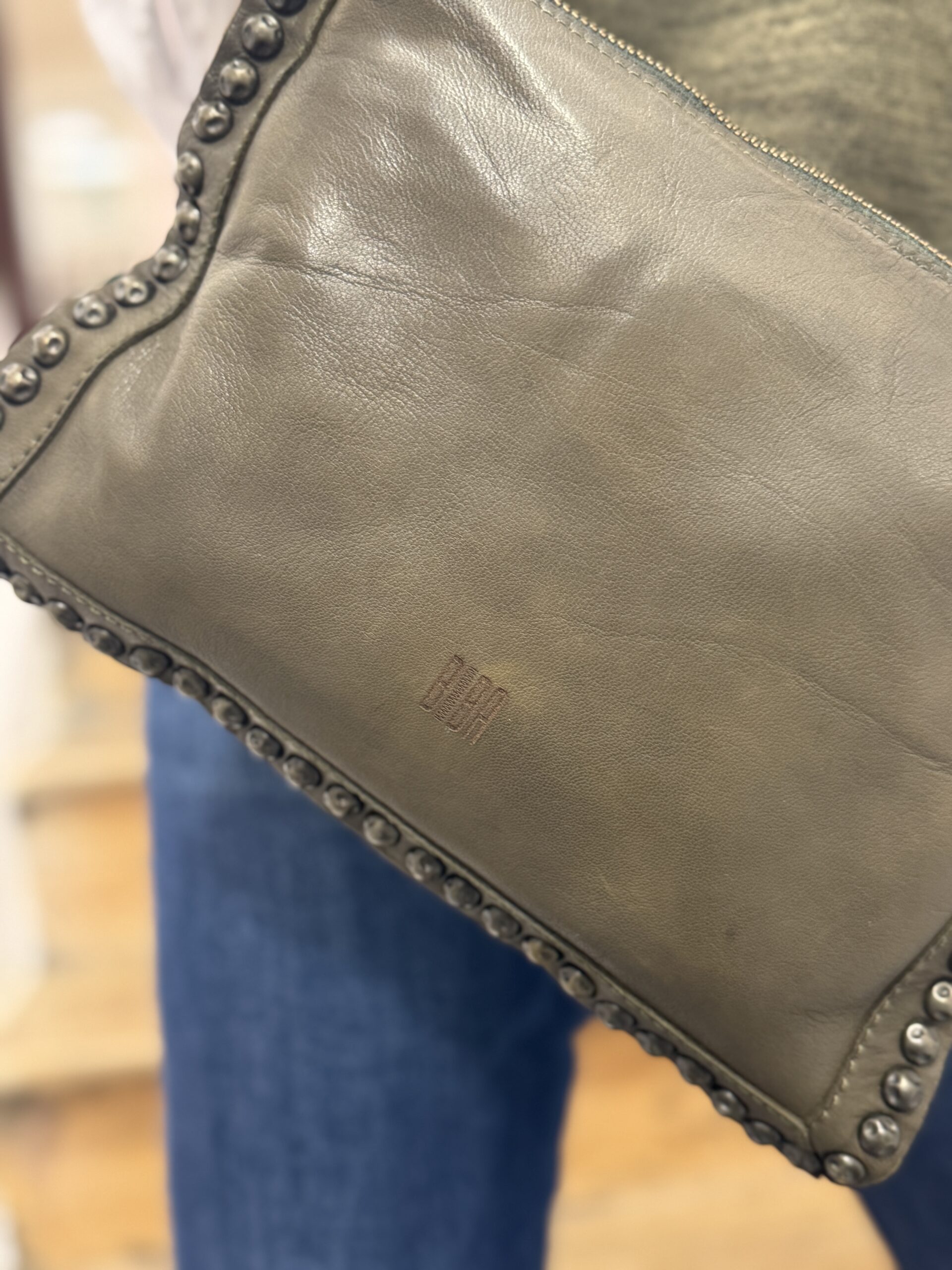 Purchase & earn 10 points!Ce sac bandoulière cloutée en cuir kaki sera votre allié pour la vie de tous les jours !