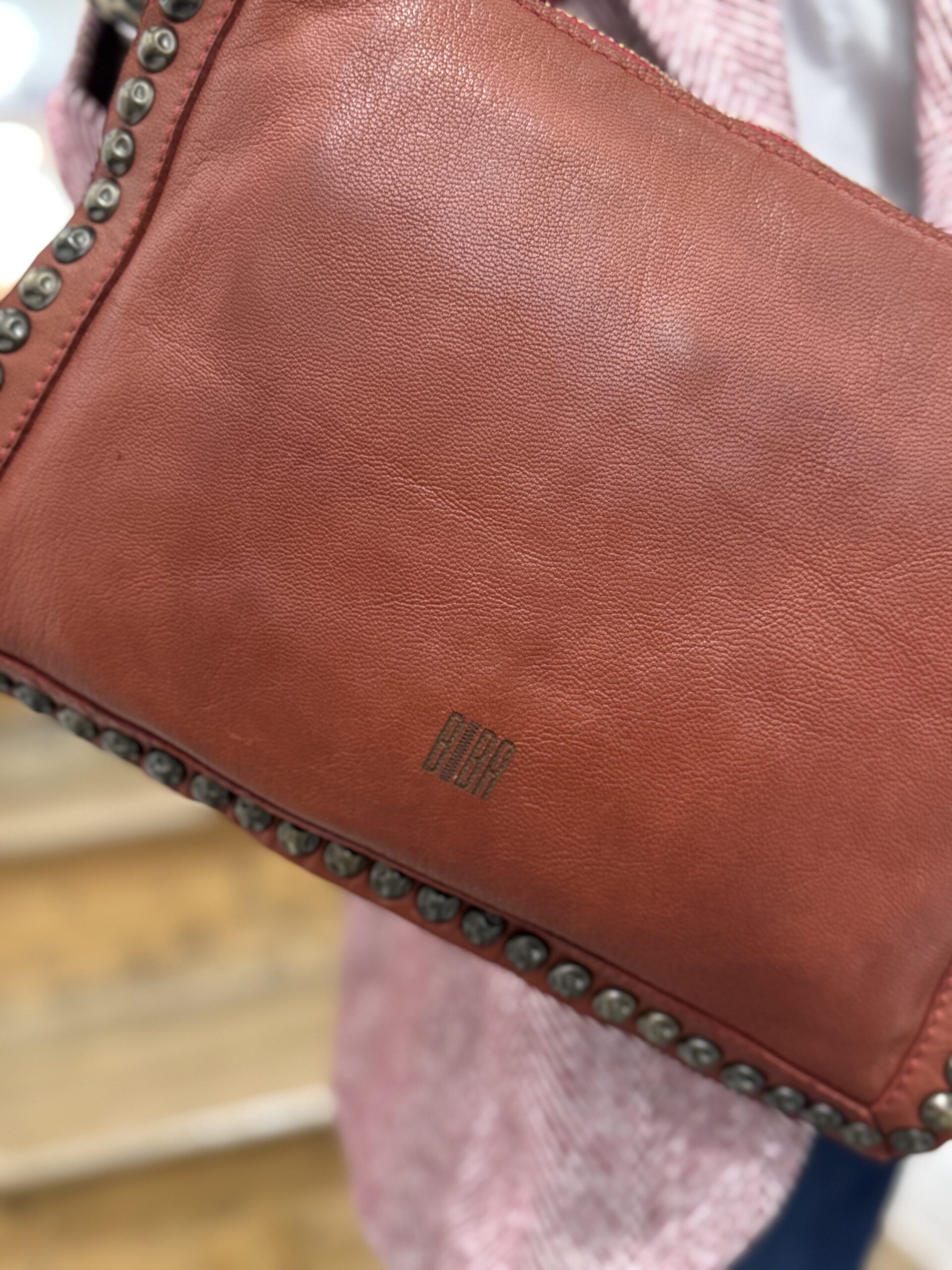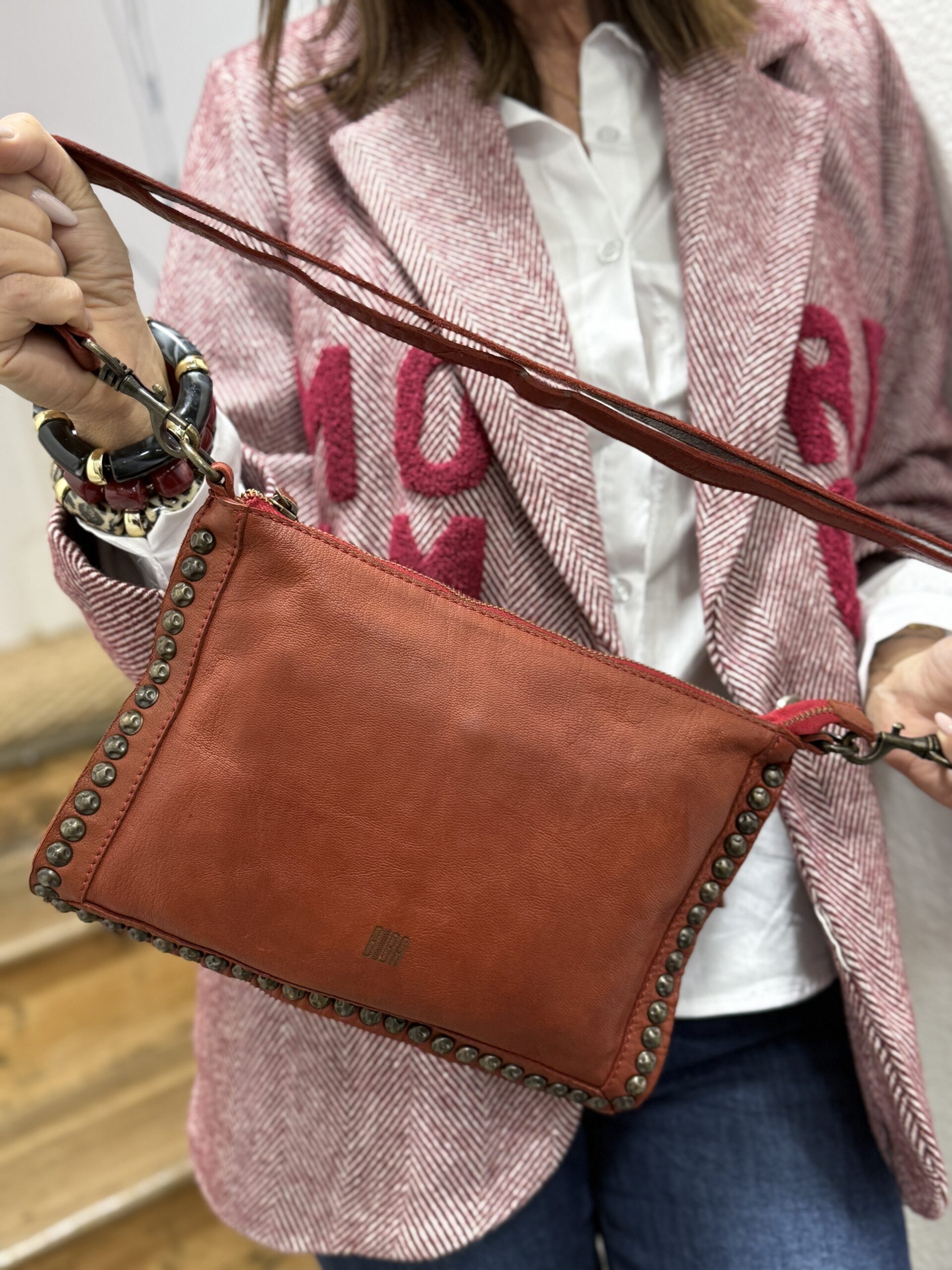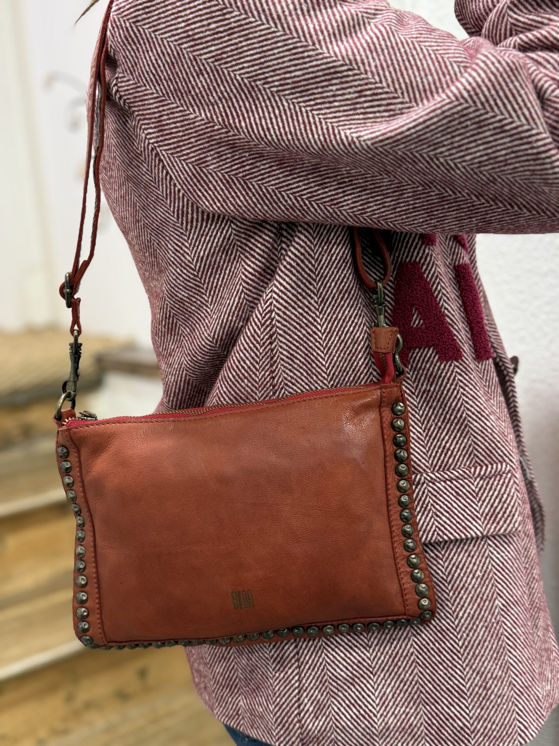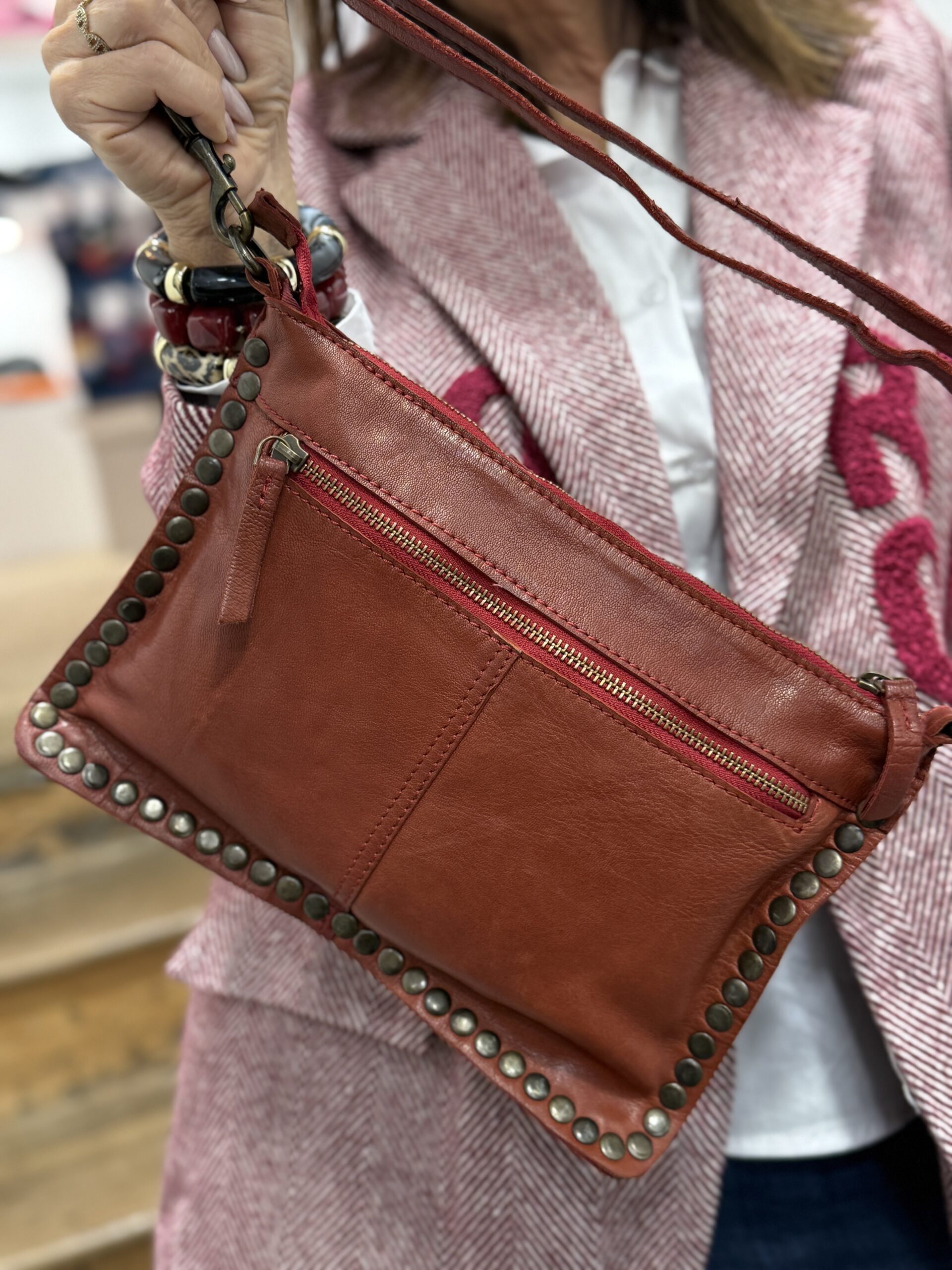 Purchase & earn 10 points!Ce sac bandoulière cloutée en cuir rouge sera votre allié pour la vie de tous les jours !