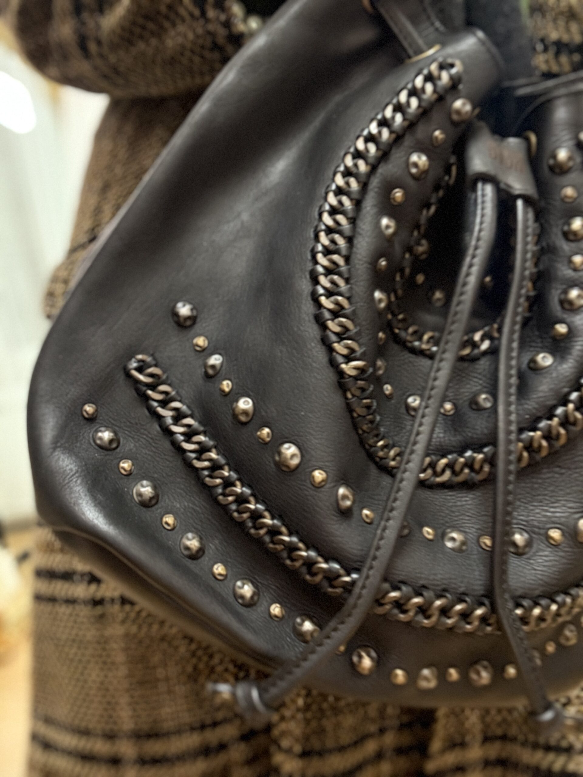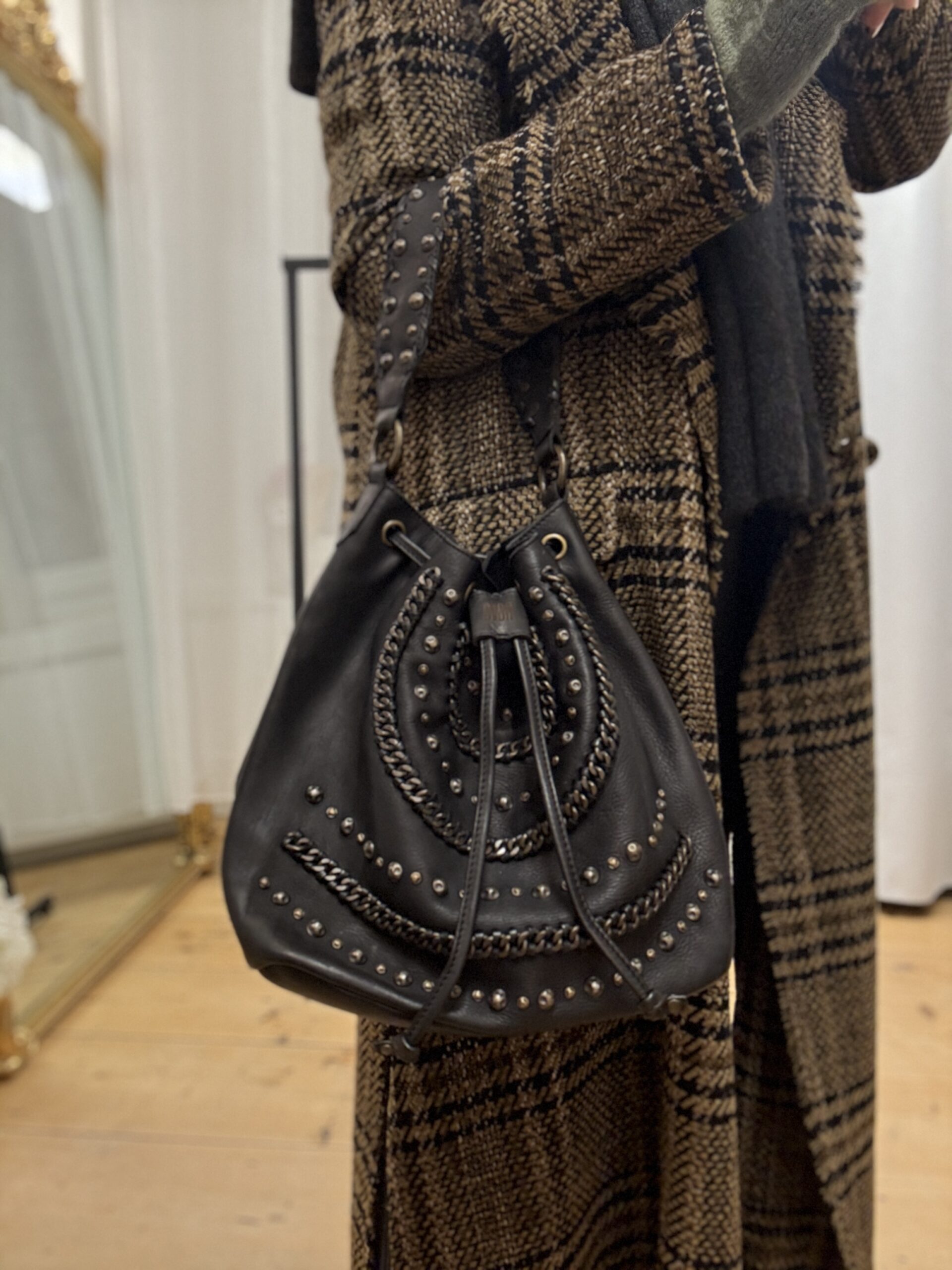Un joli sac en cuir orné de studs pour un look à la fois chic et rock.