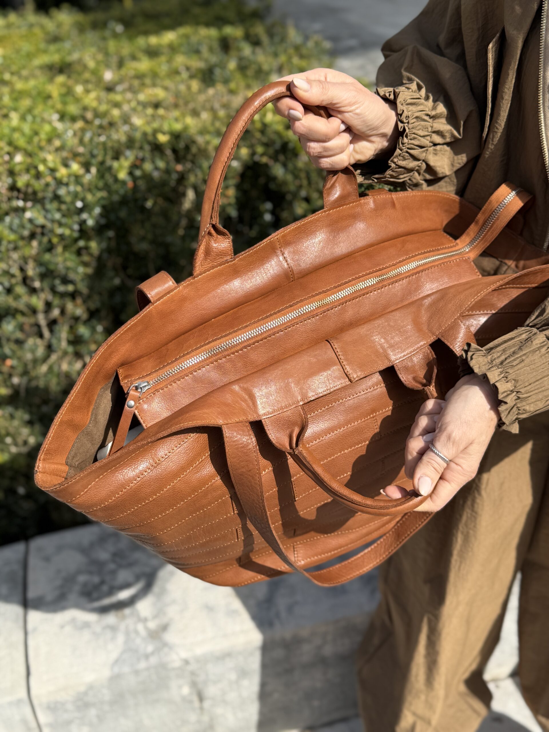 Spacieux et élégant, ce sac en cuir au charme intemporel mêle allure casual chic et praticité, l’allié parfait des journées bien remplies avec style.