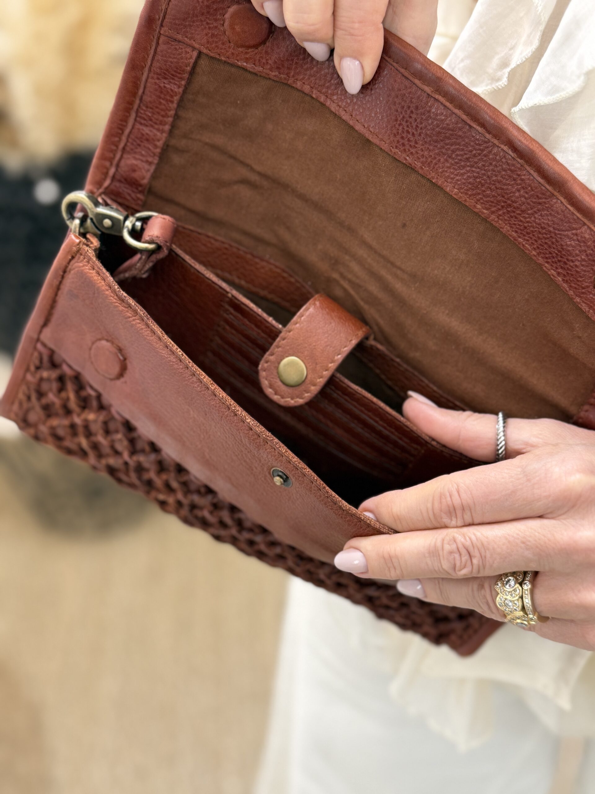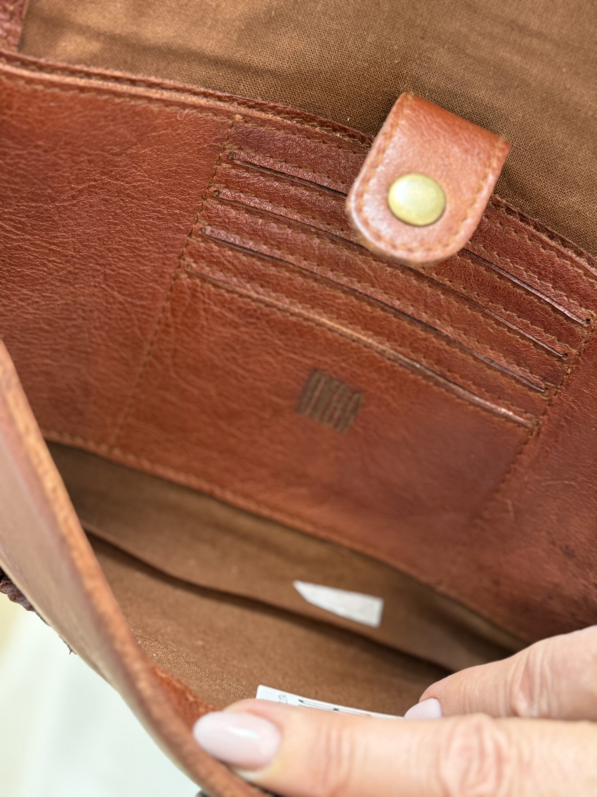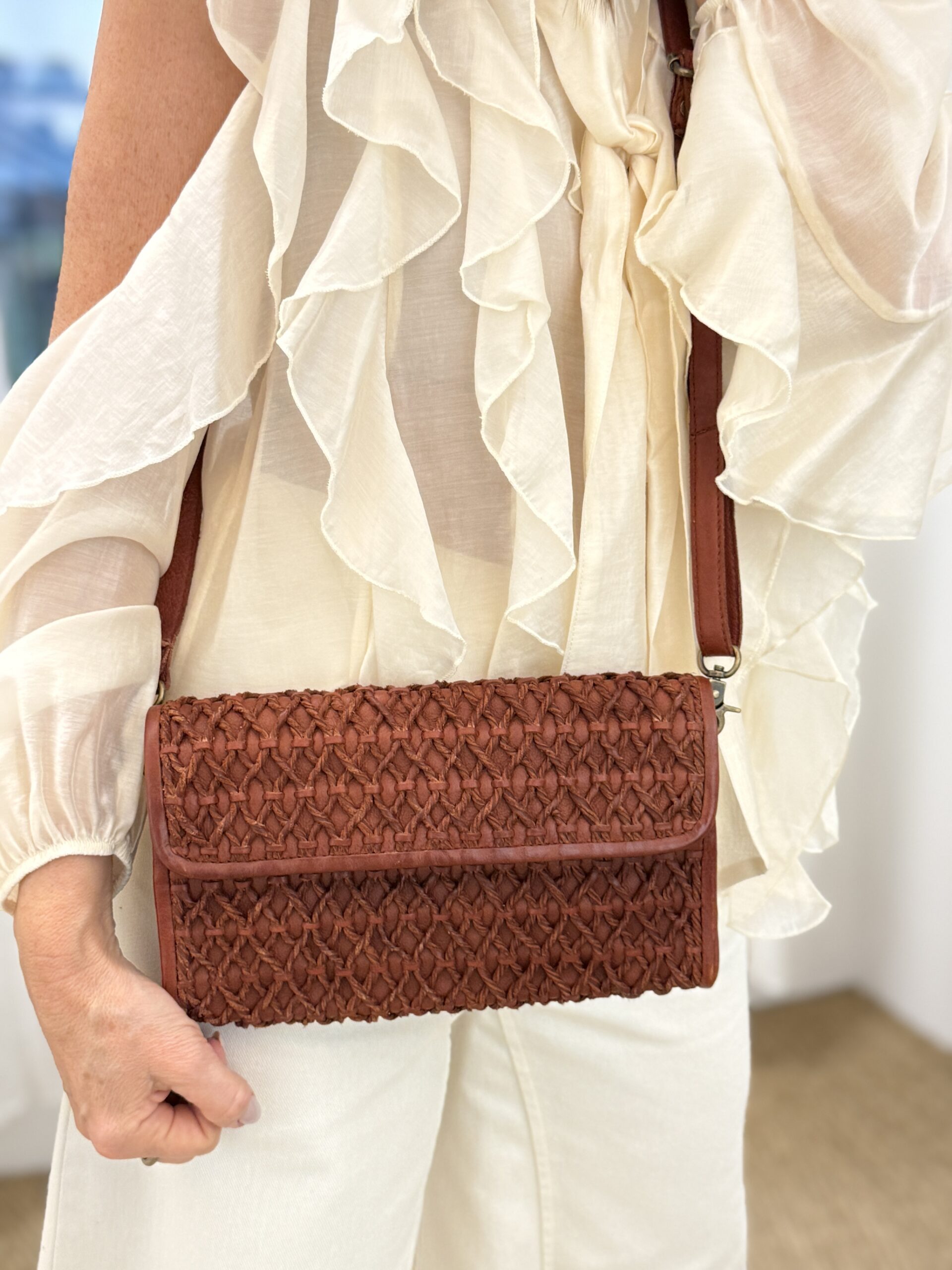 Sac bandoulière en cuir tressé tan Nekimi Biba