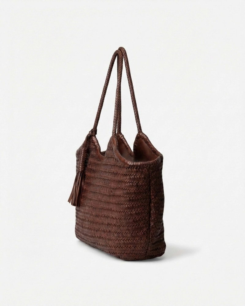 Ce sac tressée est l’allié parfait des silhouettes solaires : chic sans effort, naturel mais terriblement désirable. Il apporte instantanément une allure bohème raffinée.