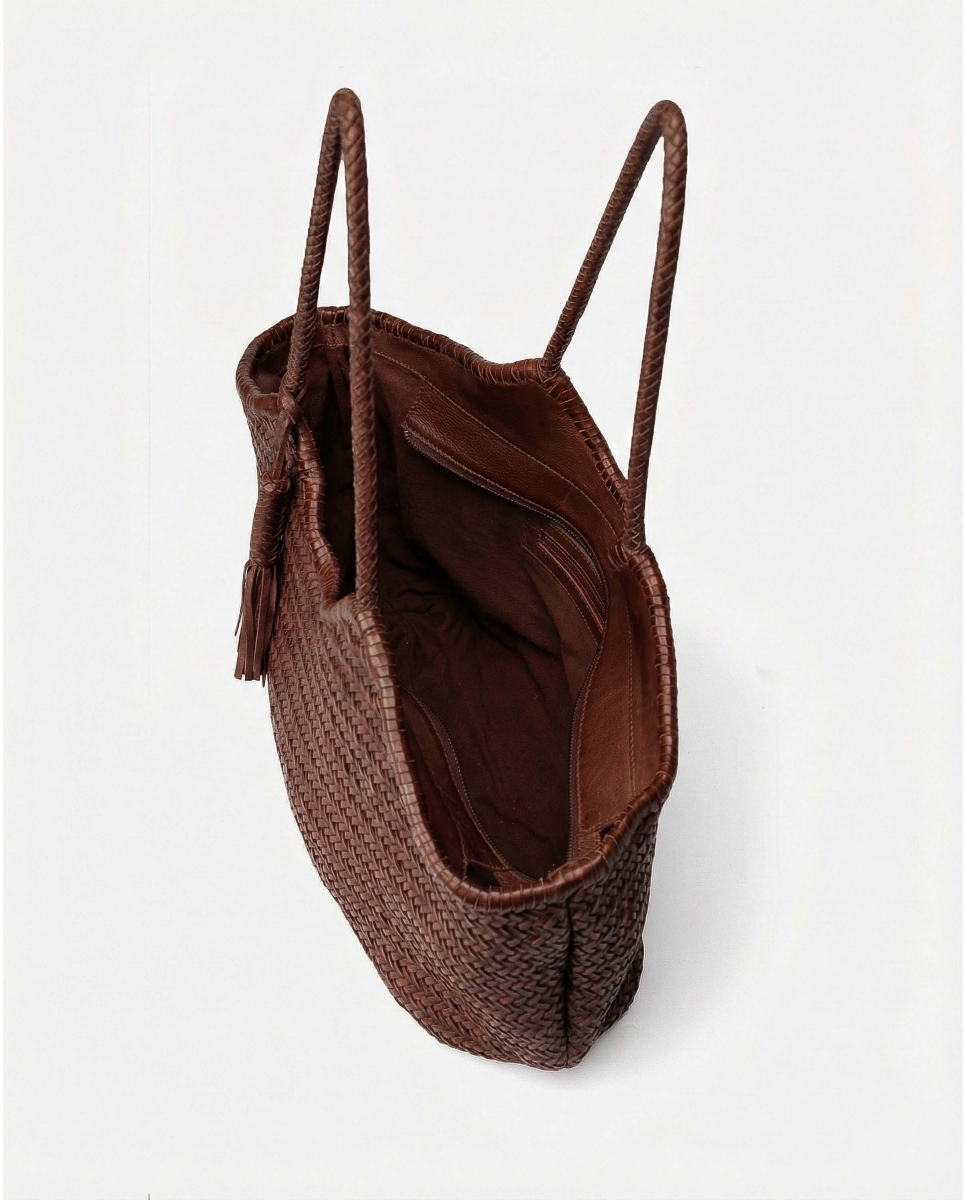 Grand cabas en cuir de vachette tressé