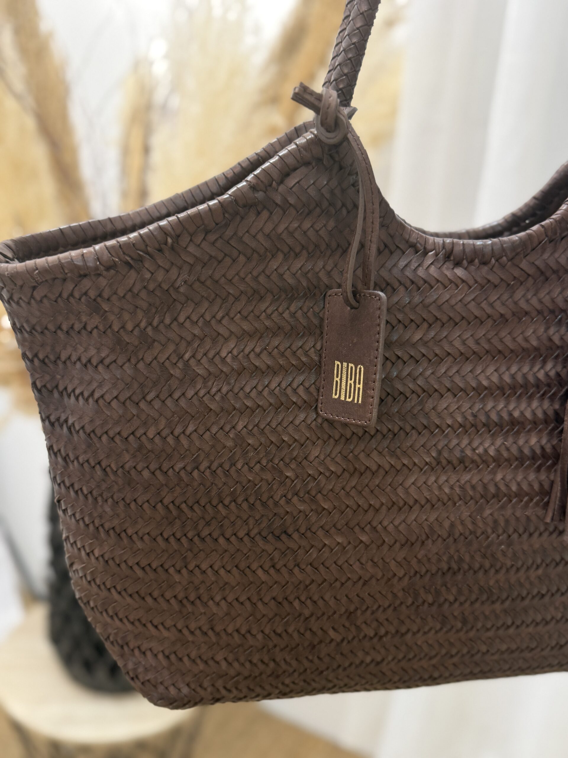 Sac cabas en cuir tressé marron perkins Biba