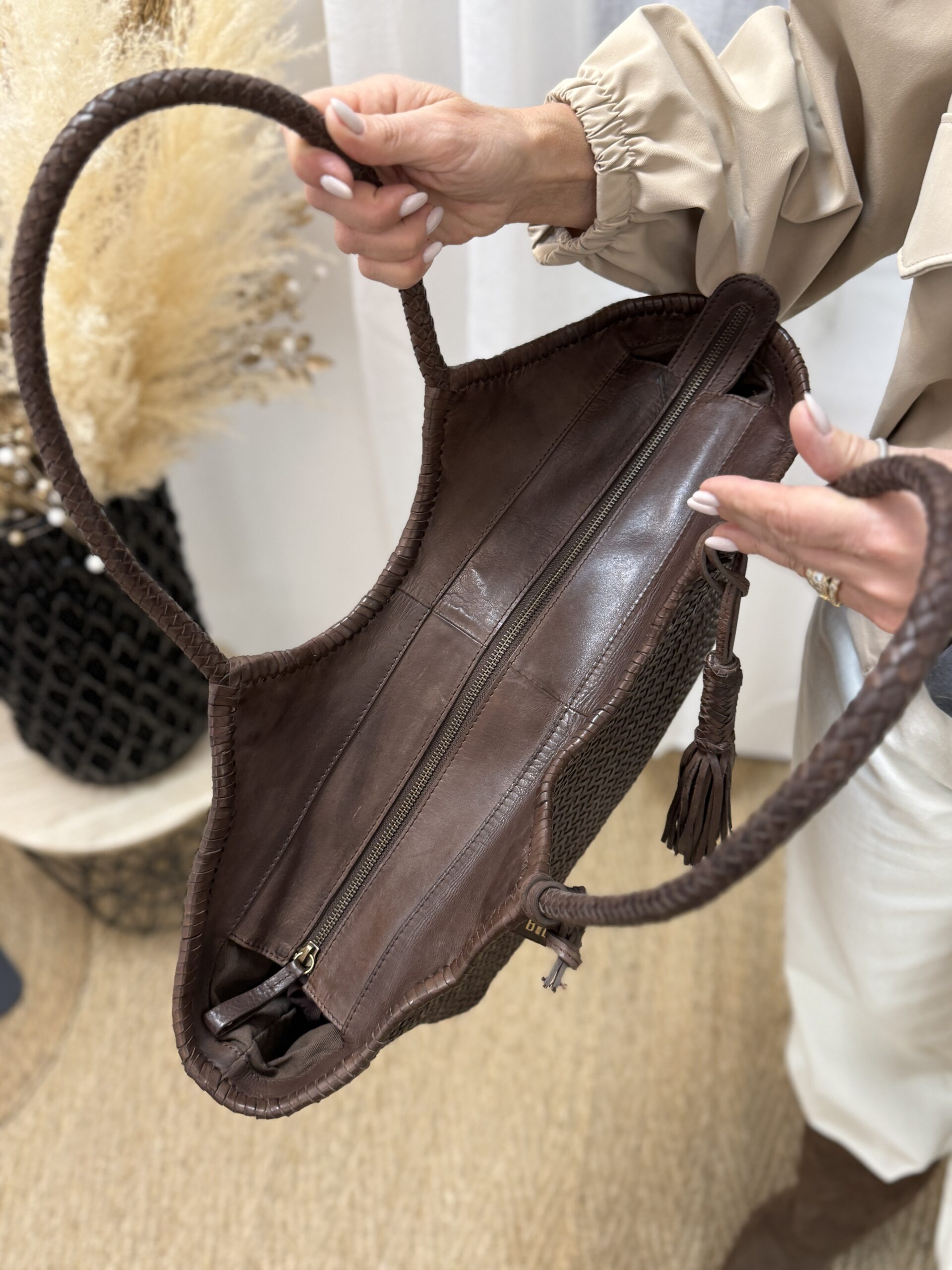 - Grand cabas en cuir de vachette tressé