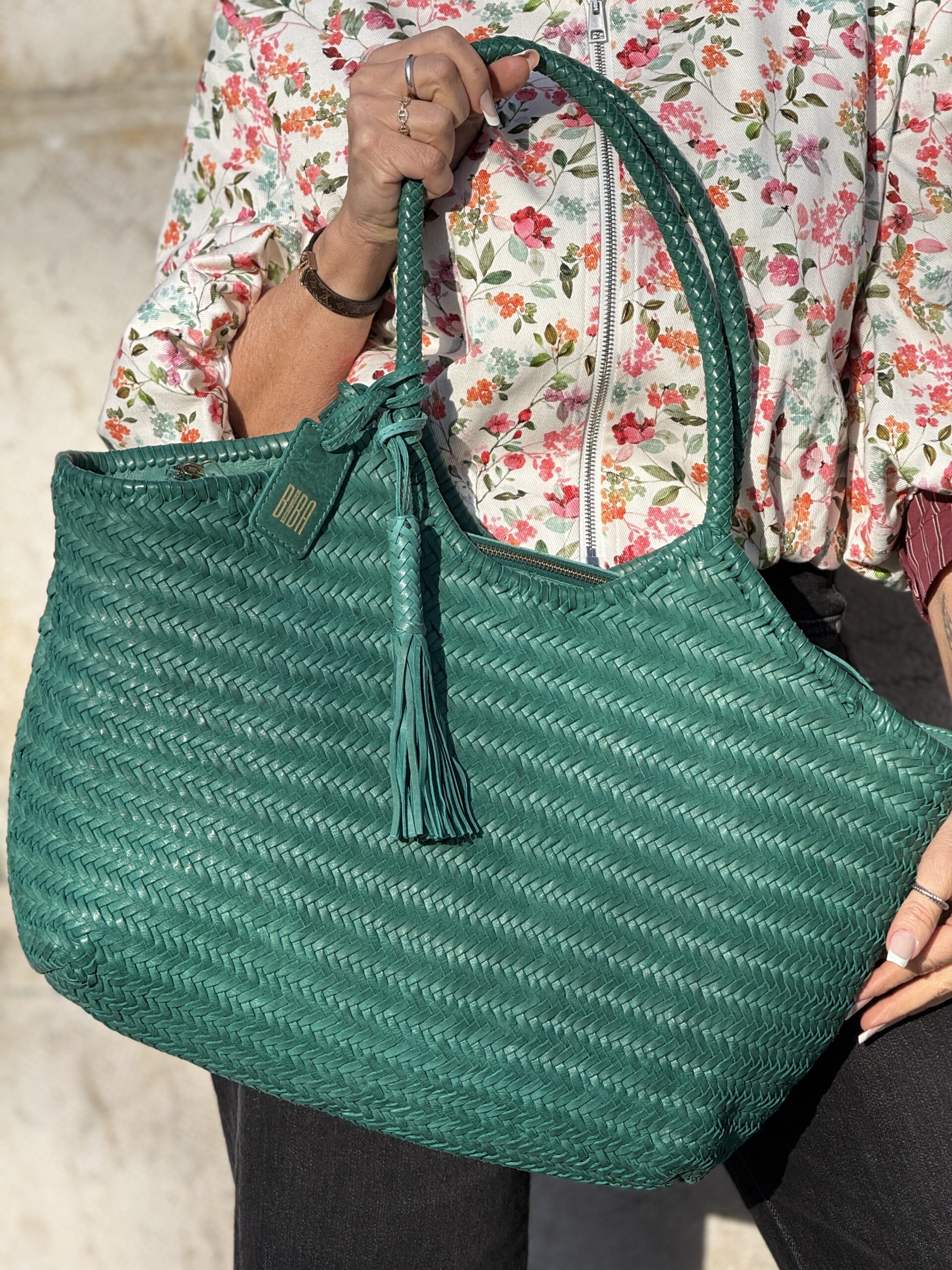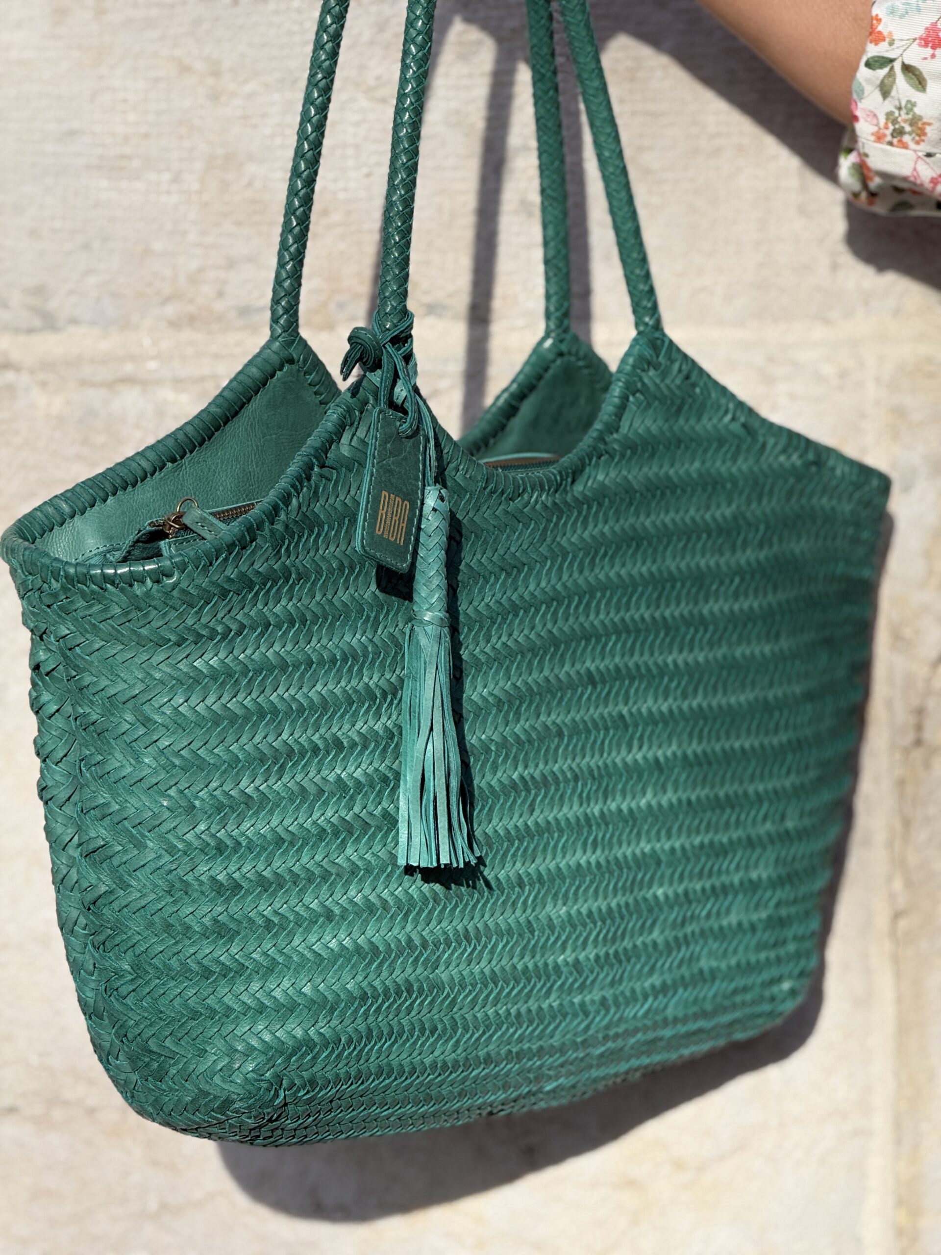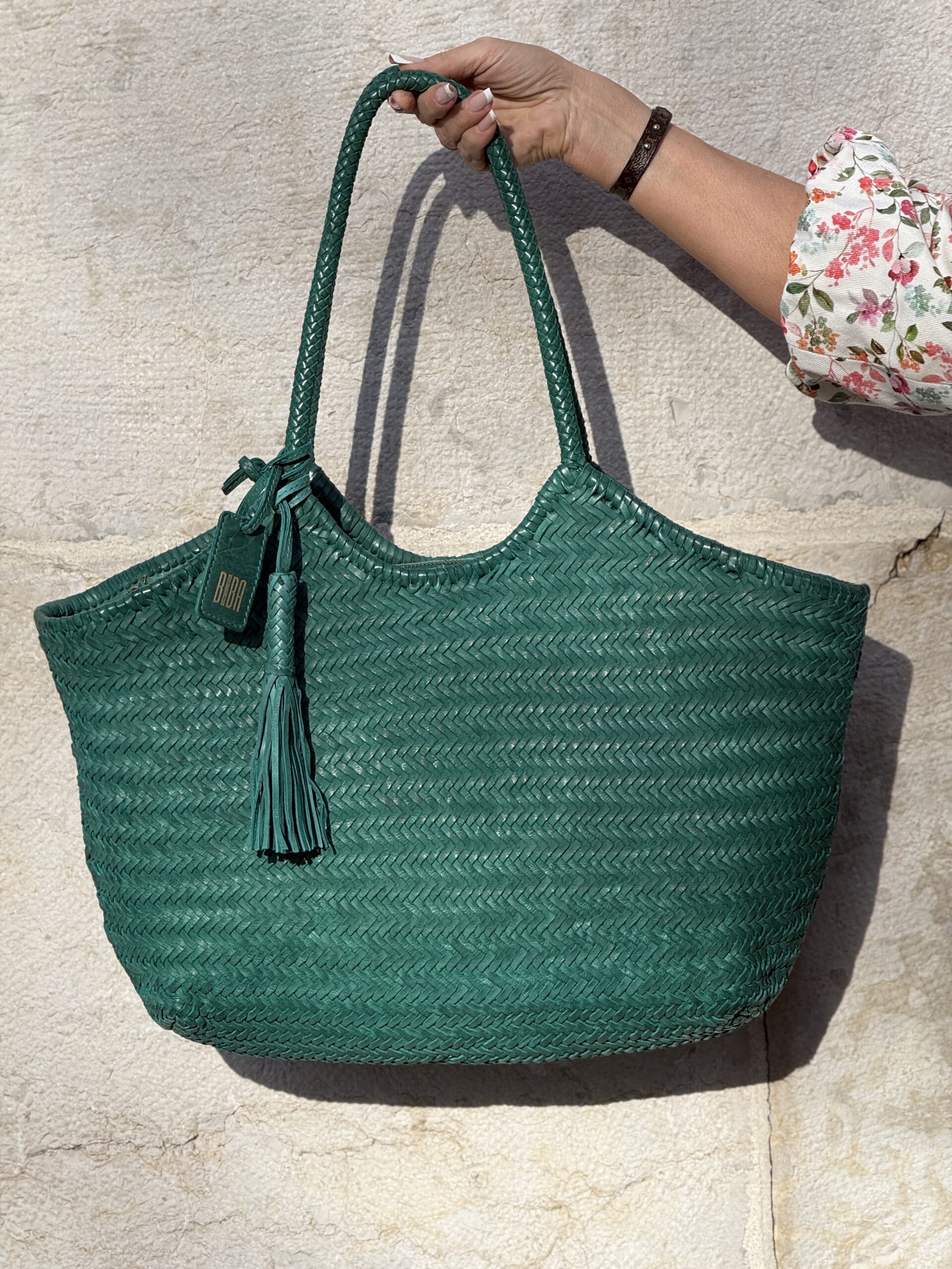 Ce sac tressée est l’allié parfait des silhouettes solaires : chic sans effort, naturel mais terriblement désirable. Il apporte instantanément une allure bohème raffinée.
