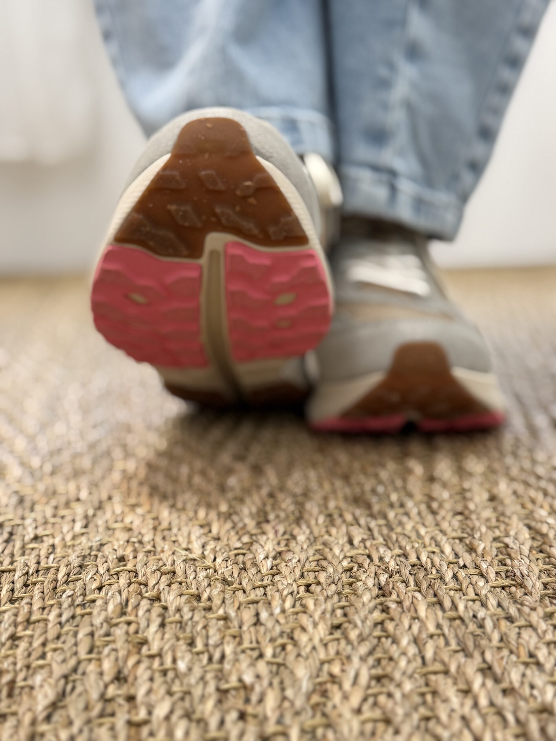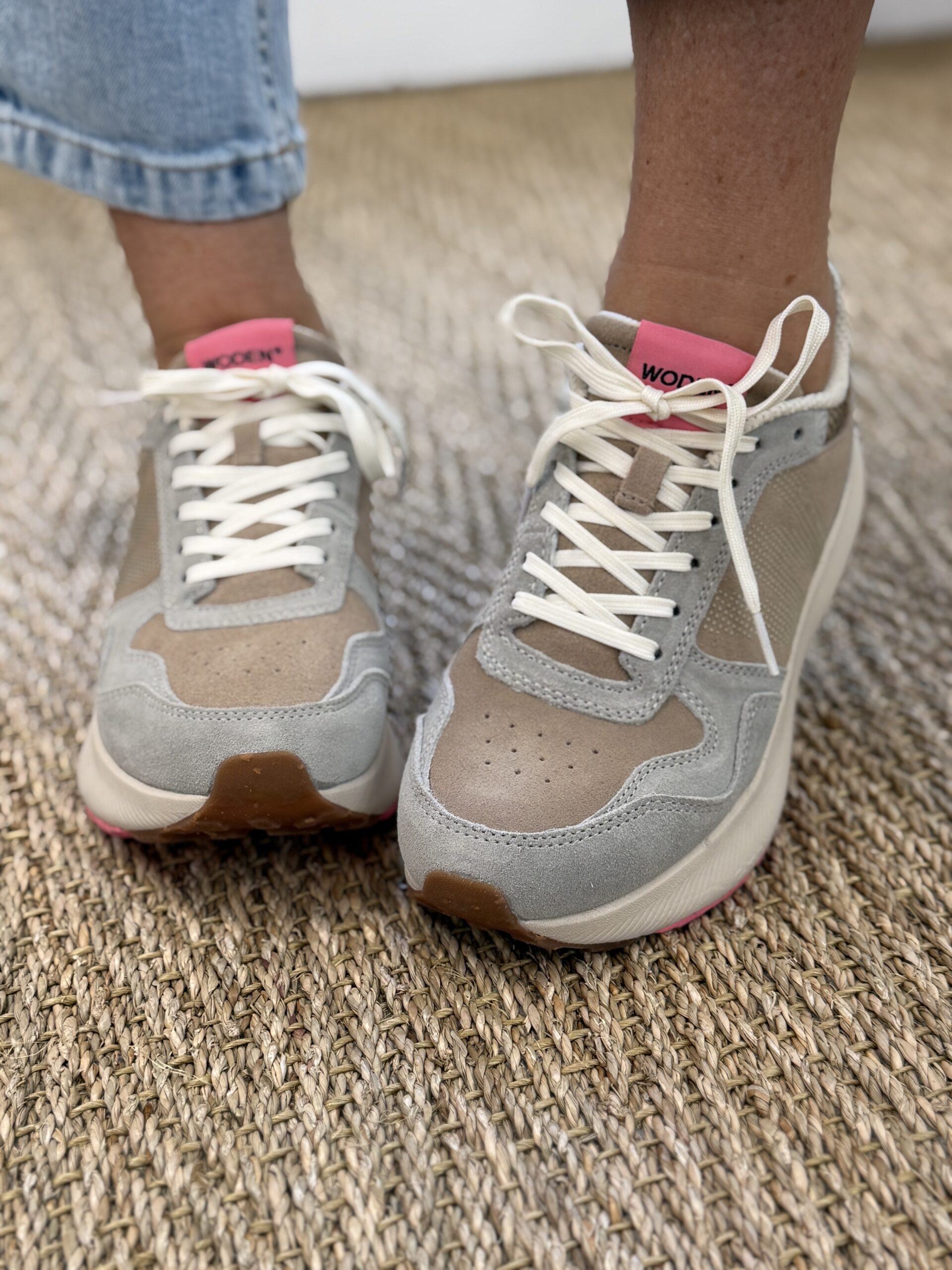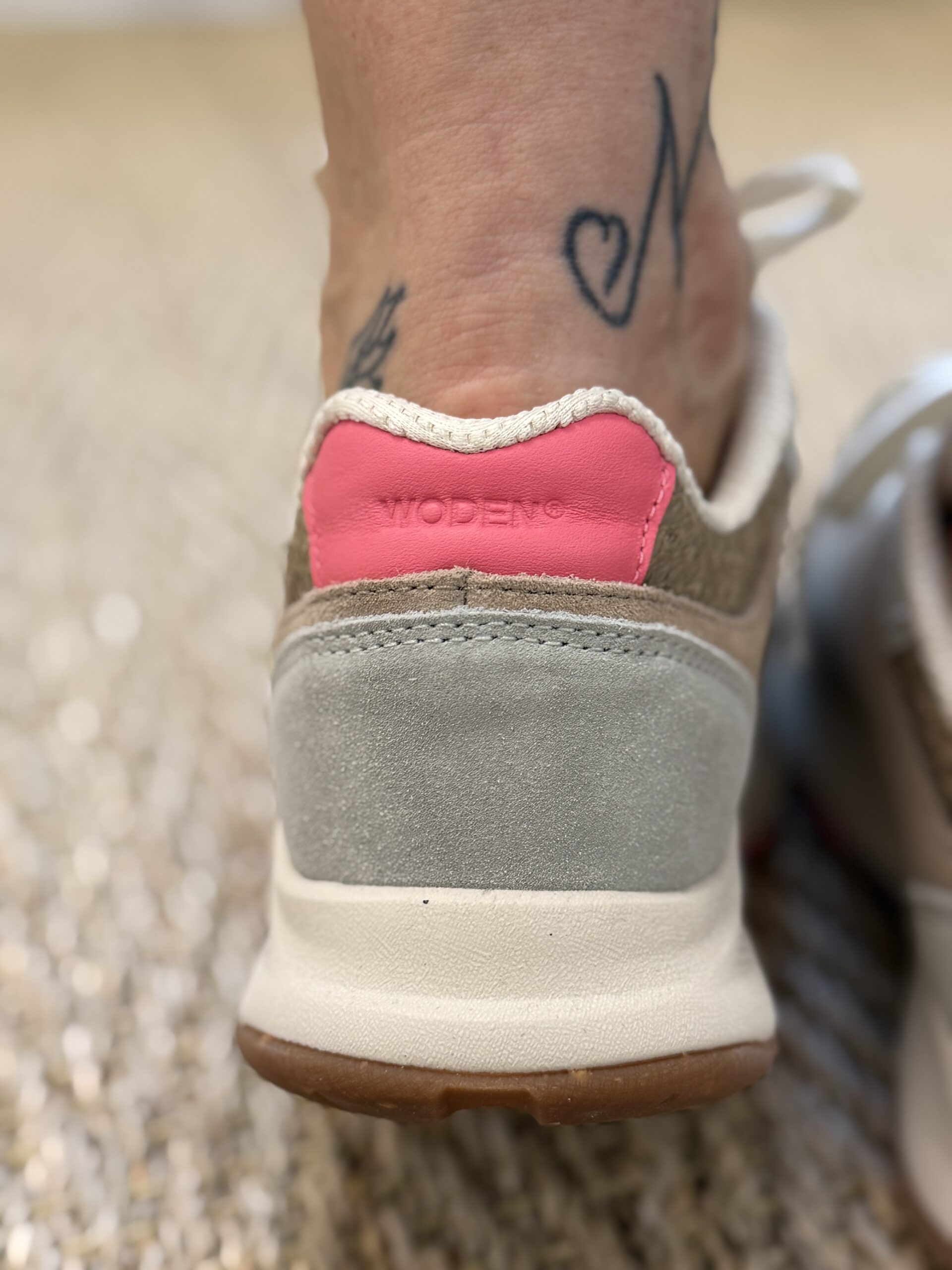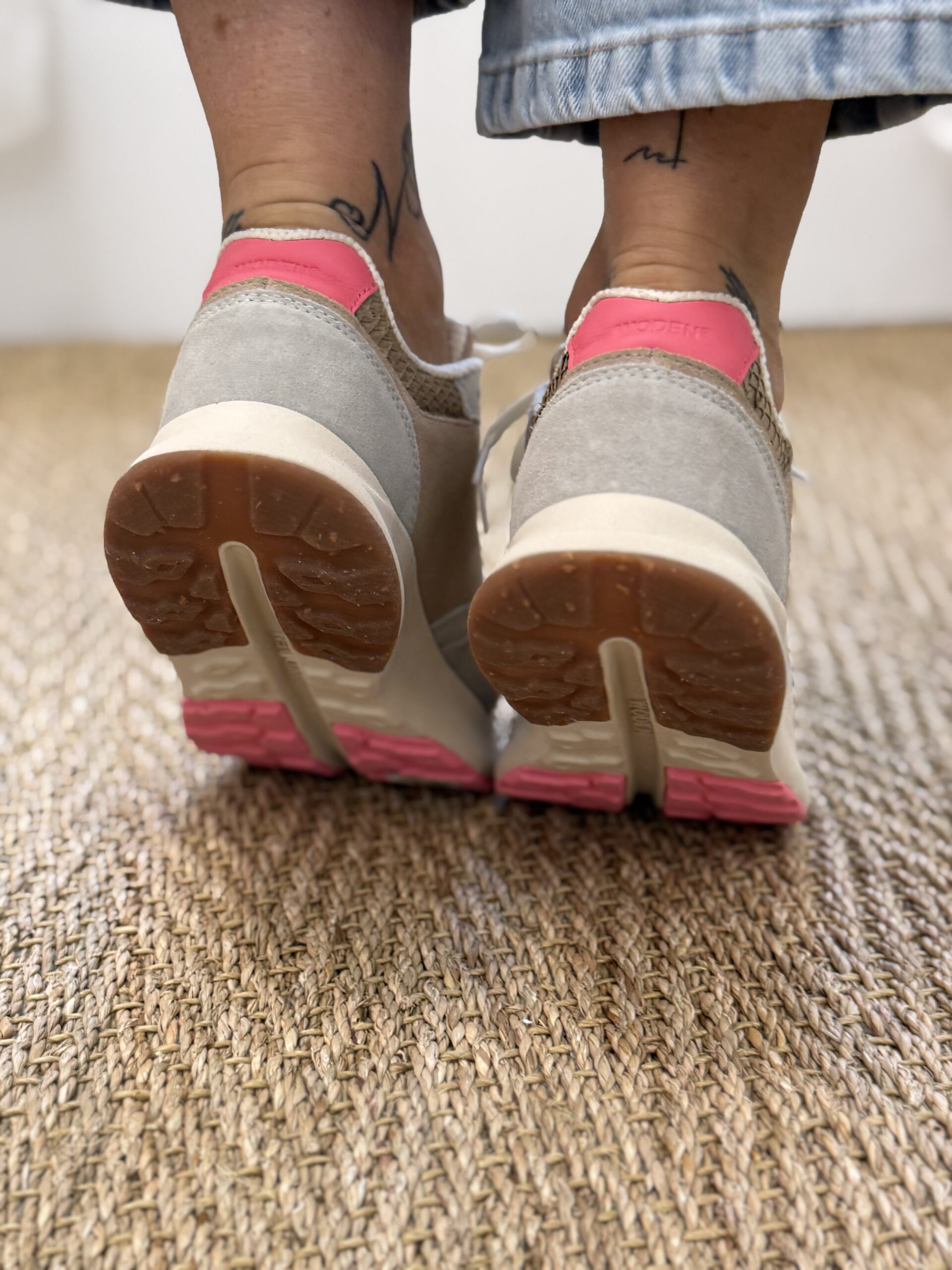 La basket « Mathilde » Runner allie un design sportif à des lignes épurées et à des matériaux éco-responsables. Son empeigne associe du daim certifié et du cuir de poisson recyclé, créant un style moderne à la texture subtile. Sa semelle légère assure un confort optimal tout au long de la journée