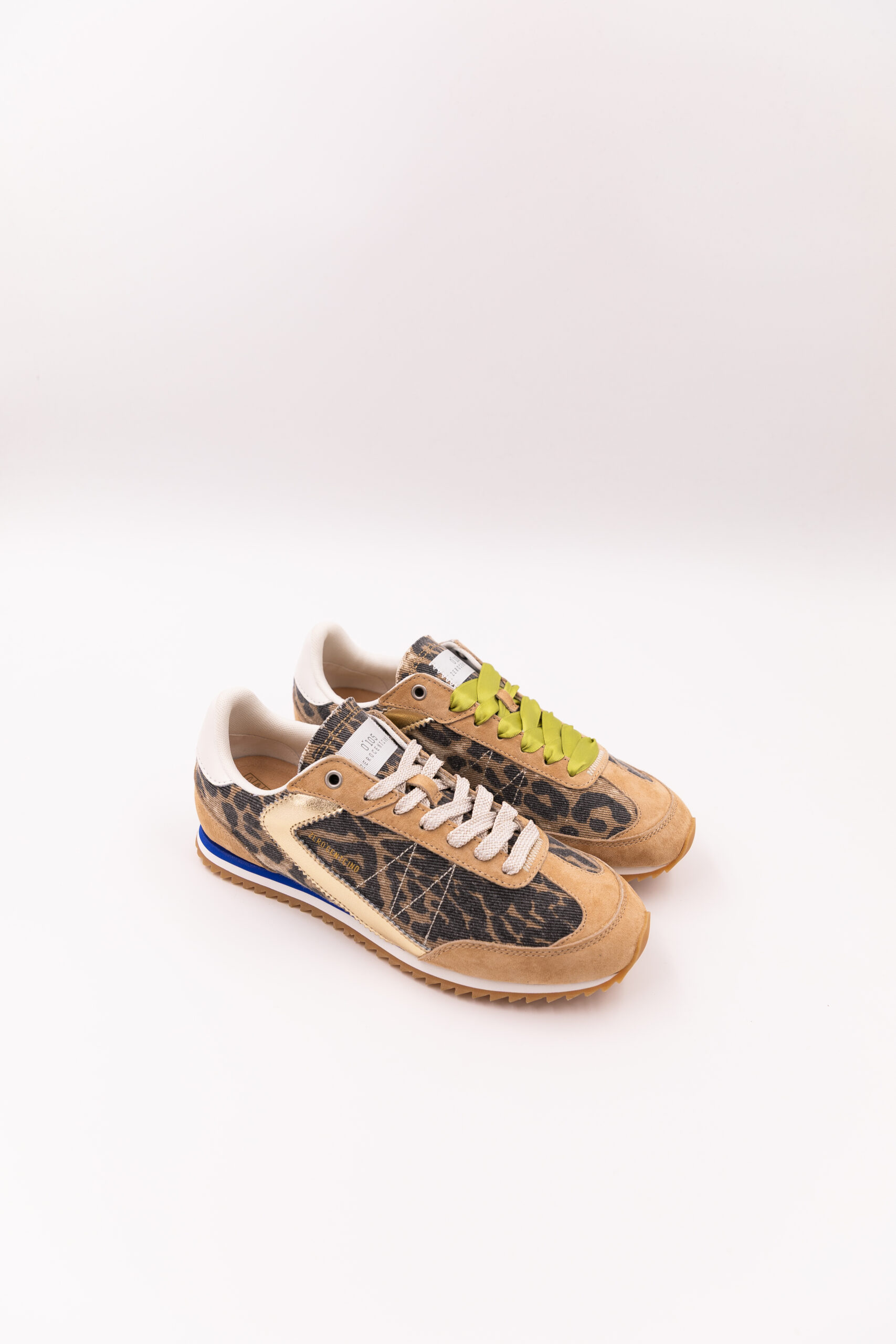 Avec son caractère affirmé et son esprit citadin, la basket « Lina » revisite le motif léopard dans une version ultra-moderne. La texture du jean imprimé apporte une dimension audacieuse et pleine de relief, sublimée par des empiècements en cuir suédé camel qui structurent la silhouette. Les touches métalliques dorées et les surpiqures contrastées insufflent une énergie contemporaine, renforcée par la semelle crantée signature, à la fois légère et confortable. Une sneaker pensée pour celles qui aiment affirmer leur style sans renoncer à la facilité au quotidien.