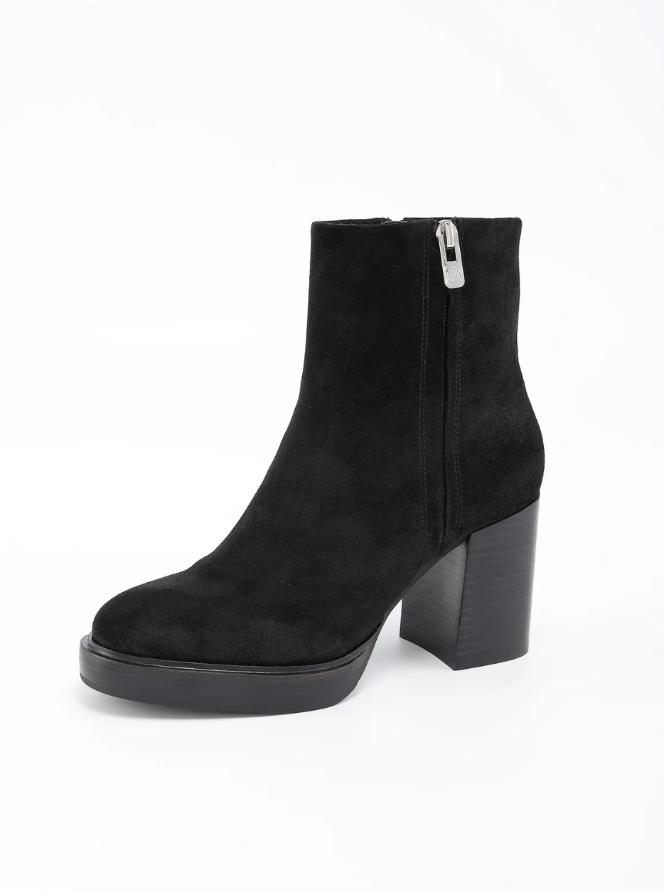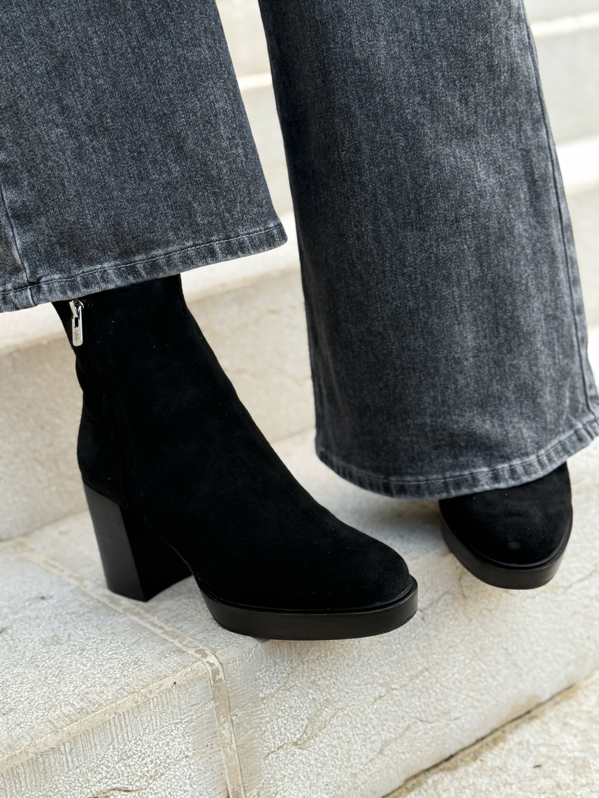 Alliez confort et élégance avec ces bottines « noir ». Leur ligne sobre et leur talon bloc en font une paire intemporelle, facile à porter au quotidien. Grâce a leur semelle plateforme, et la fermeture zippée, elles offrent un excellent maintien tout en affinant la silhouette.