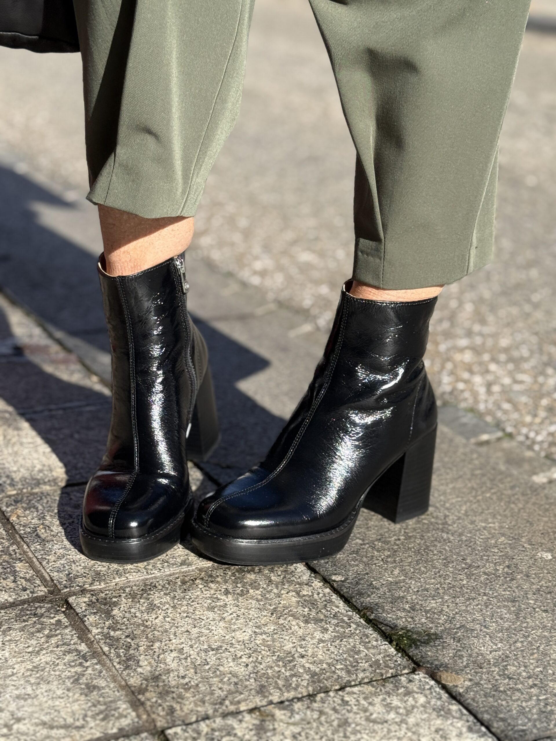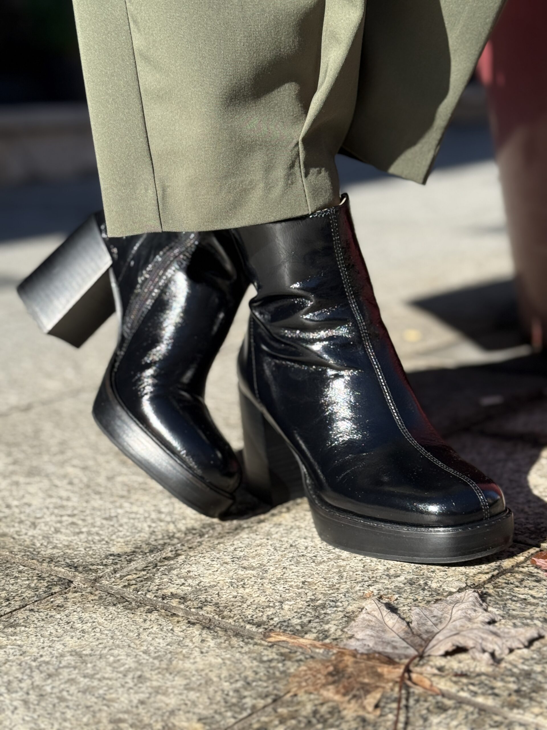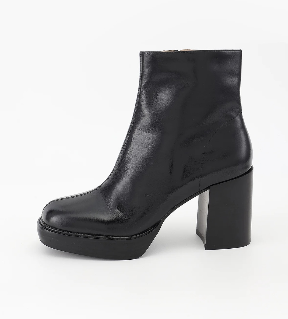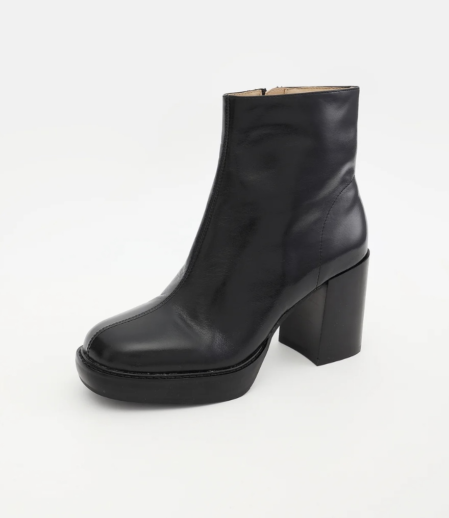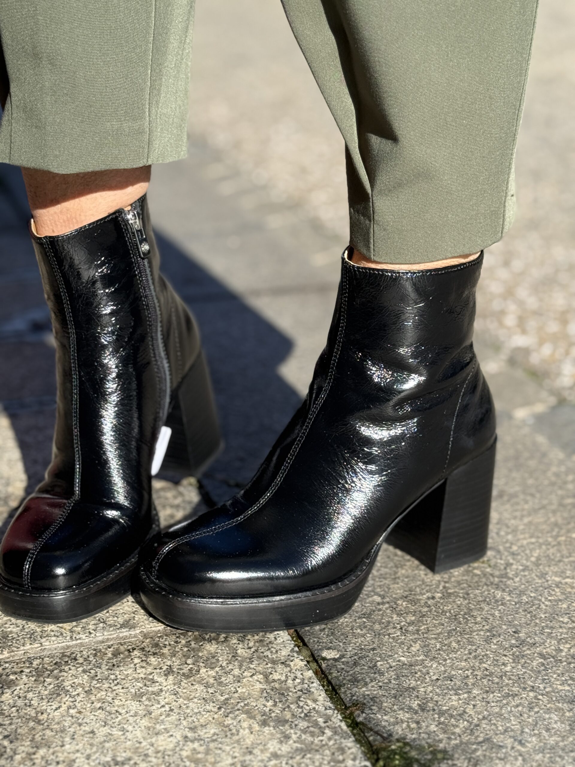Inspirées du style seventies, ces bottines en cuir « noir » combinent élégance rétro et confort moderne. Une paire audacieuse et féminine, parfaite pour l’automne et l’hiver.