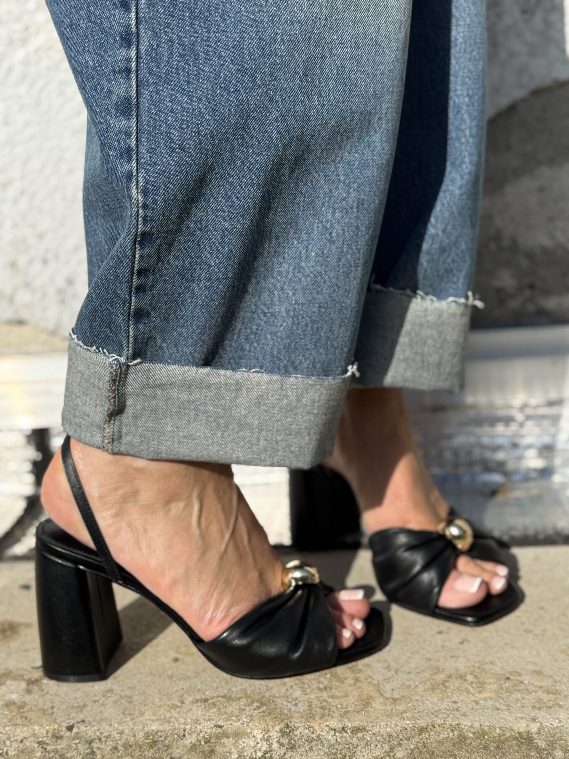 Sandales noires à talon bijou doré MELADI STEVE MADEN
