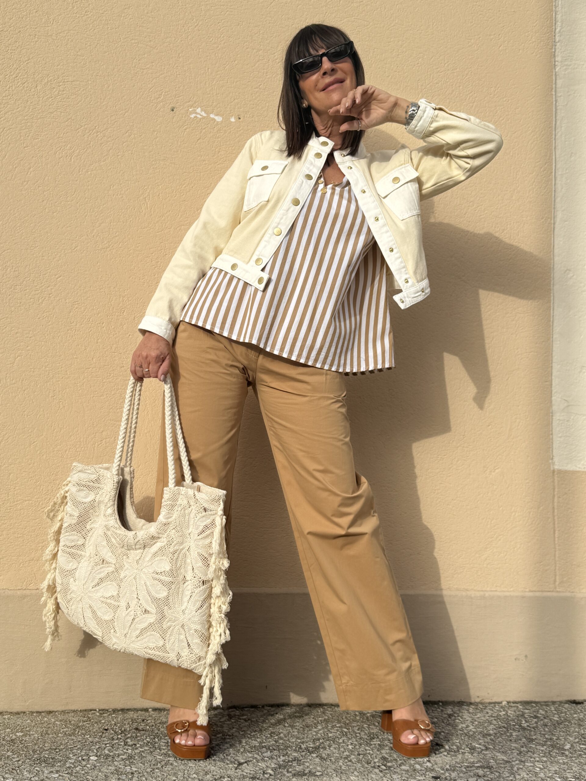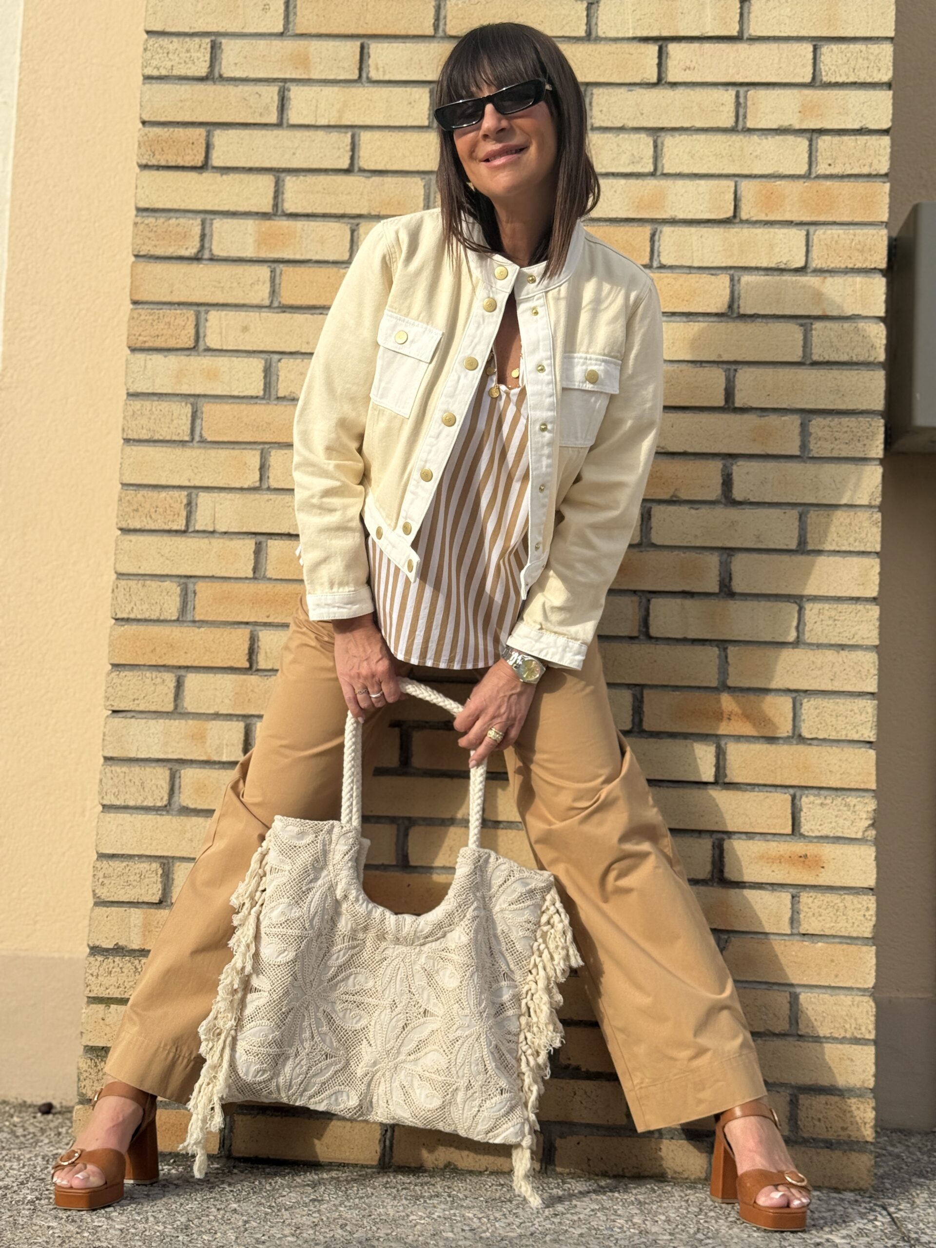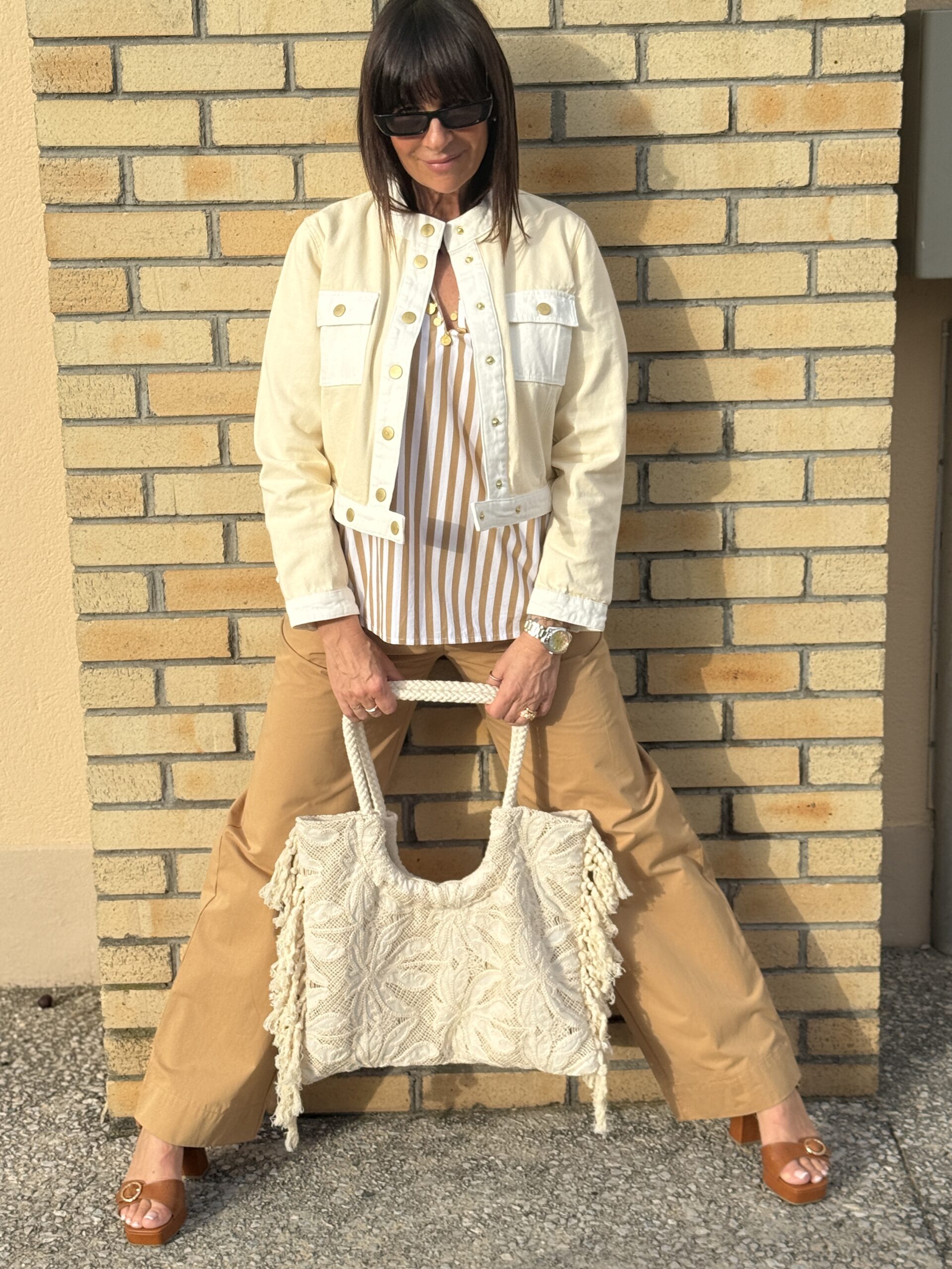 Le sac en dentelle ajoute une note bohème et féminine.