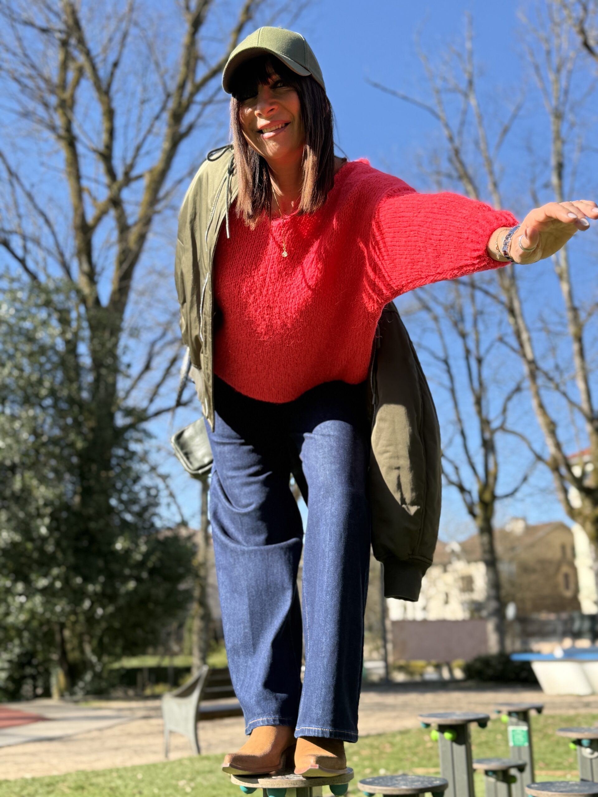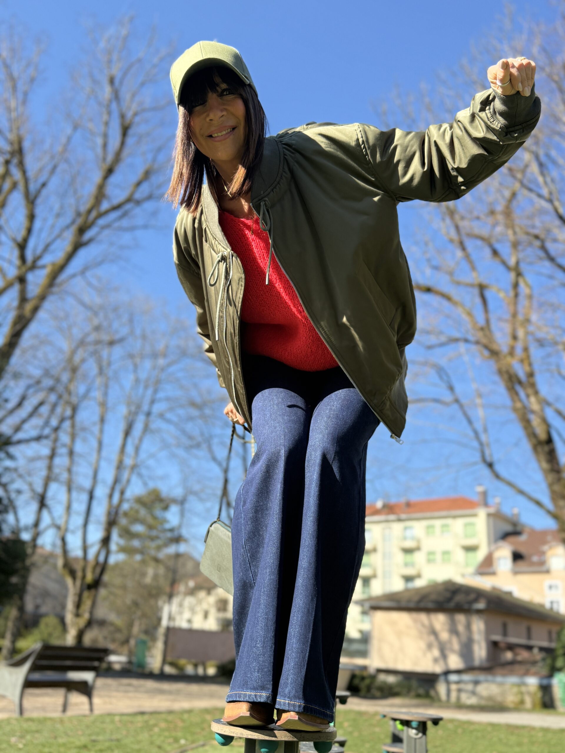 Le bomber et la casquette renforce l’allure casual et dynamique.