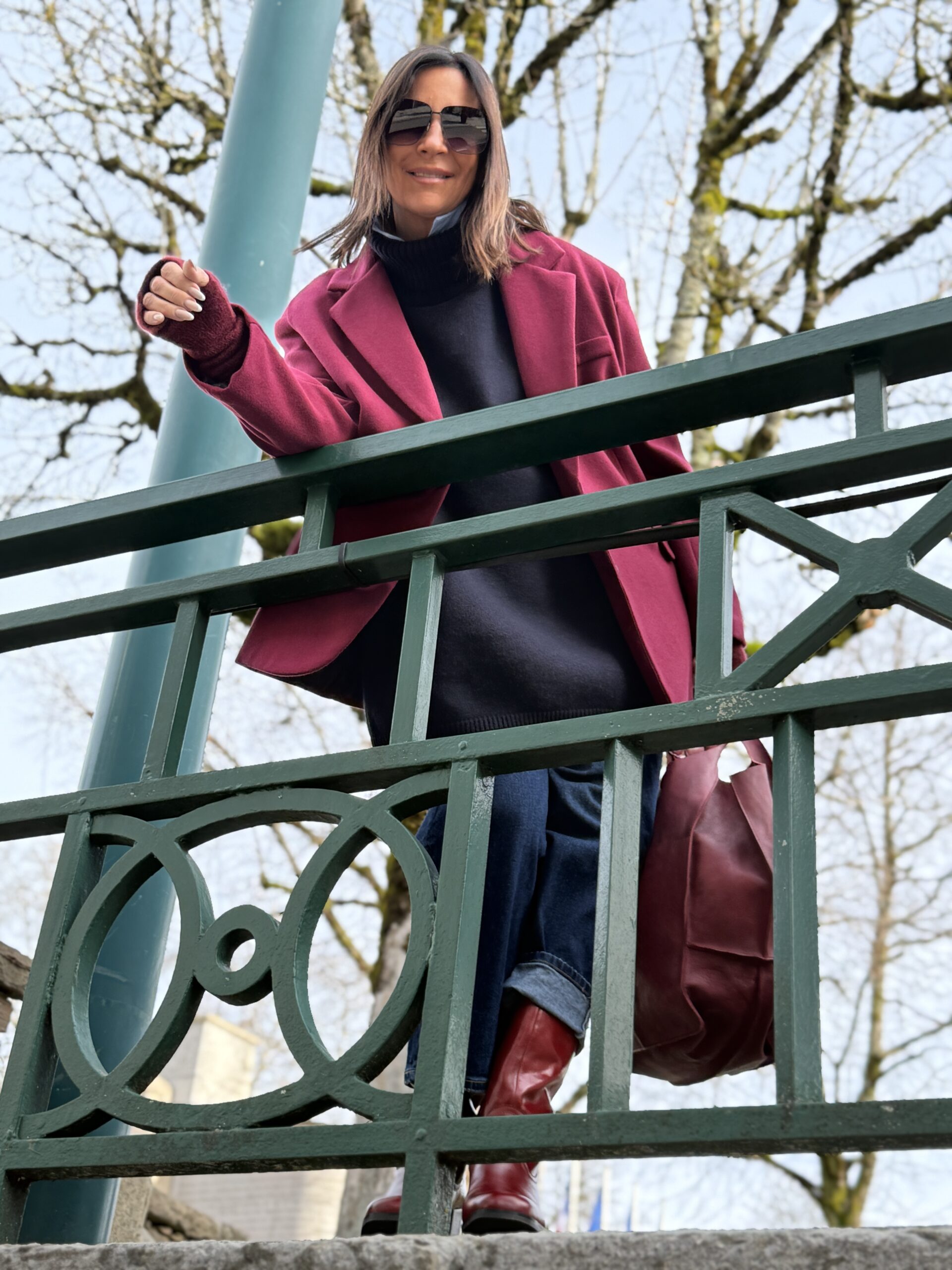 Un manteau structuré, un pull col roulé tout doux, un jean décontracté : le trio idéal pour flâner en ville avec style.