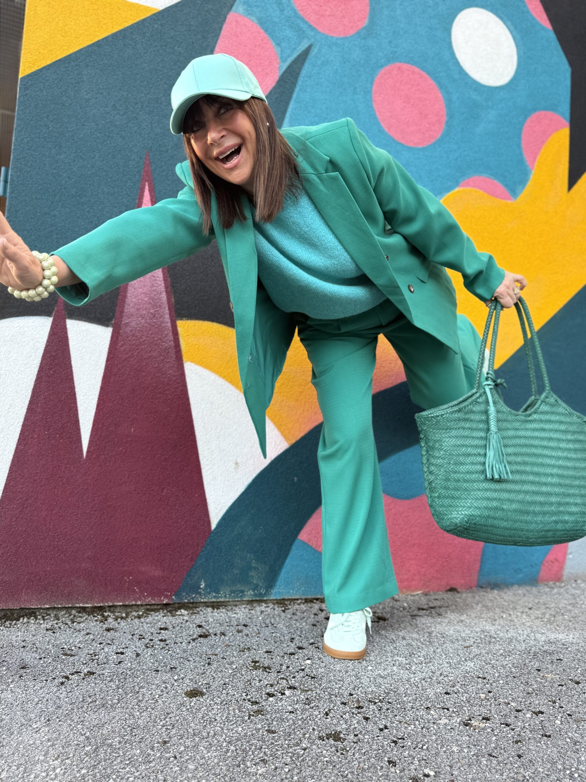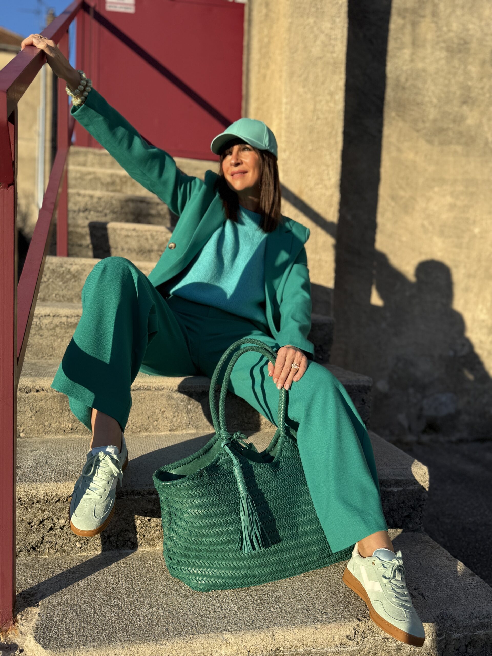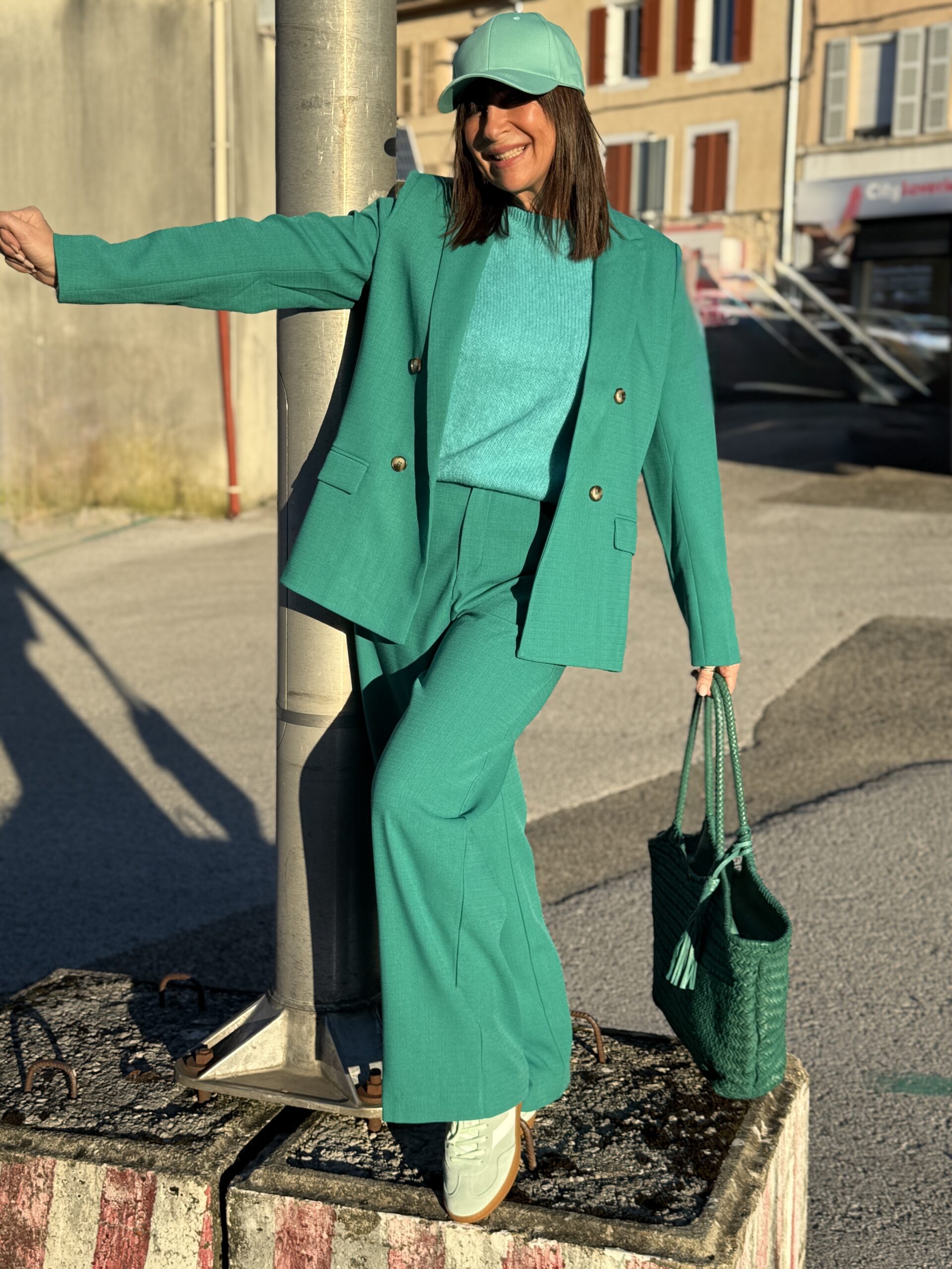 Ce look monochrome vert affirme une silhouette forte, audacieuse et extrêmement contemporaine.