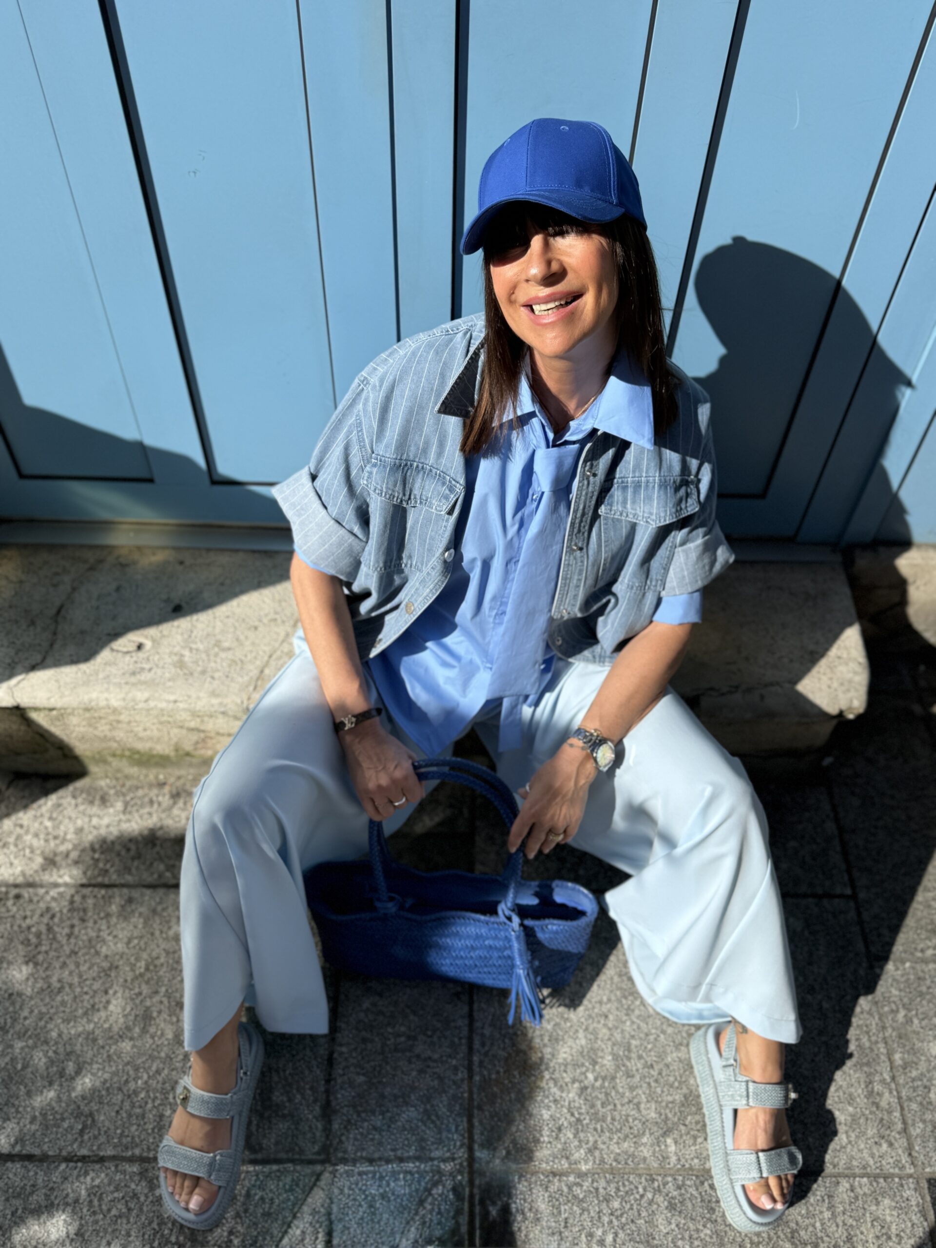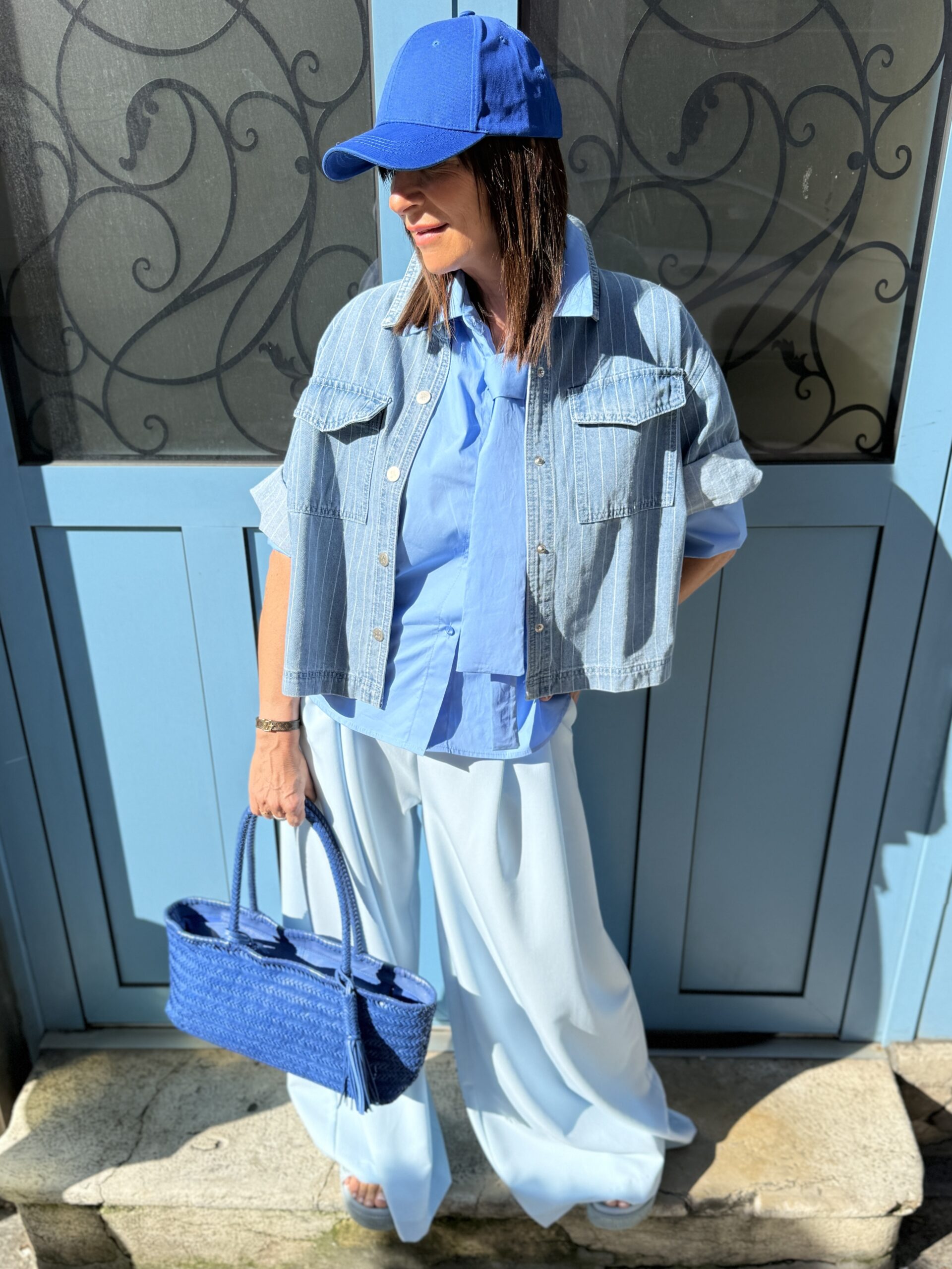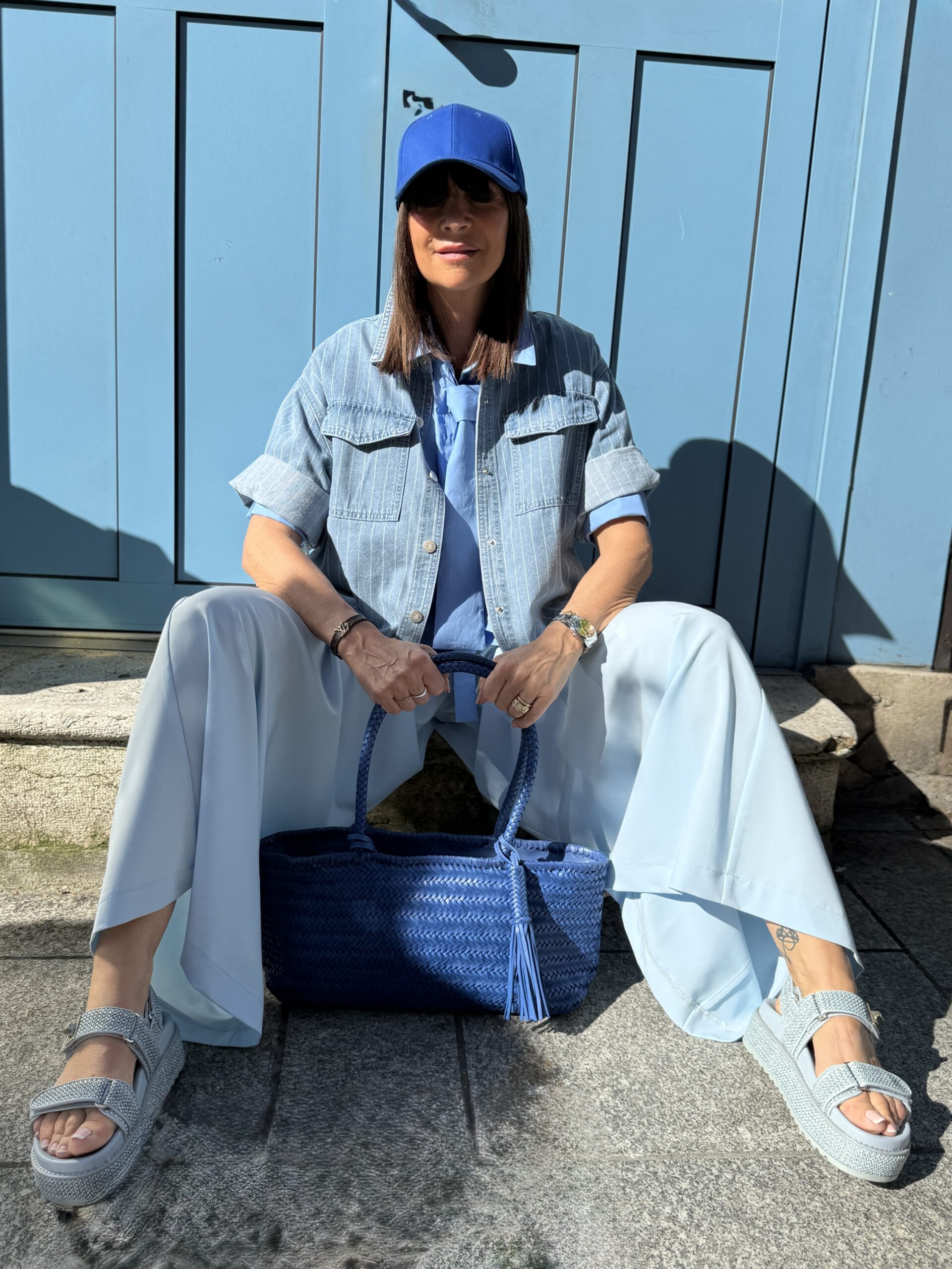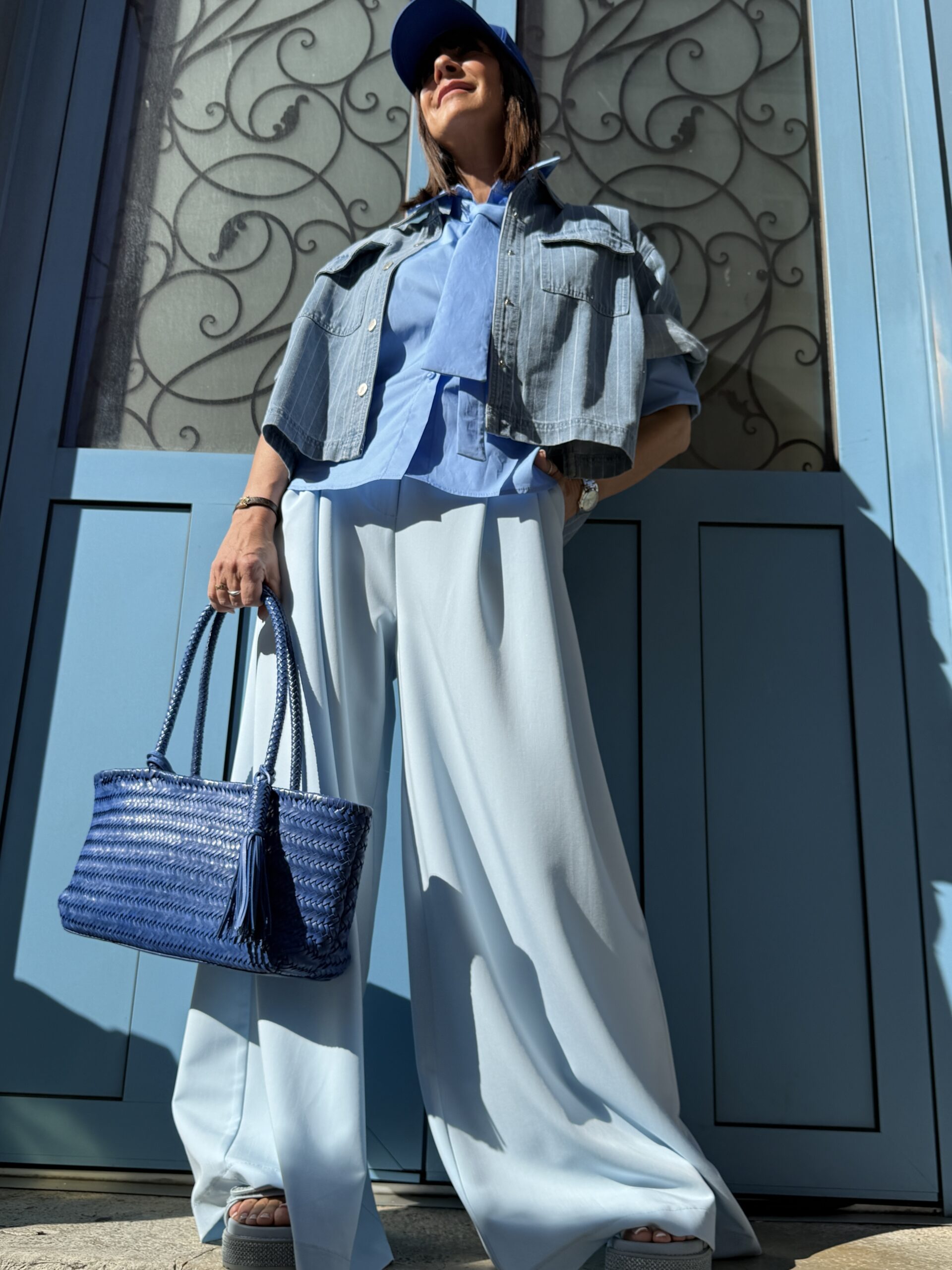 Ce look explore une harmonie de bleu subtile et sophistiqué, à la fois fraîche et moderne.