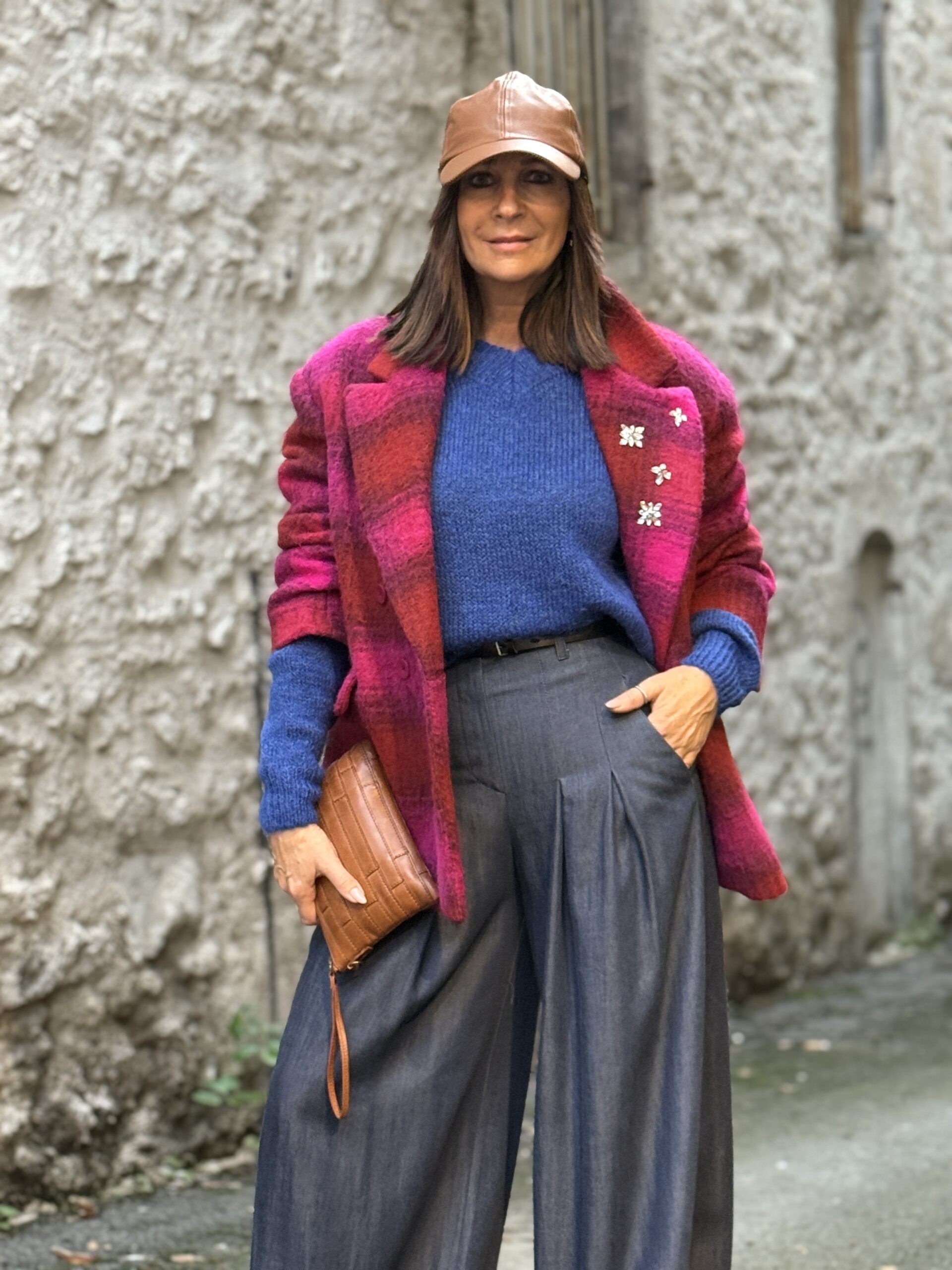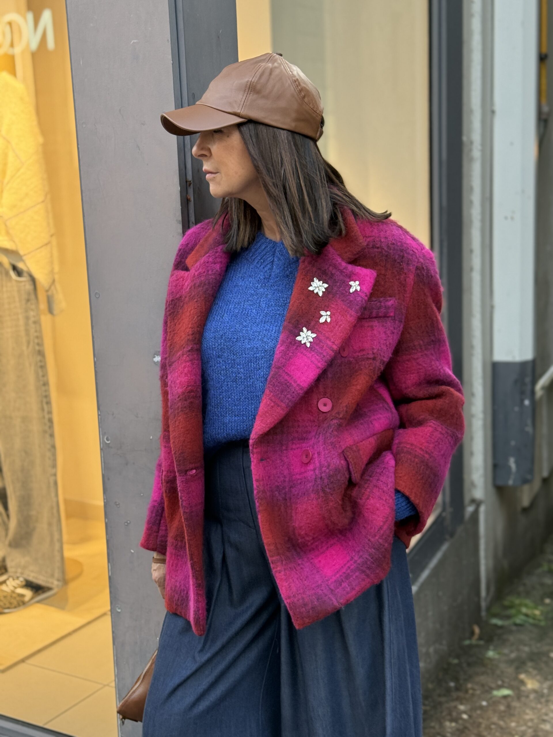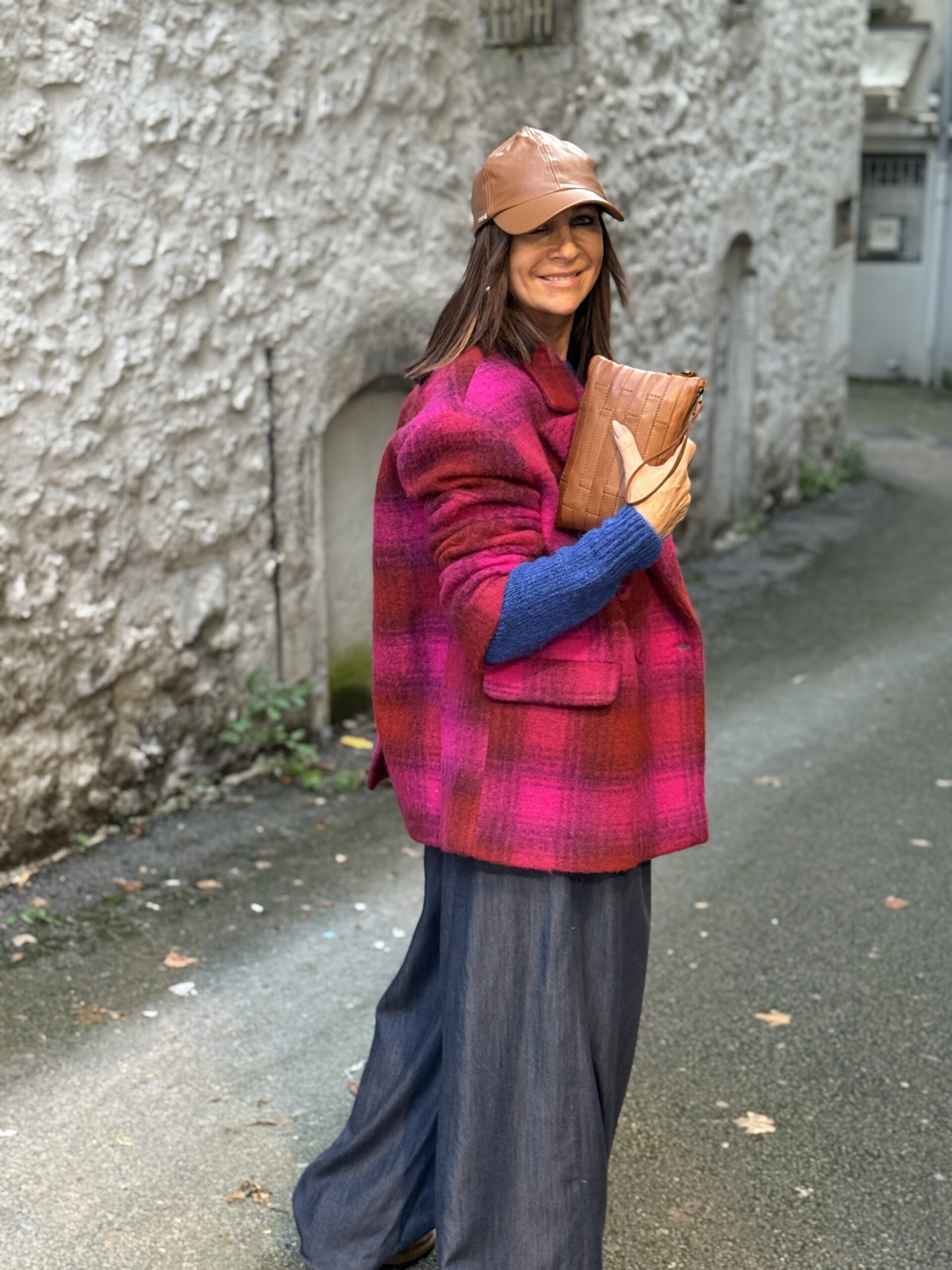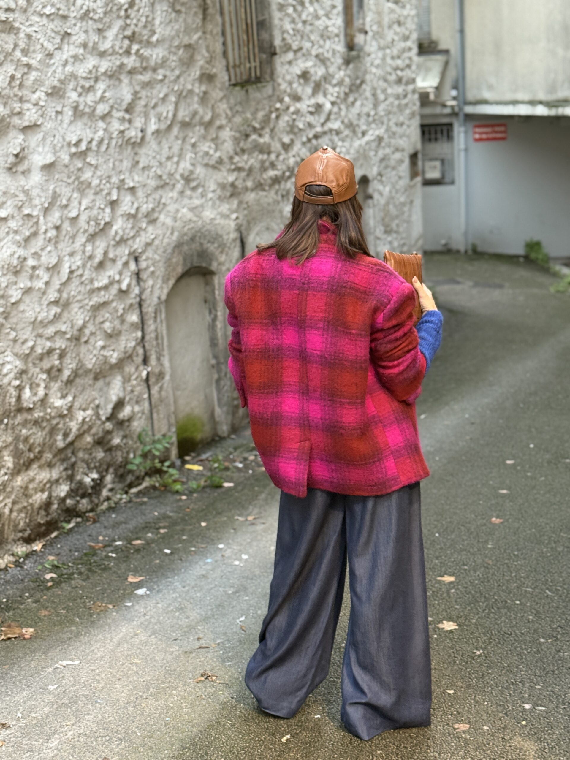 Cette veste vibrante aux tons fuchsia, parfaite pour illuminer les journées grises avec style et audace