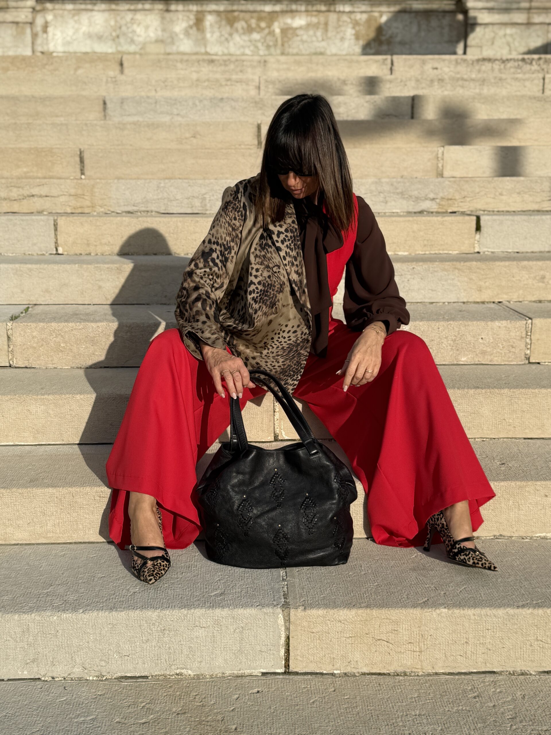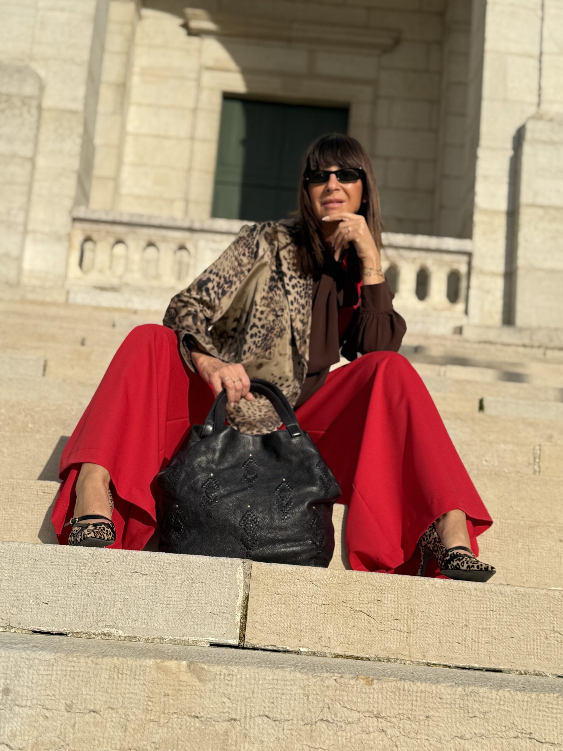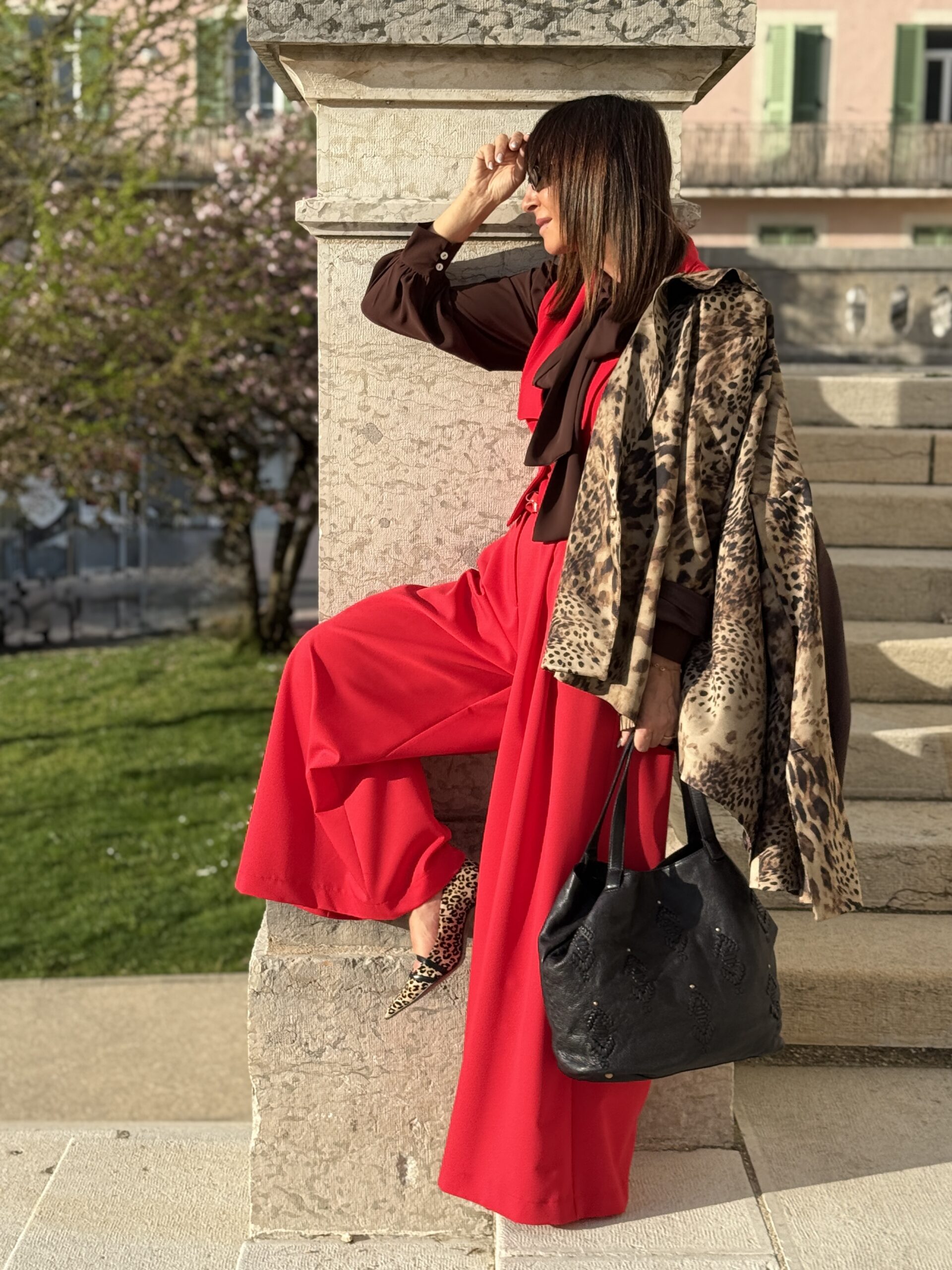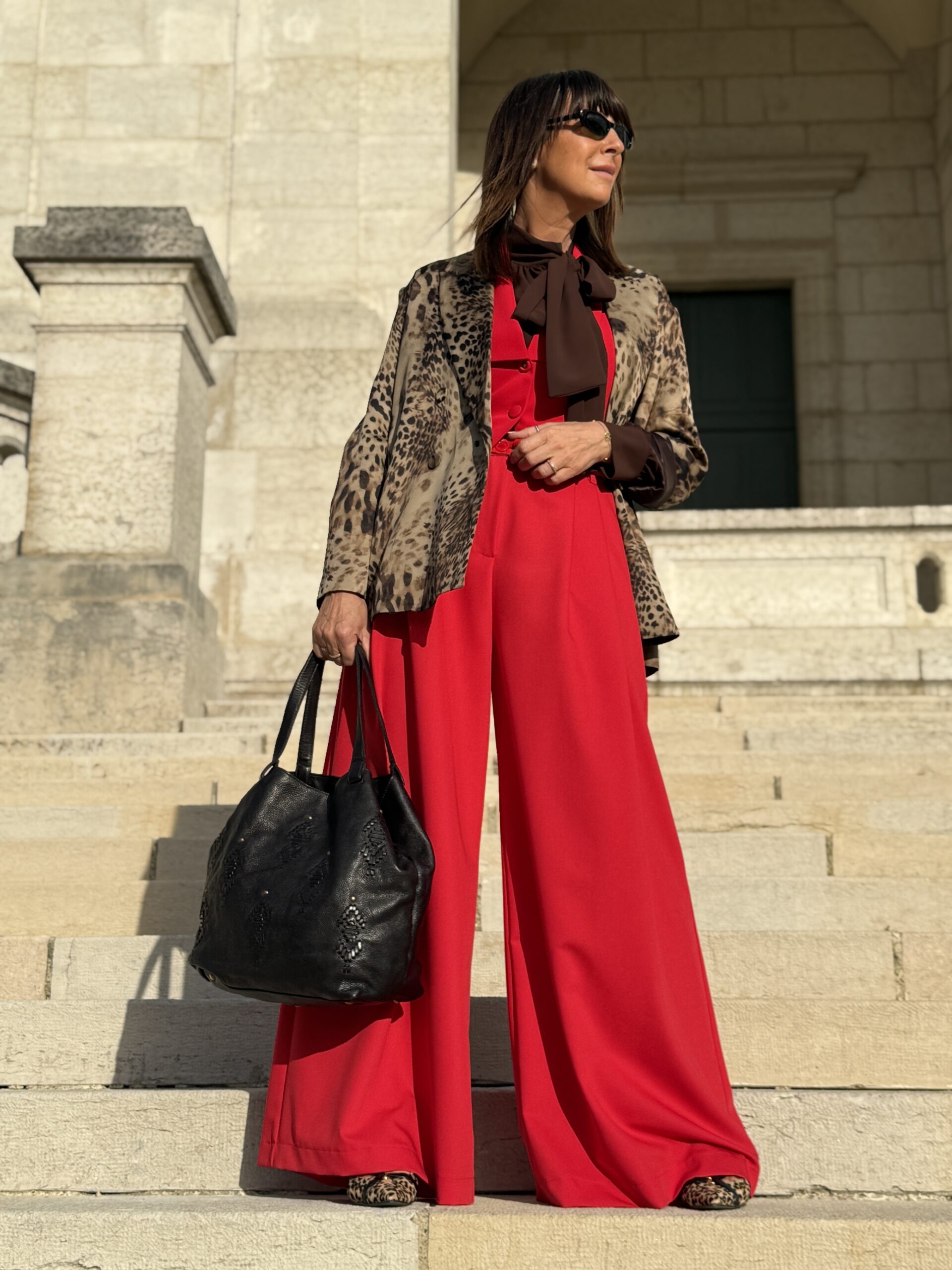 Un mix audacieux entre imprimée, sauvage et rouge intense… Impossible de passer inaperçu.