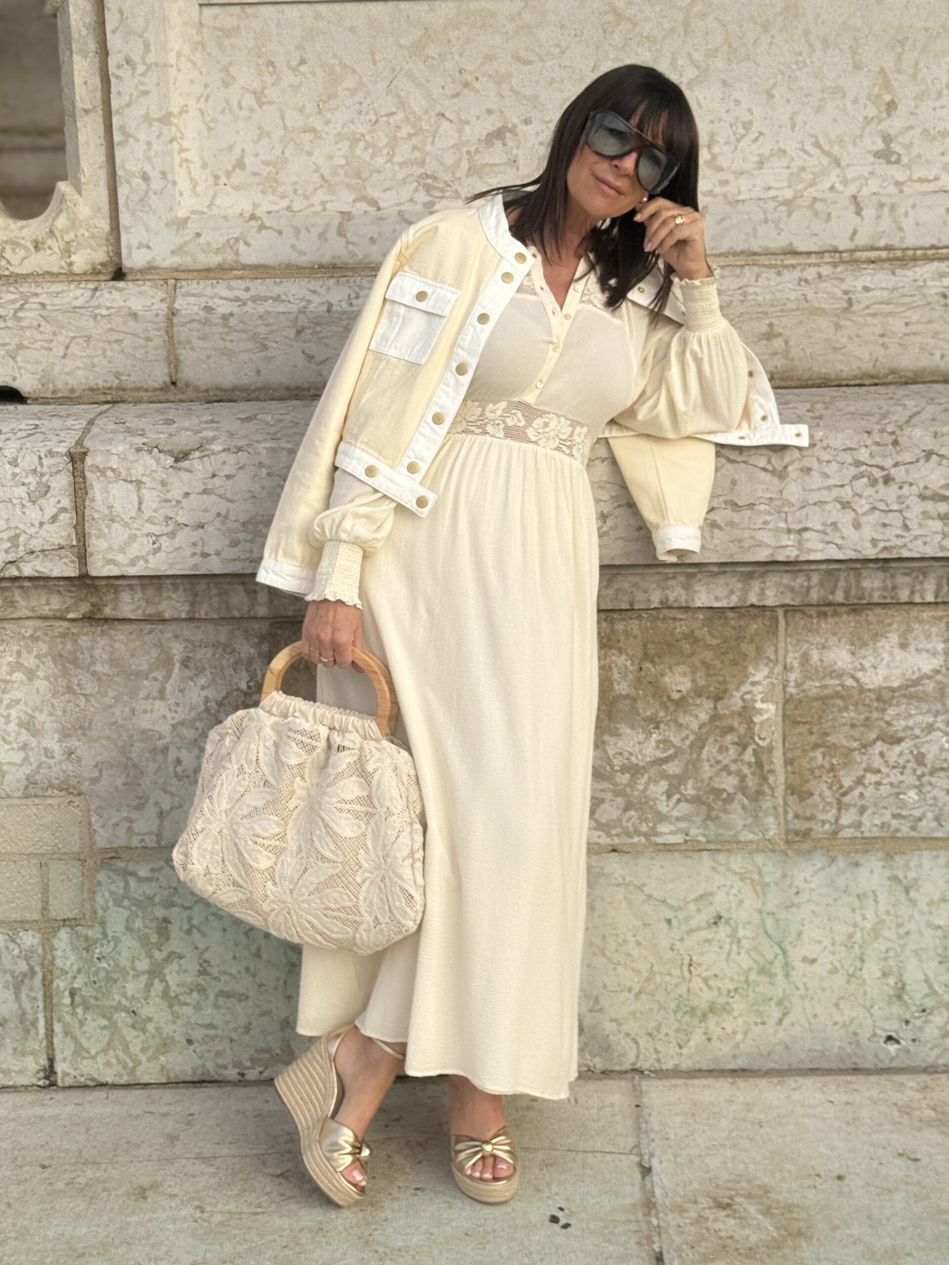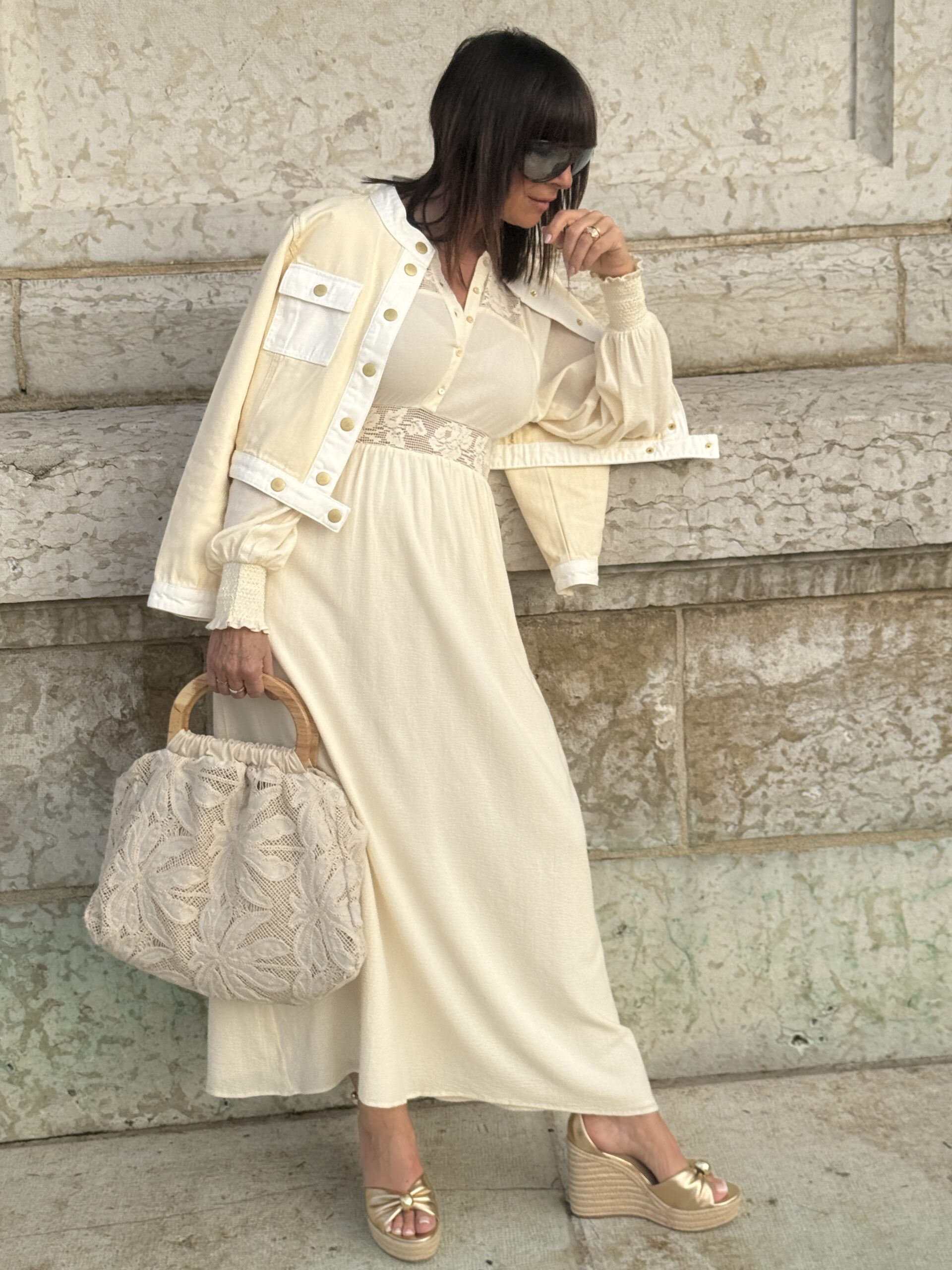 Le sac en dentelle ajoute une touche bohème et raffiné.