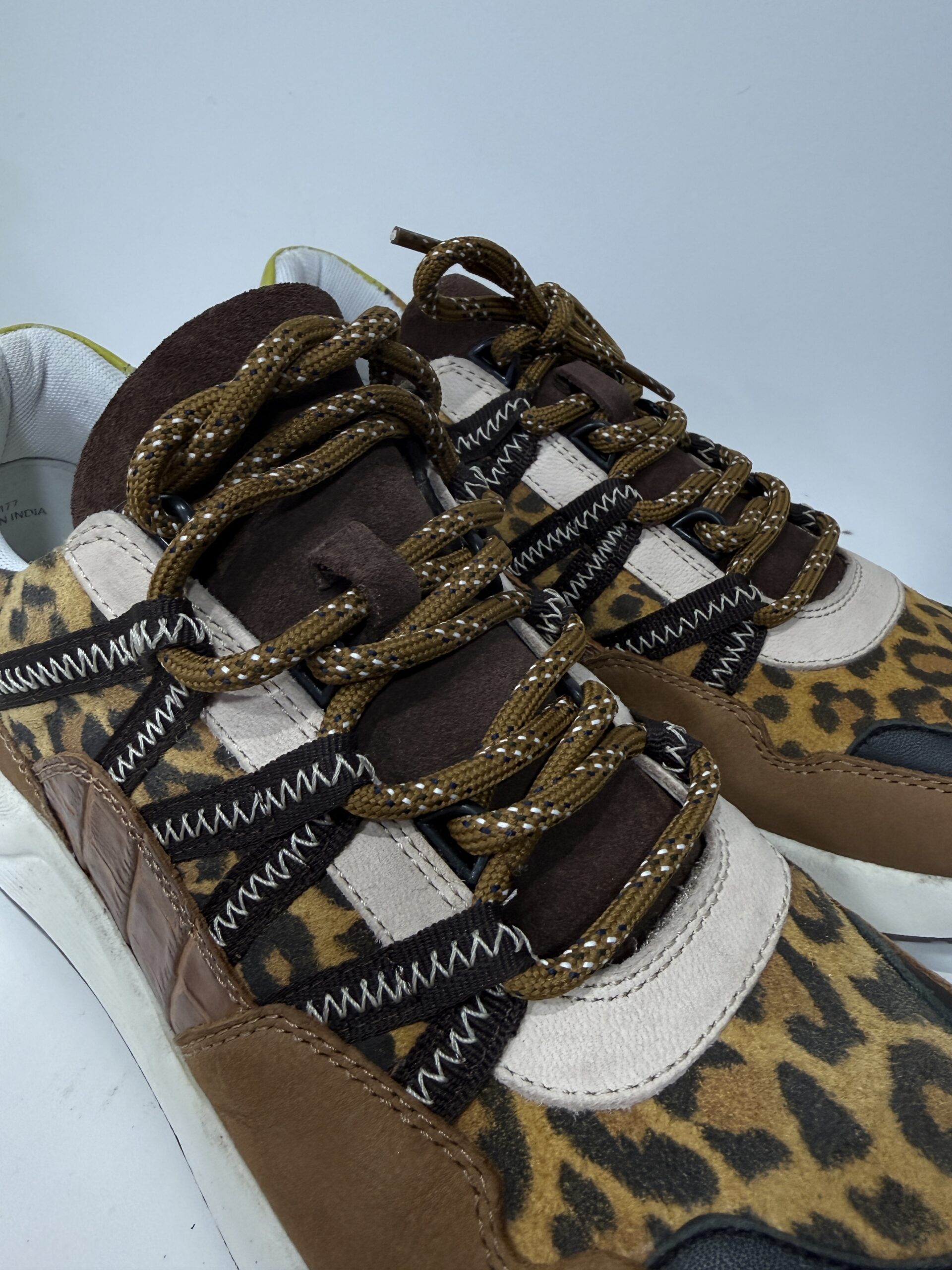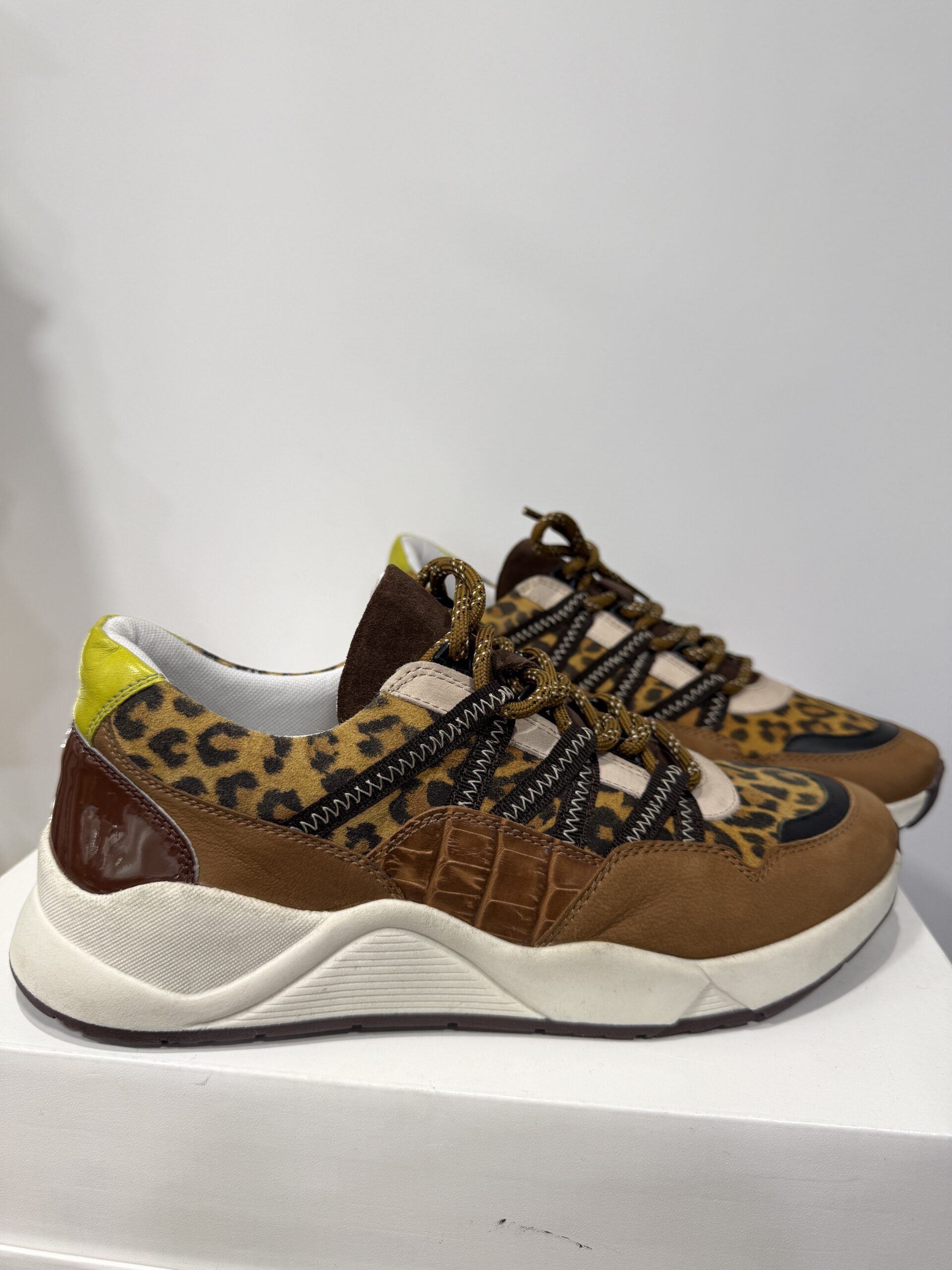Baskets cuir leopard esprit running jaune et marron