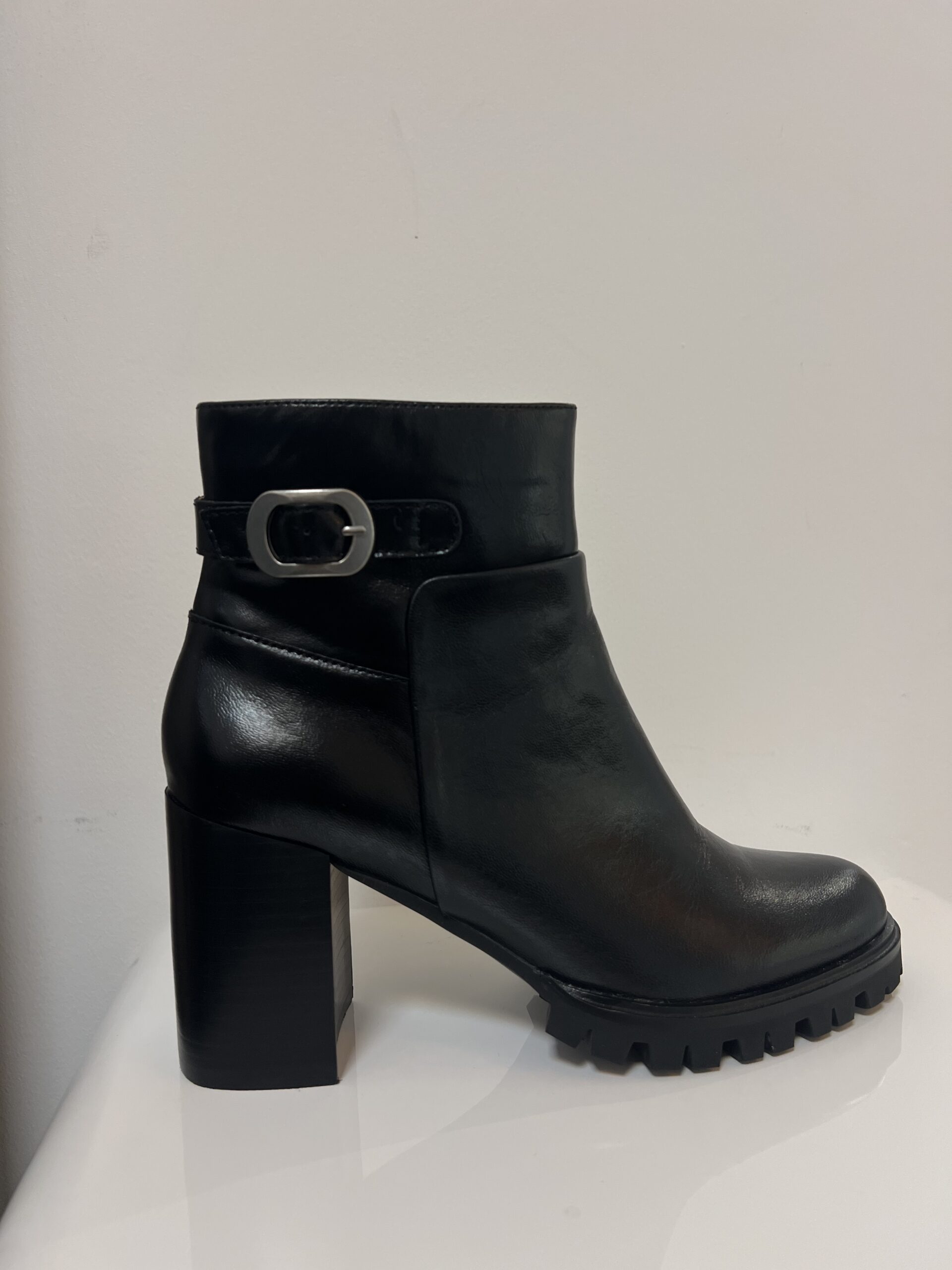 Ces bottines en cuir lisse couleur noir allient féminité, caractère et confort.