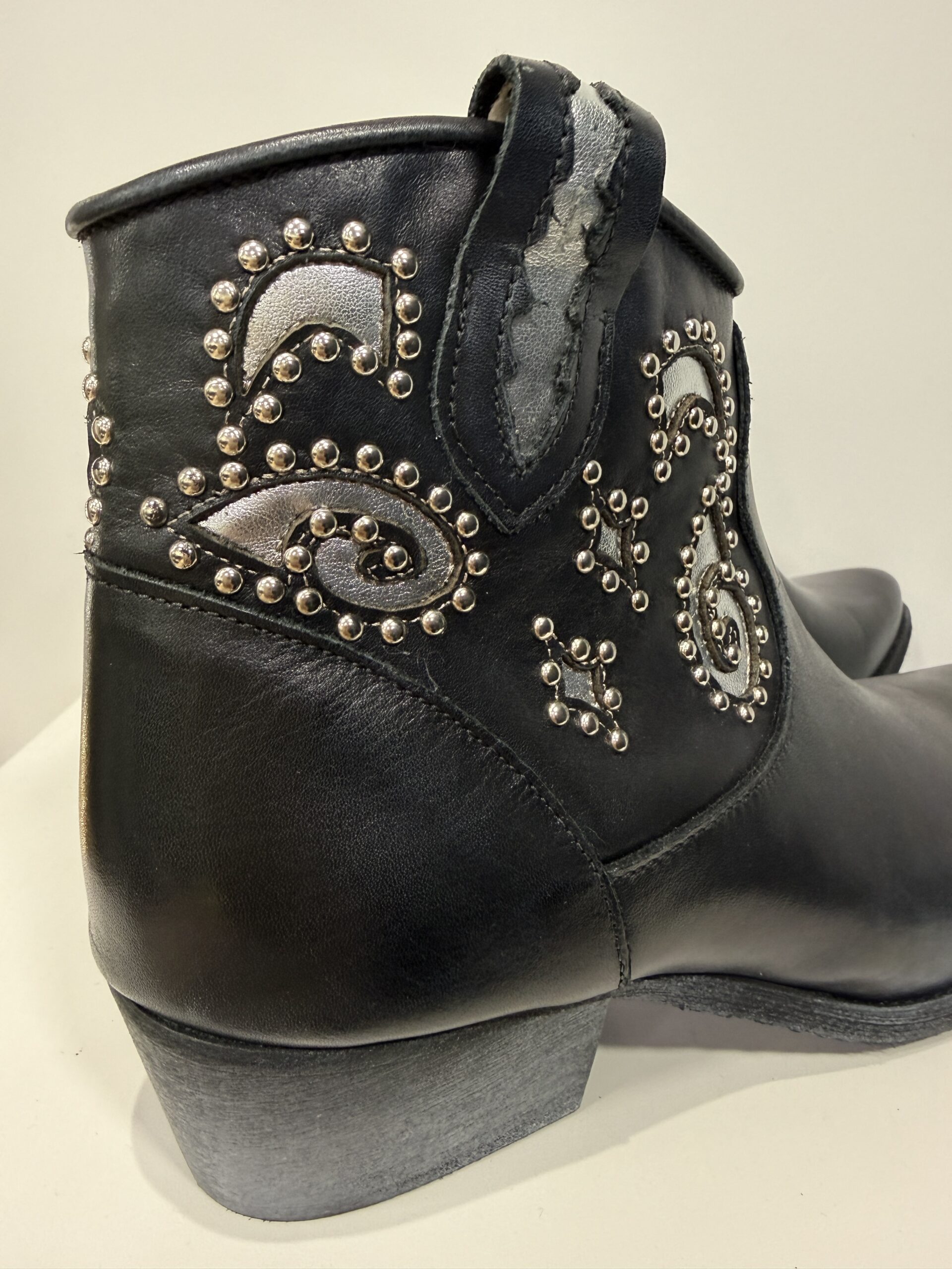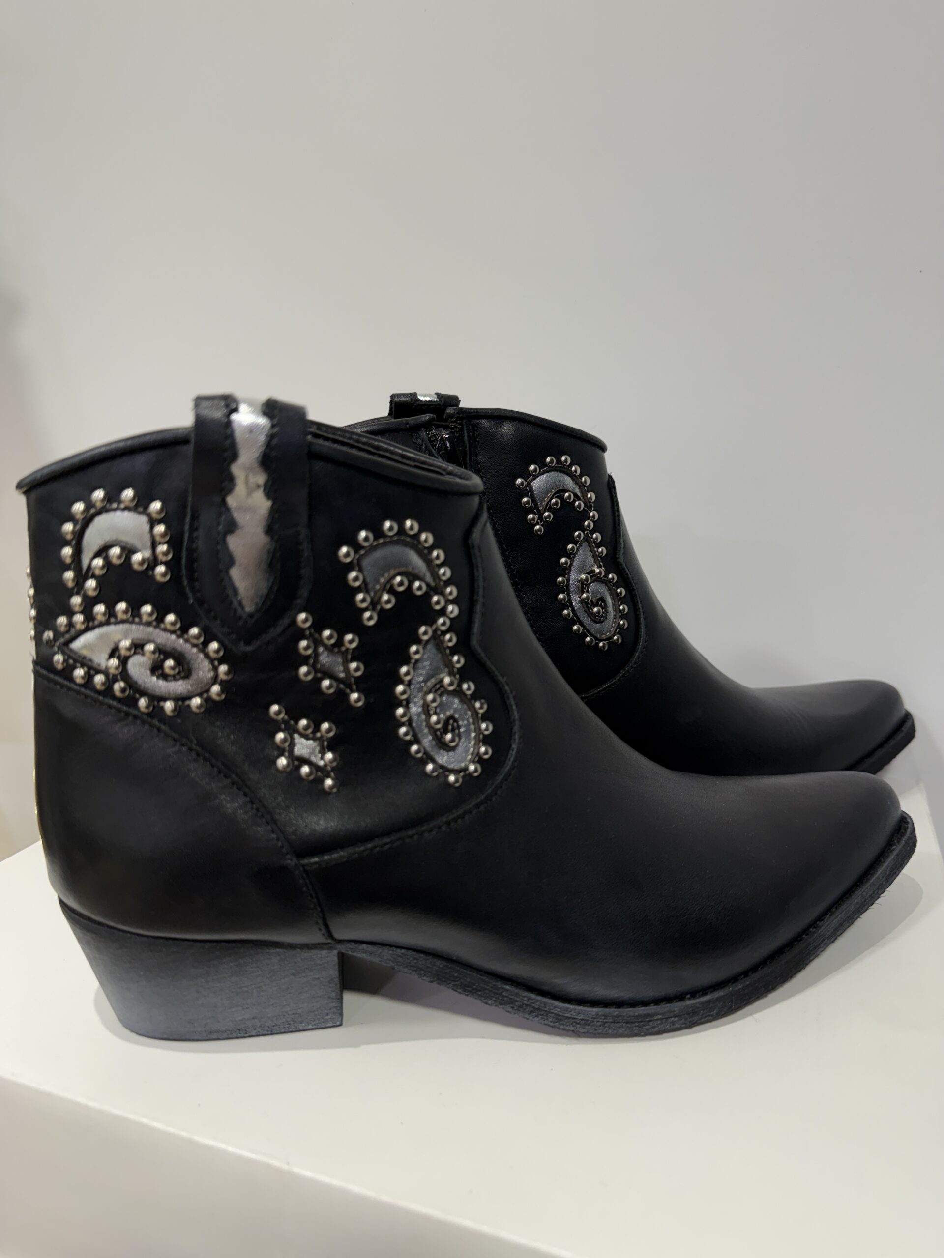 Bottines werstern cuir lisse noir et argent