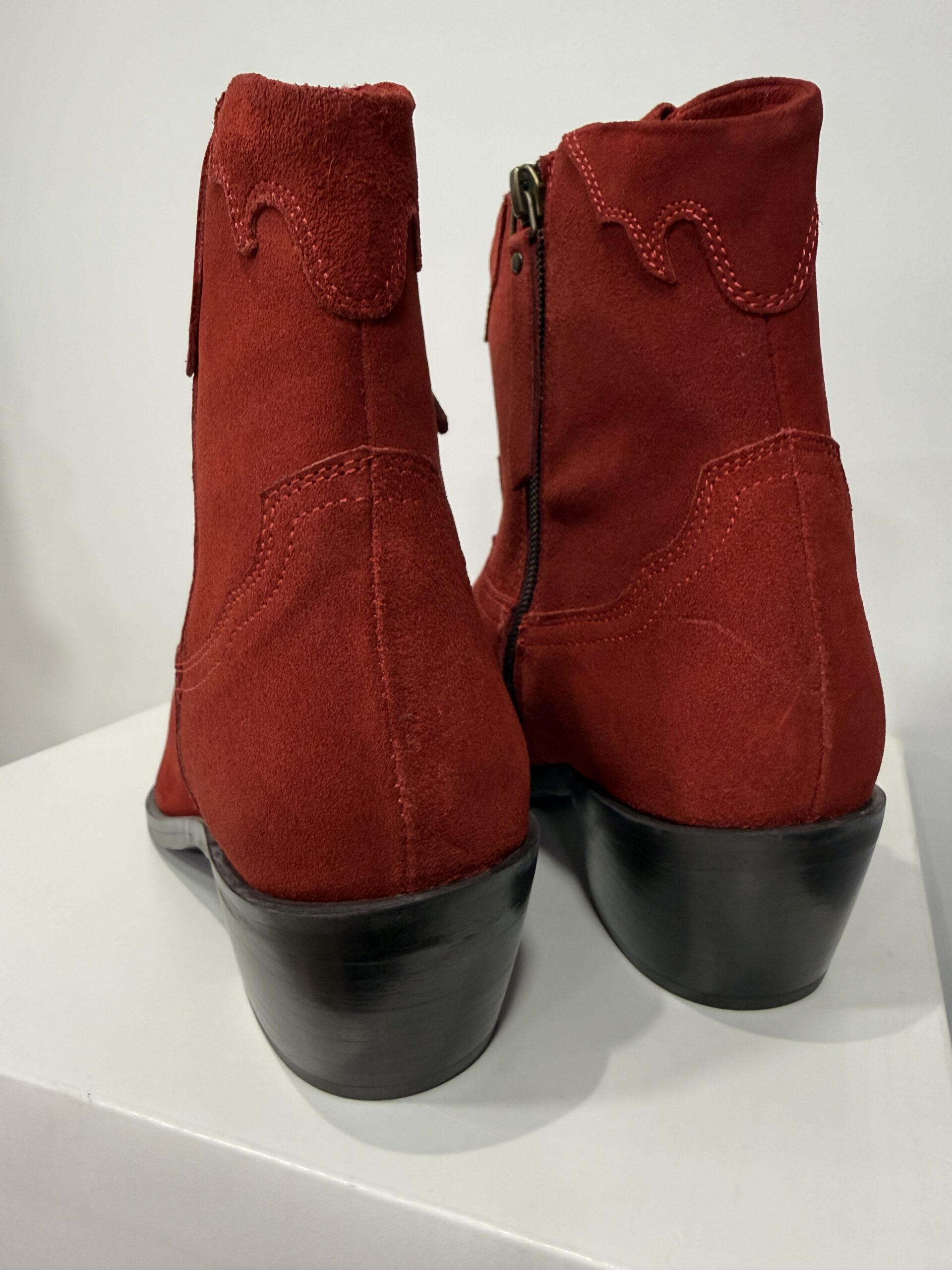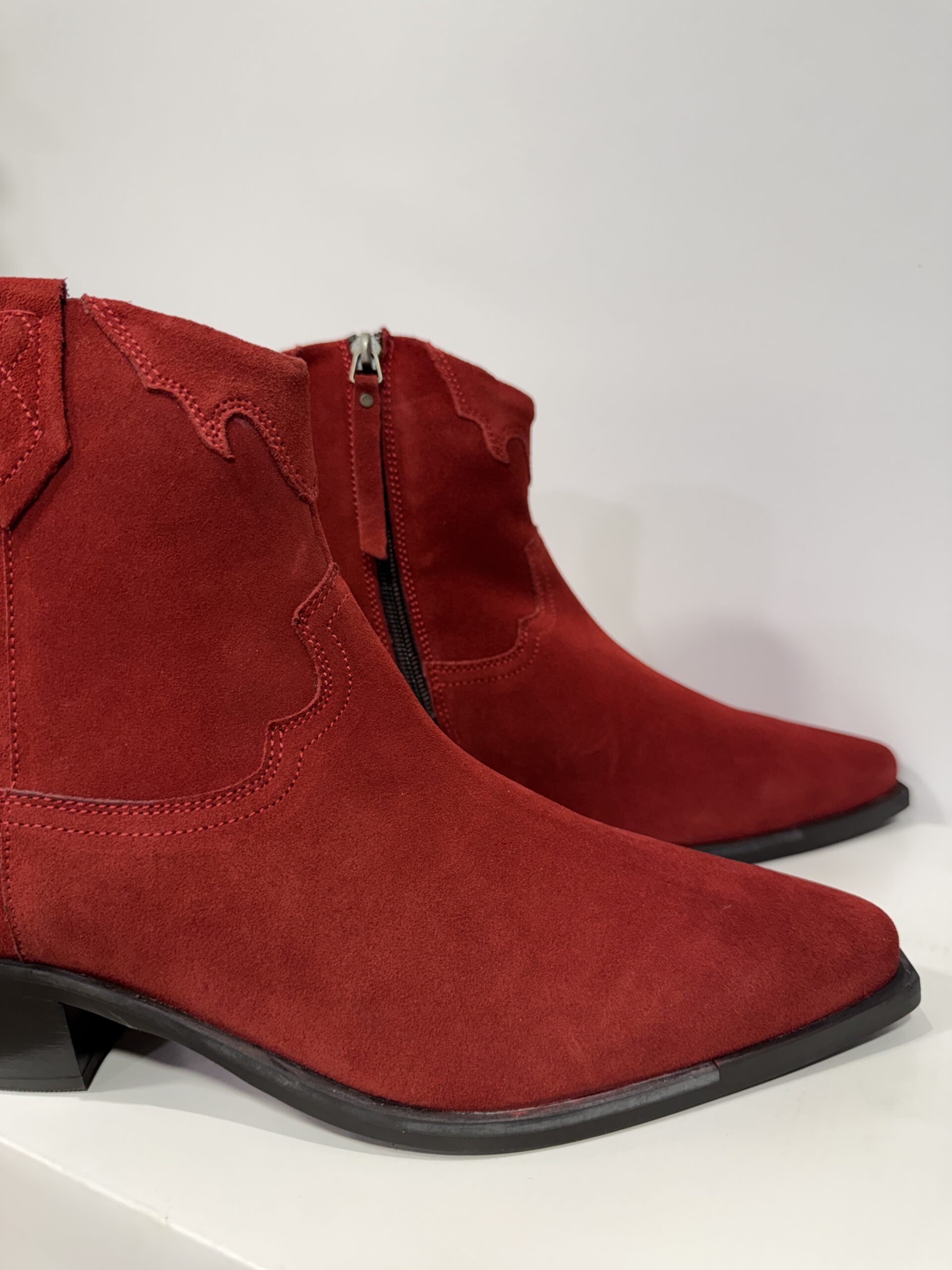 Bottines werstern cuir suédé rouge