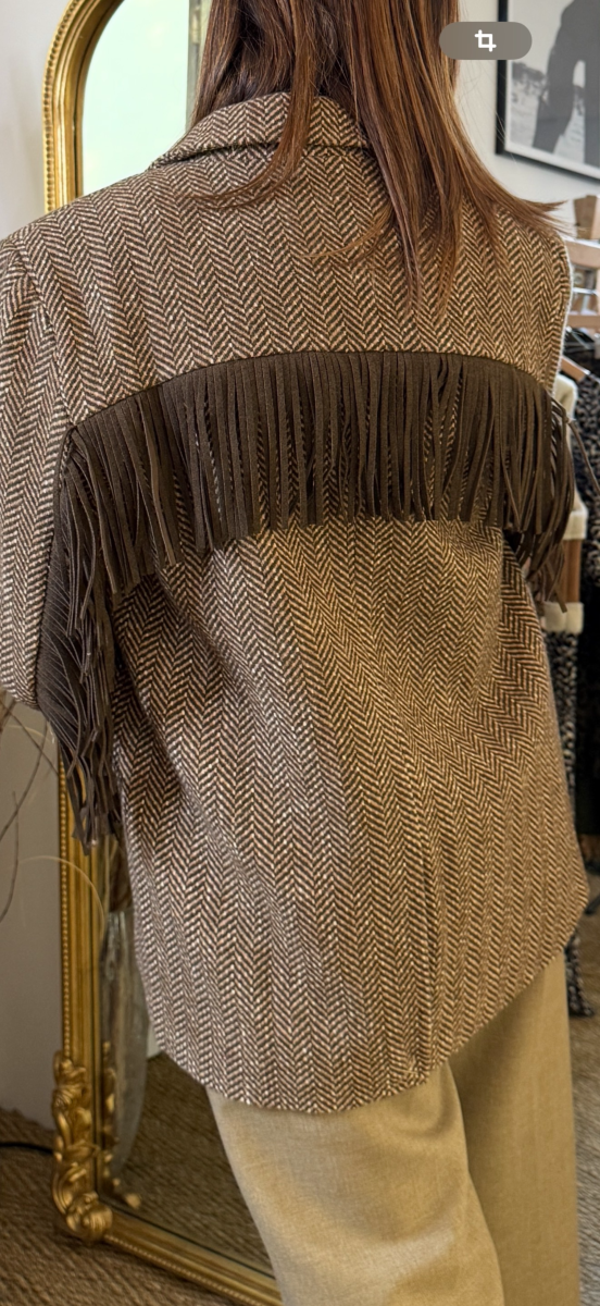 • Détails franges contrastées au dos et sur les manches