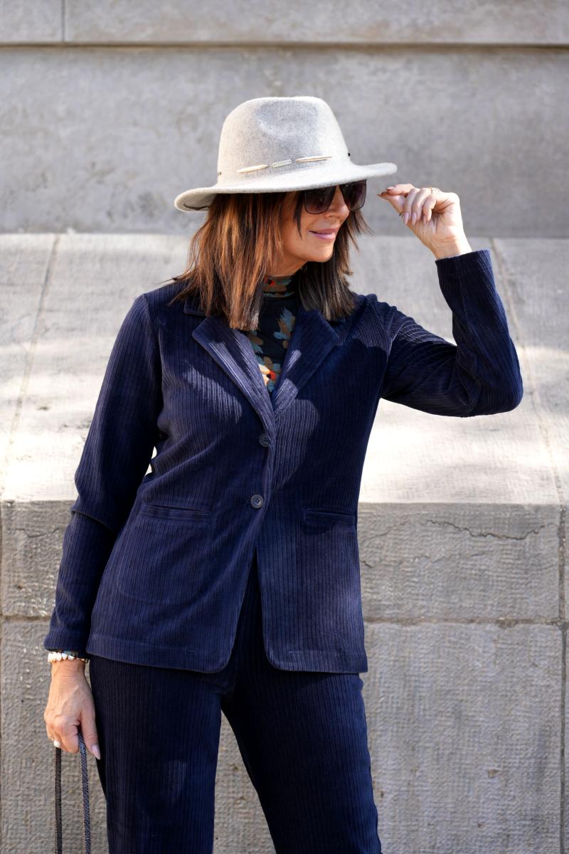 - Veste Blazer - Velours côtelé - Manches longues - Fermeture bouton - Deux poches plaquées - Couleur : marine