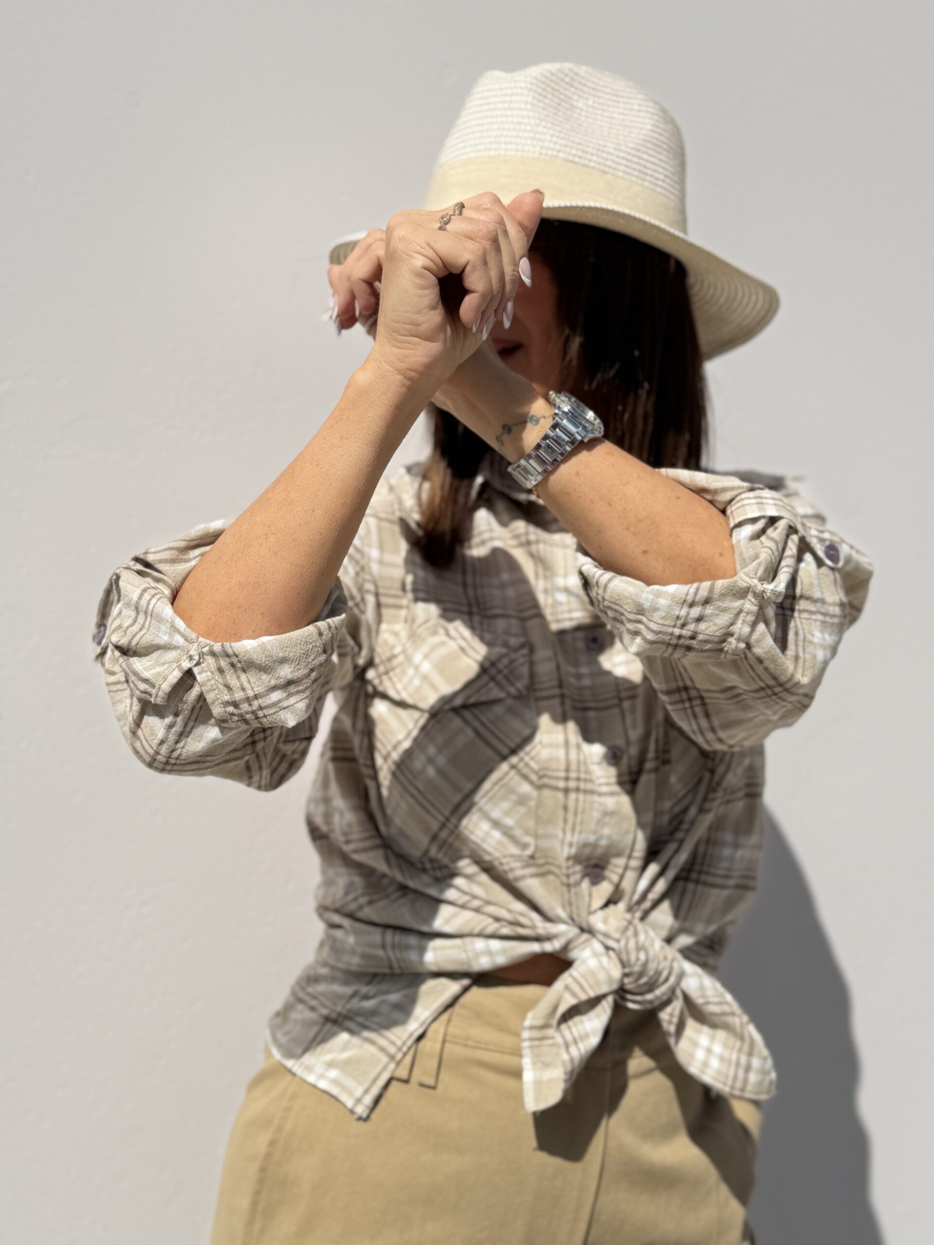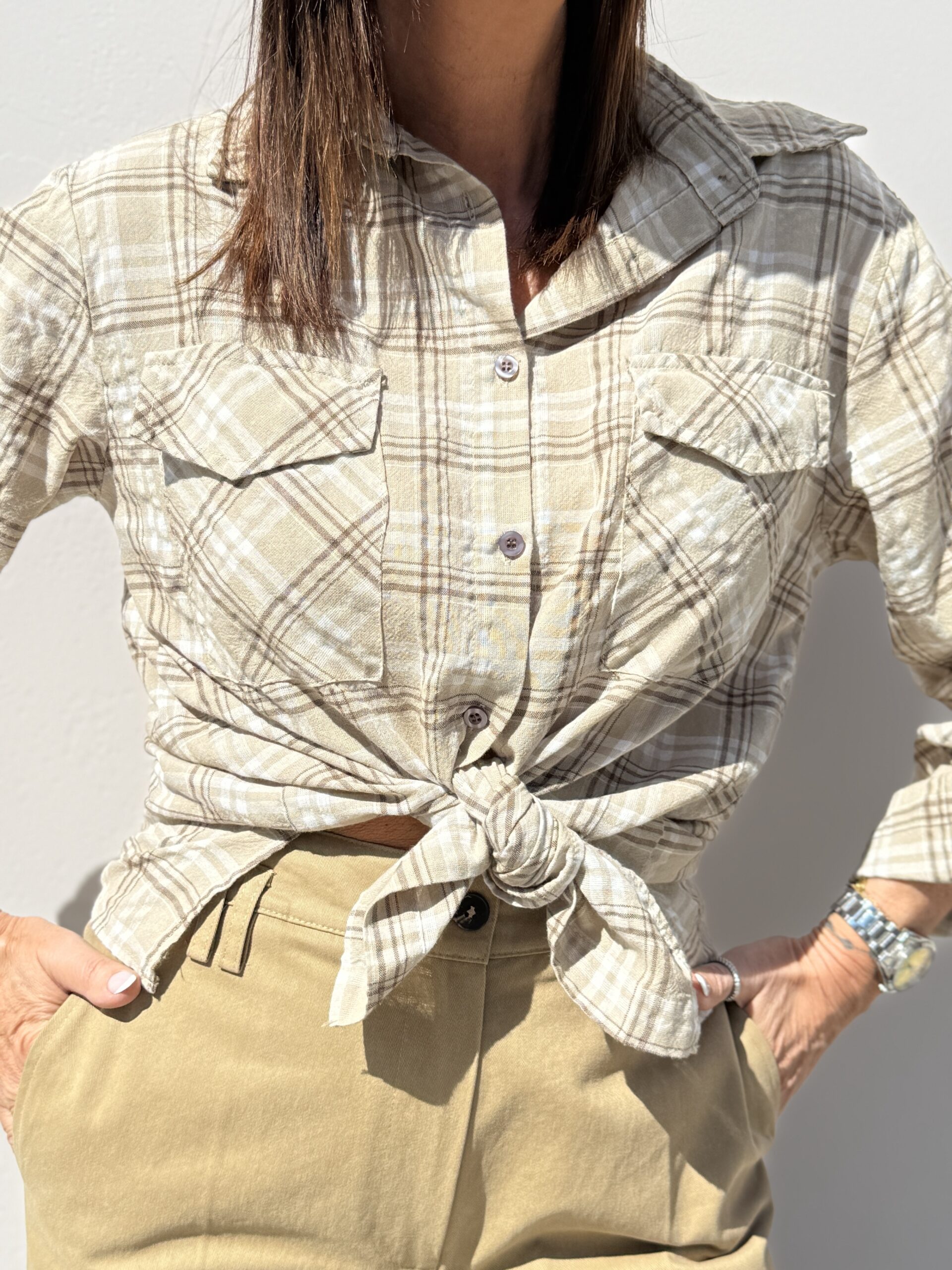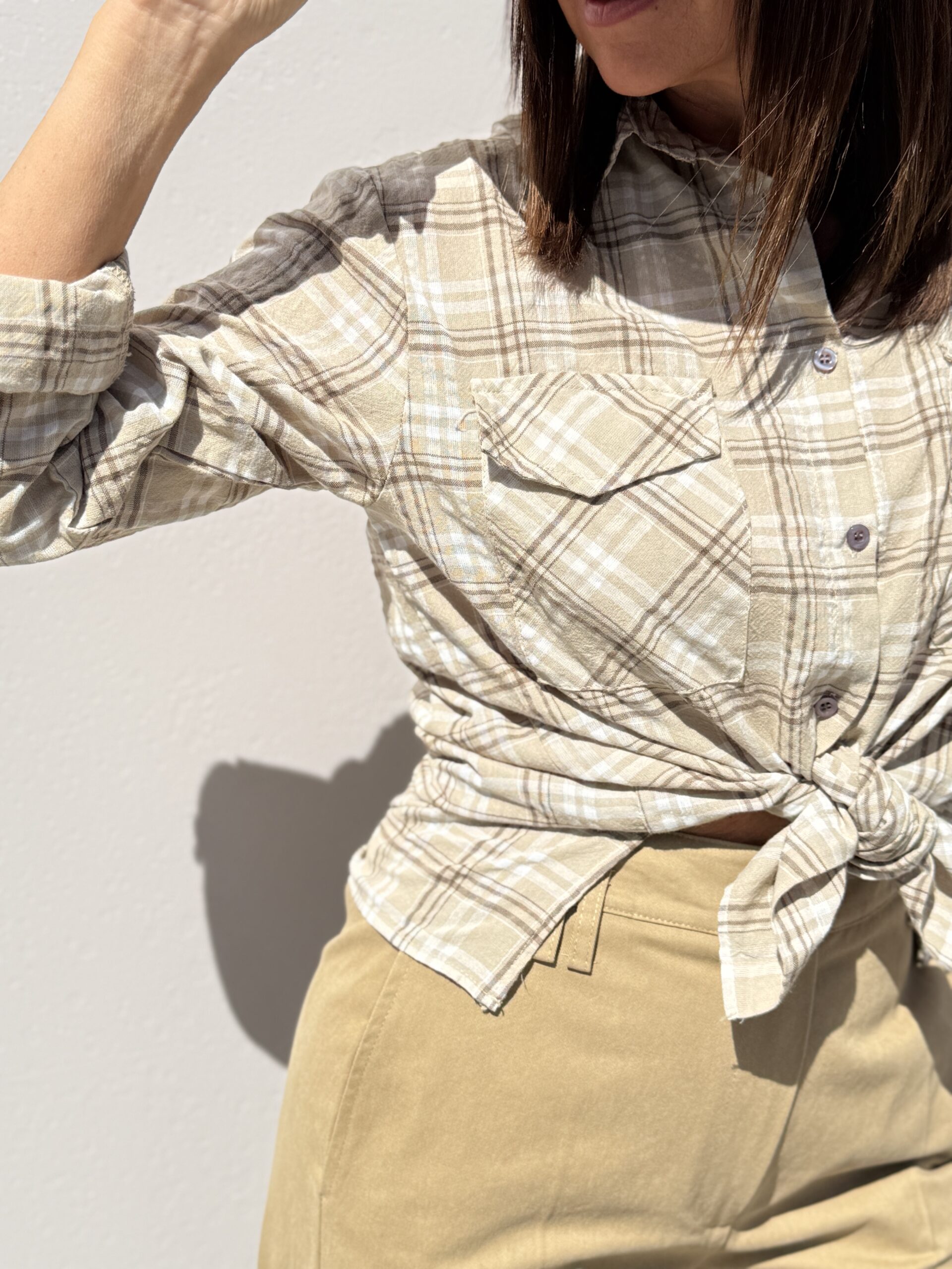 Chemise à carreaux dans des tons naturels beige et écru , parfait pour un look casual chic et facile à porter au quotidien. Une pièce intemporelle qui va avec tout.