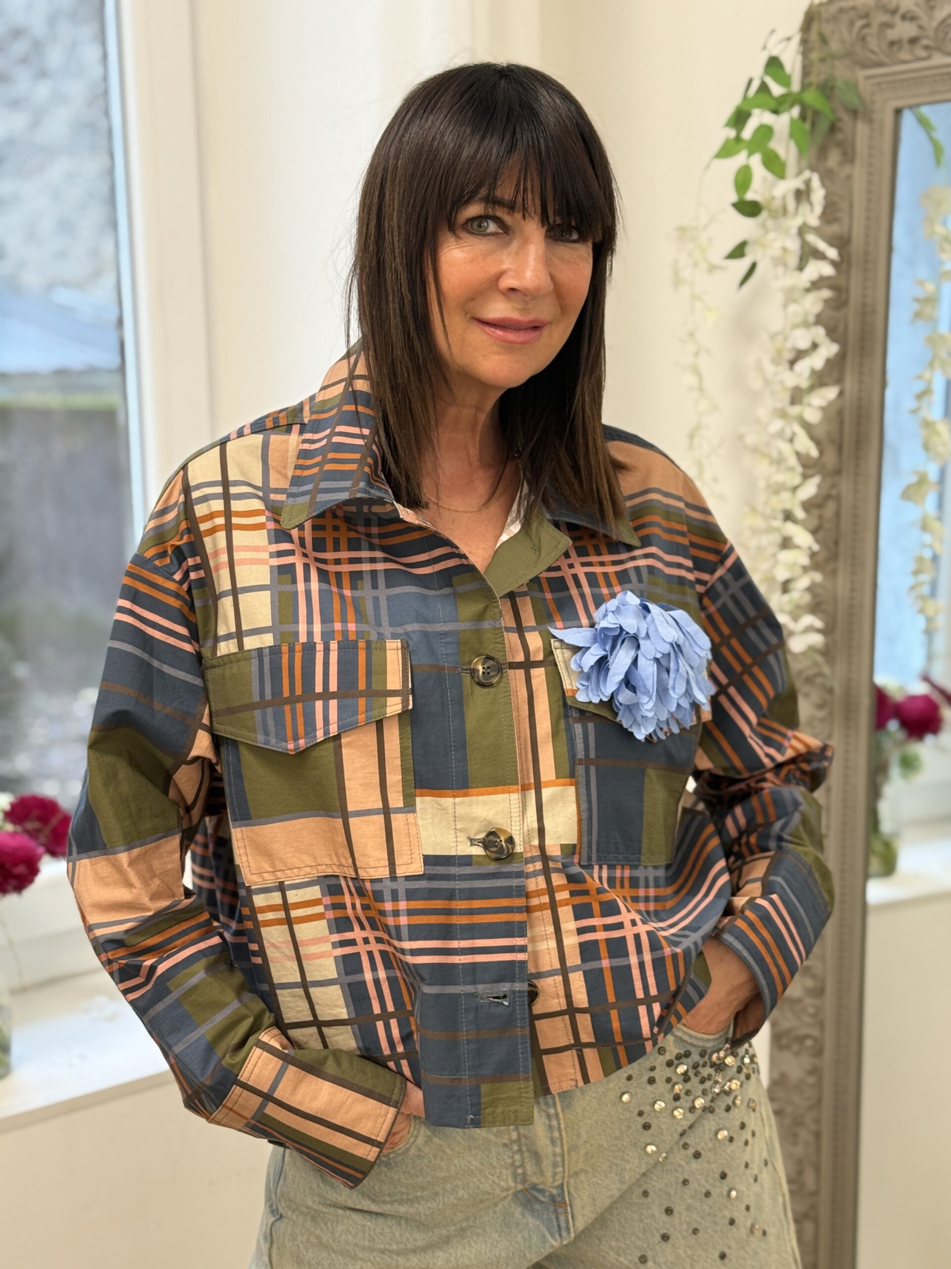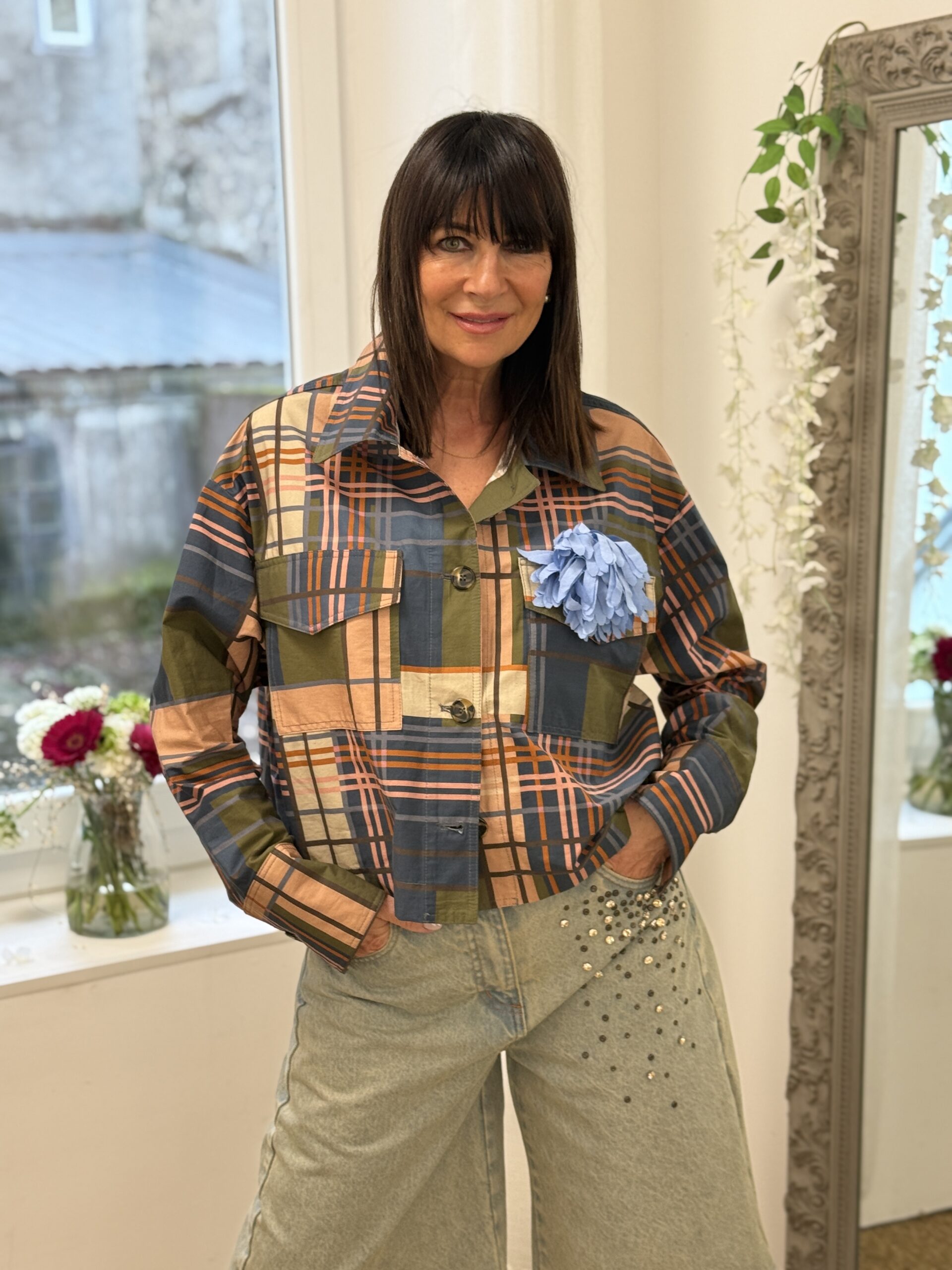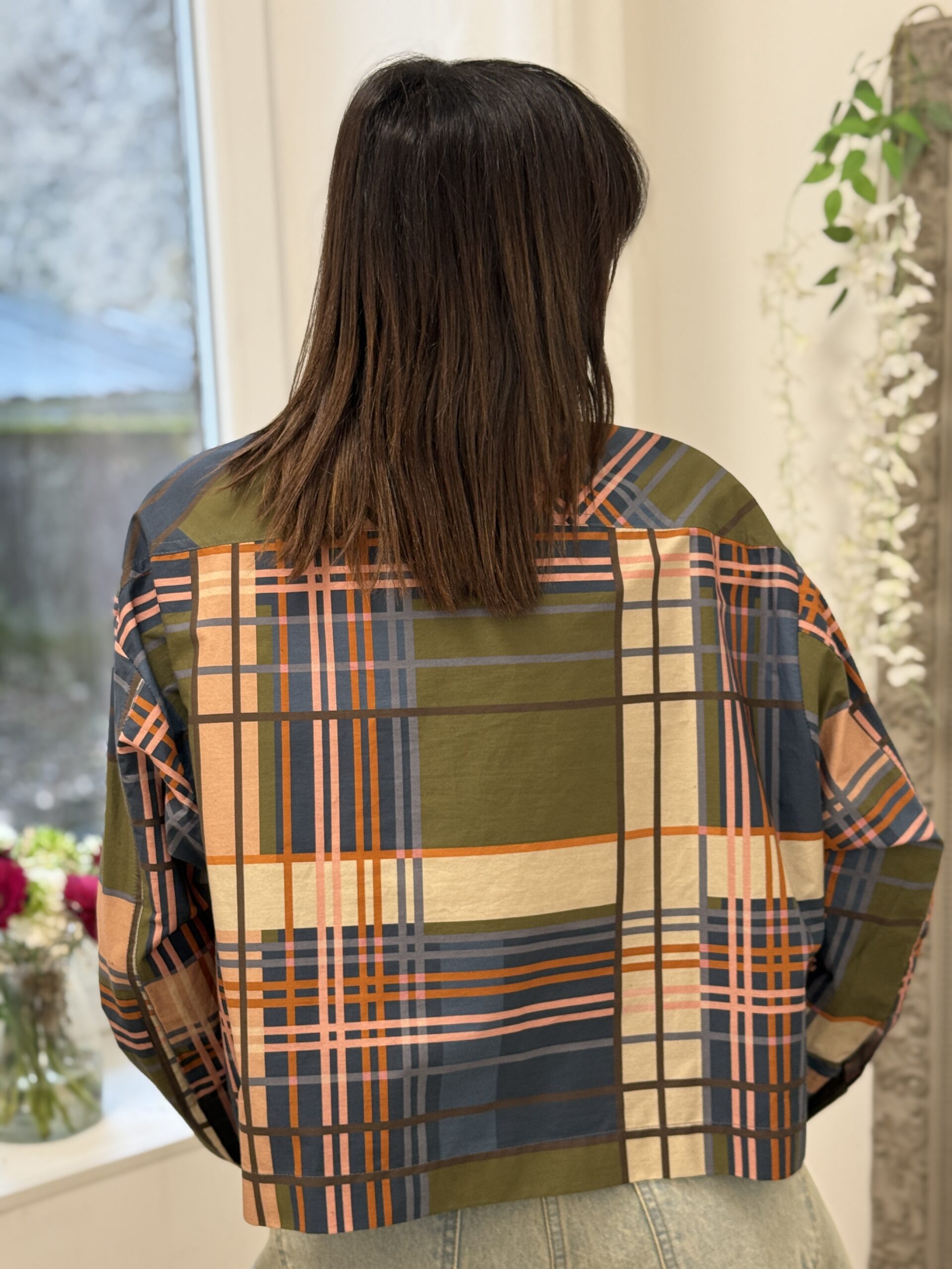La chemise au design graphique moderne, idéale pour un look chic. Sa coupe courte et structurée apporte une silhouette contemporaine, tandis que le motif à carreaux revisité lui donne du caractère.