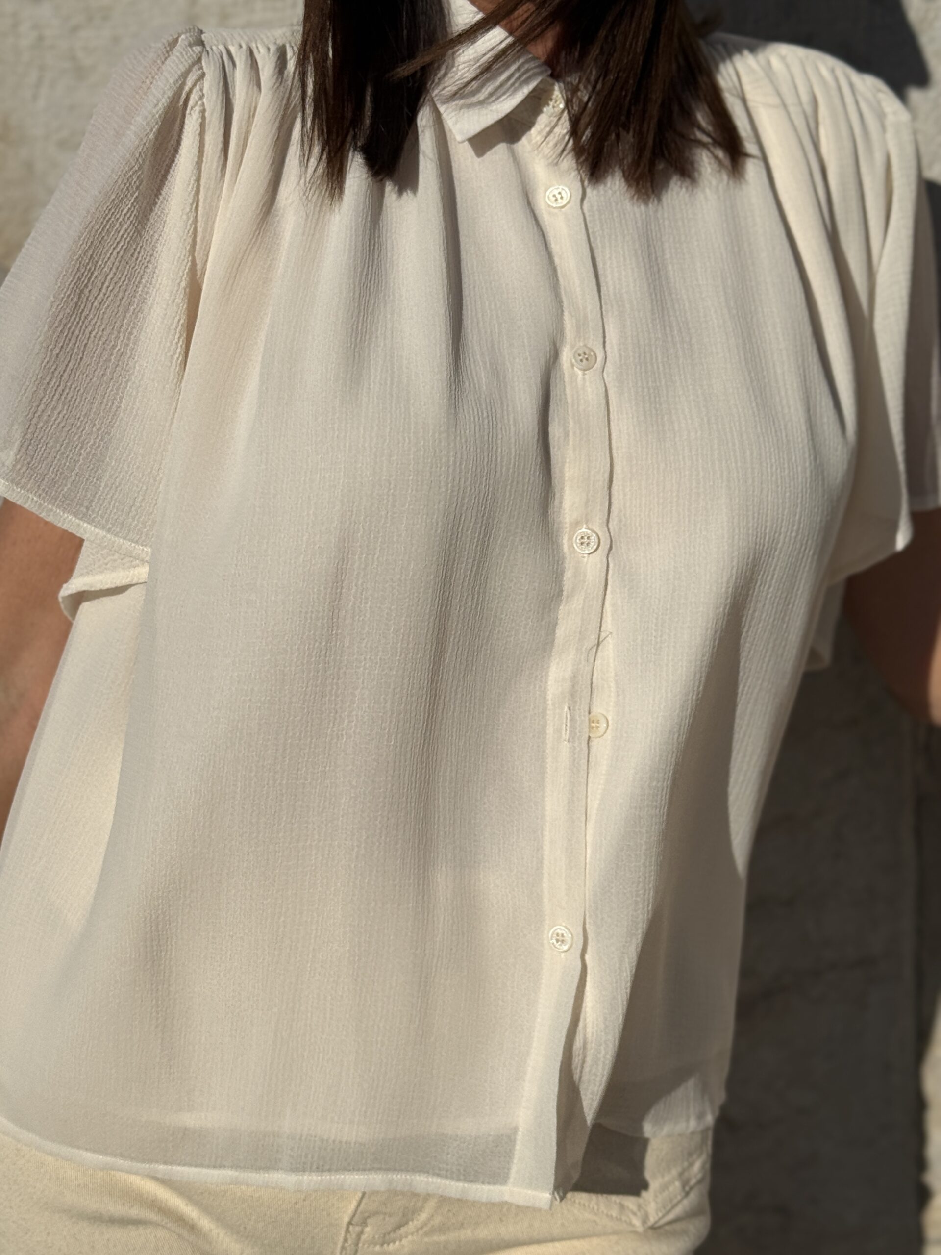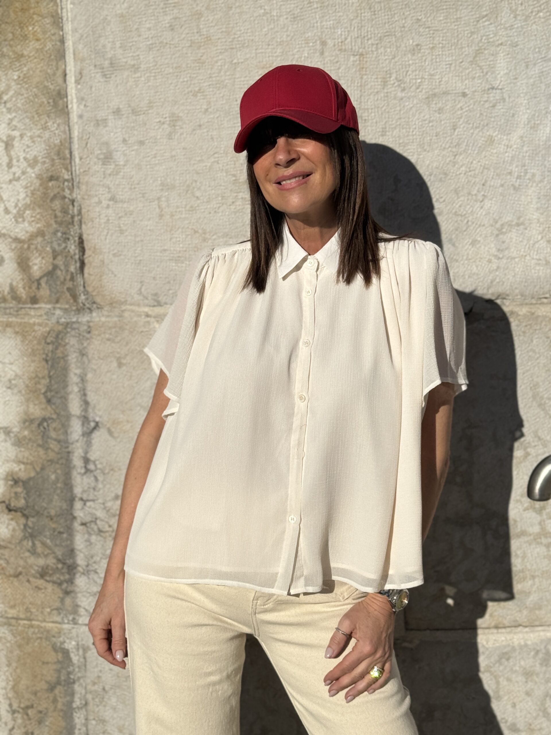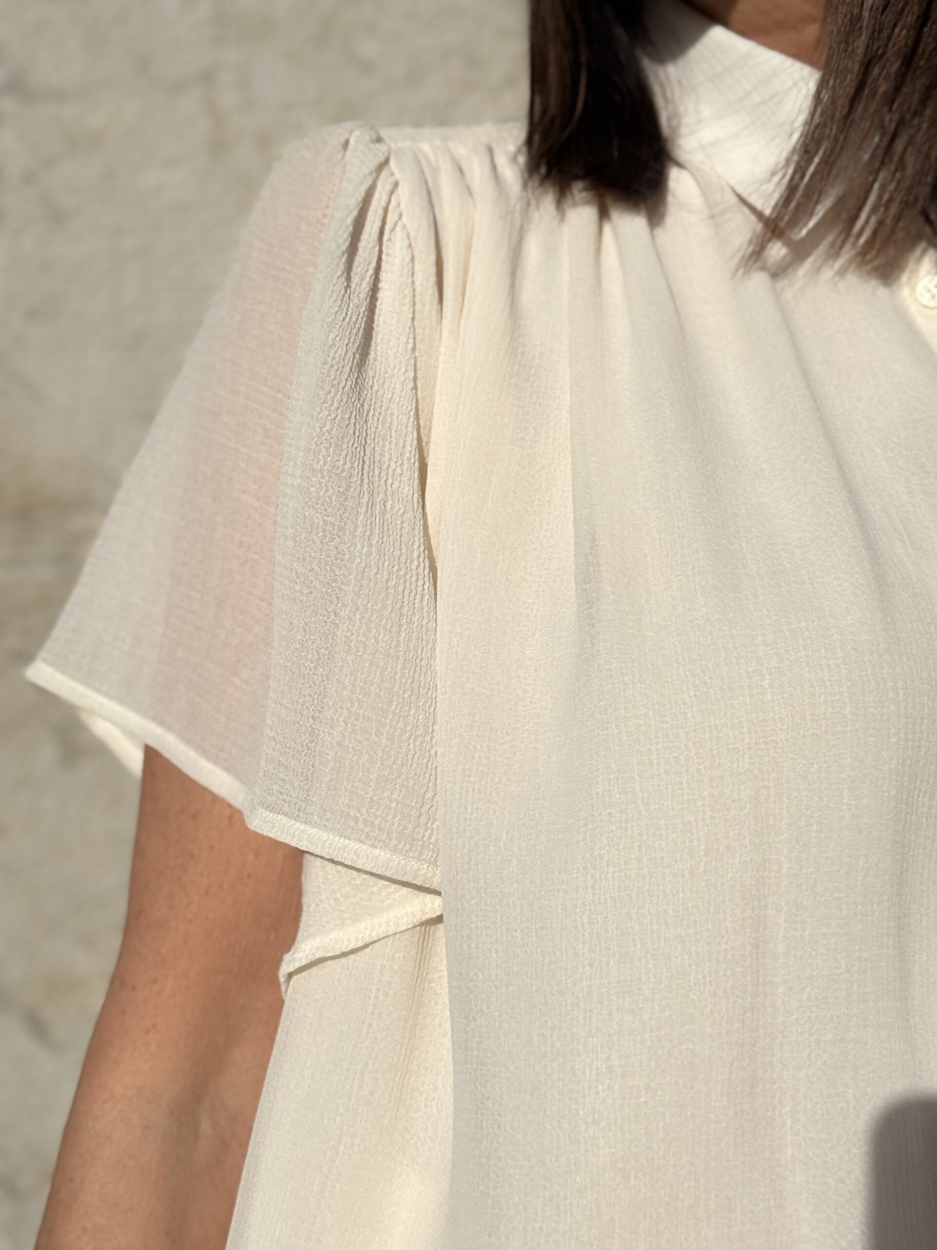 Tobia, La chemise écru à coupe ample et évasée, en tissu texturé effet gaufré, avec col chemise classique et manches papillon