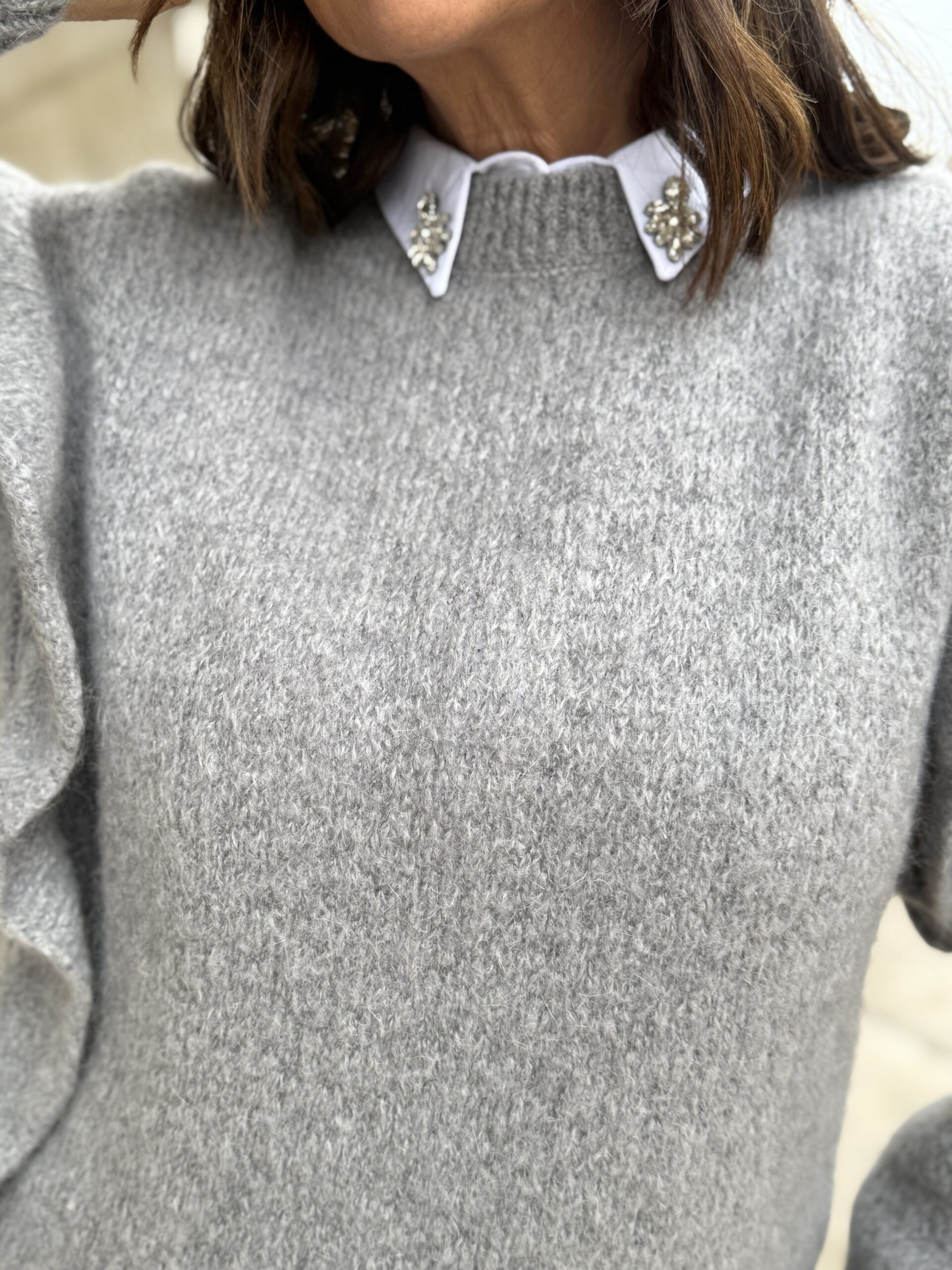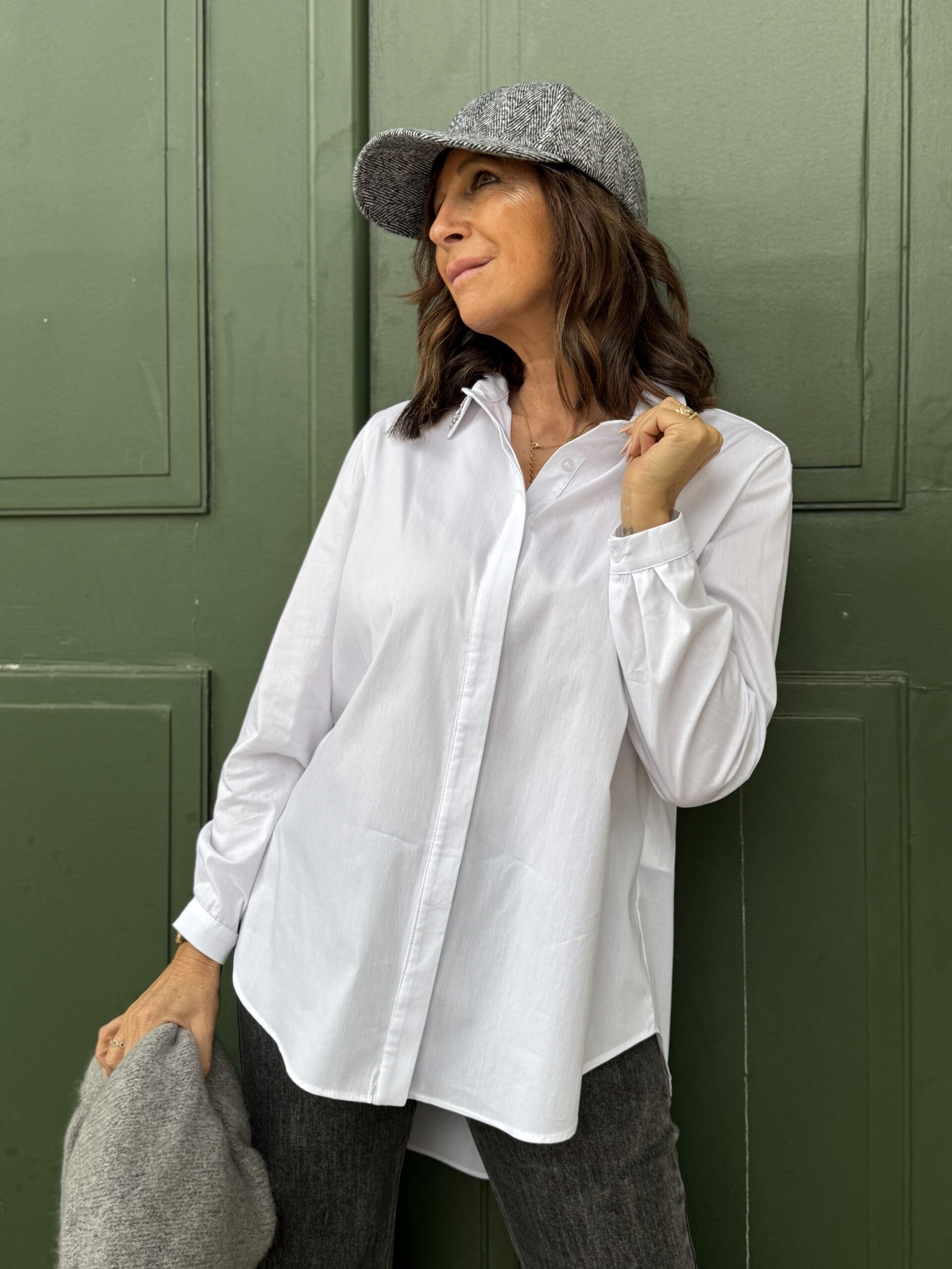 Conseil look de Nathalie : Portez cette chemise bijoutée sous un pull oversize pour révéler subtilement son col élégant. Pour un look plus affirmé, associe-la à un jean foncé et une casquette pour un mélange parfait entre chic et décontracté.