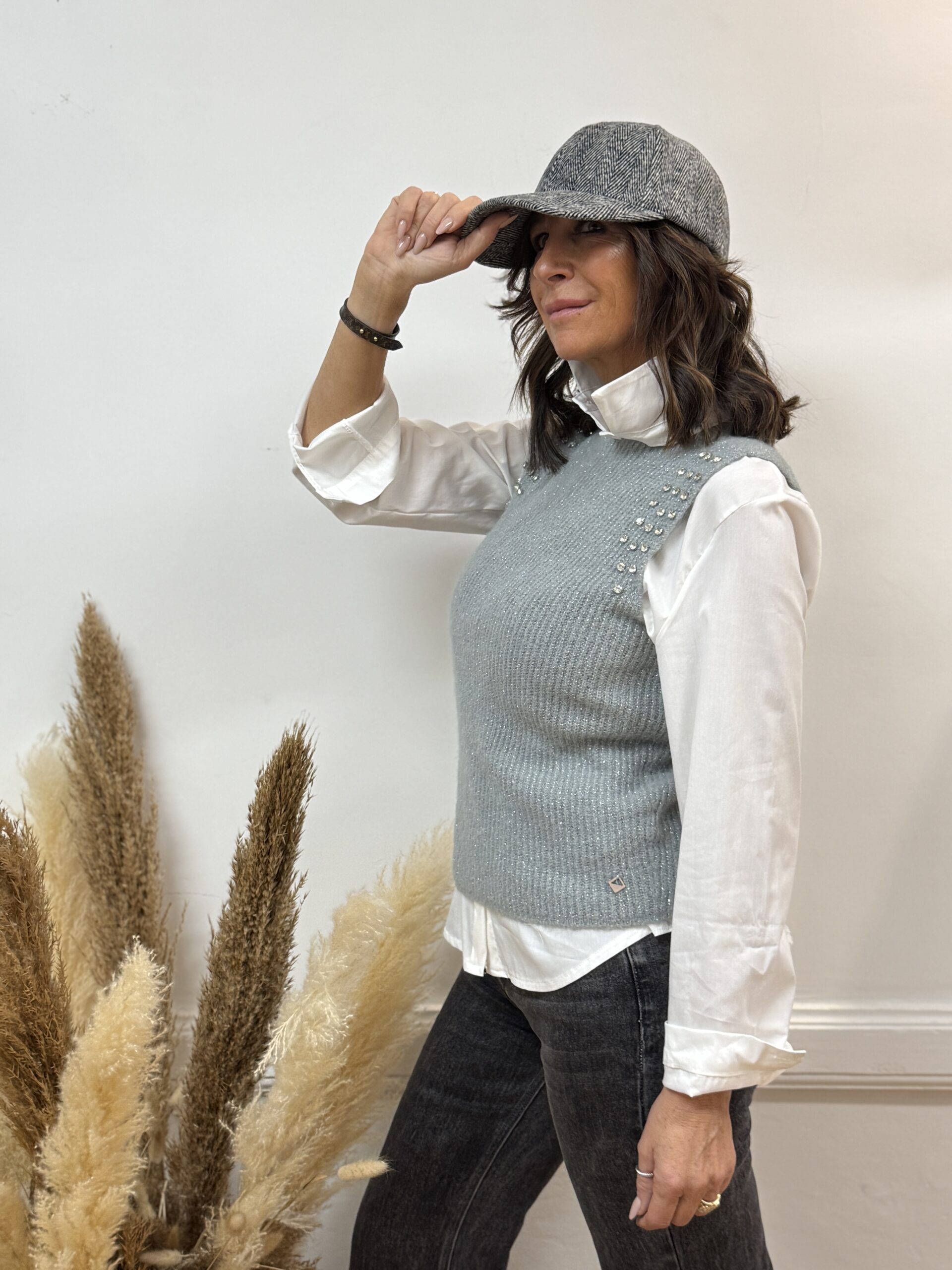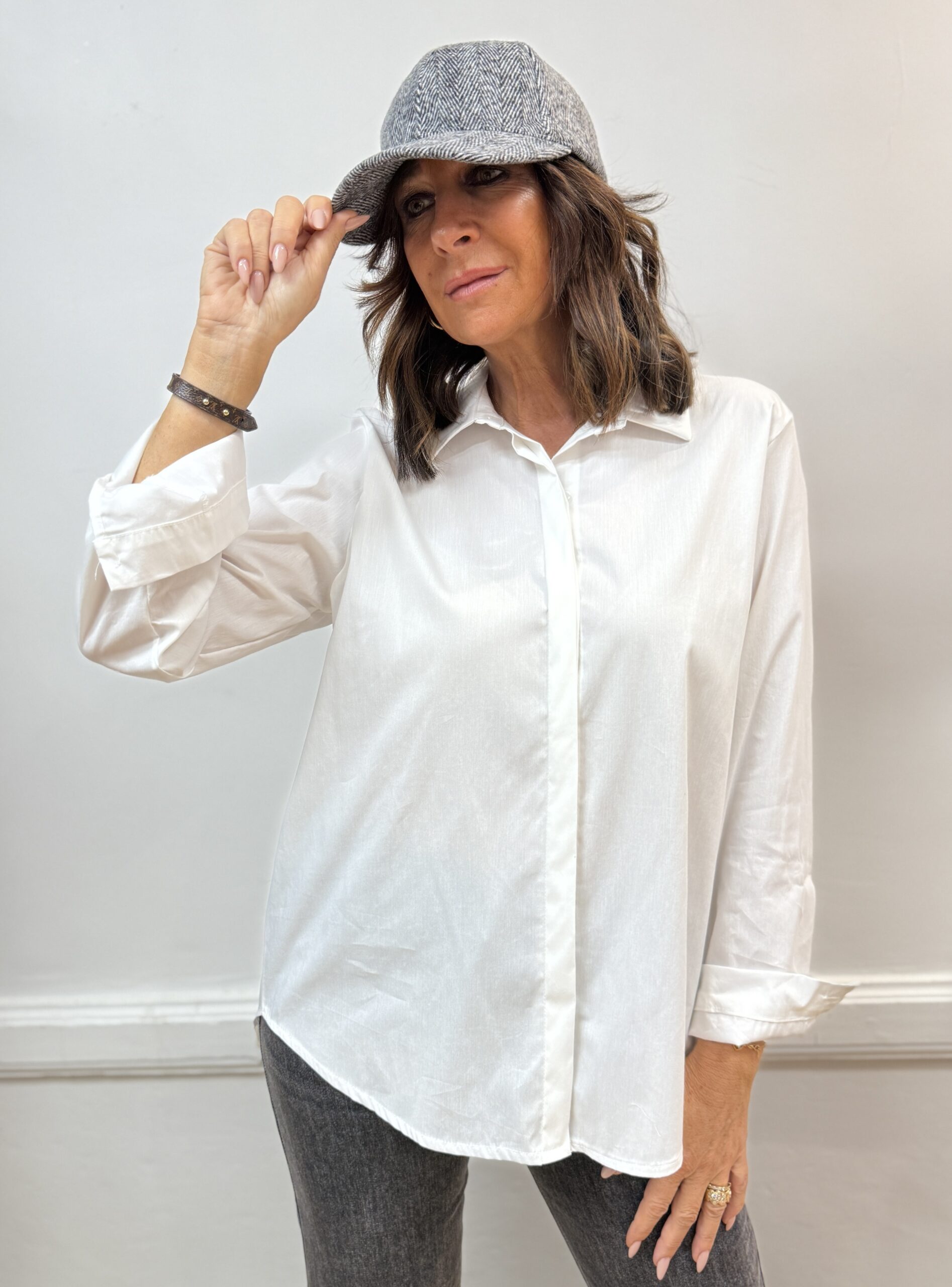 Conseil look de Nathalie : Portez cette chemise ouverte avec un débardeur, une casquette pour un effet mode affirmé.